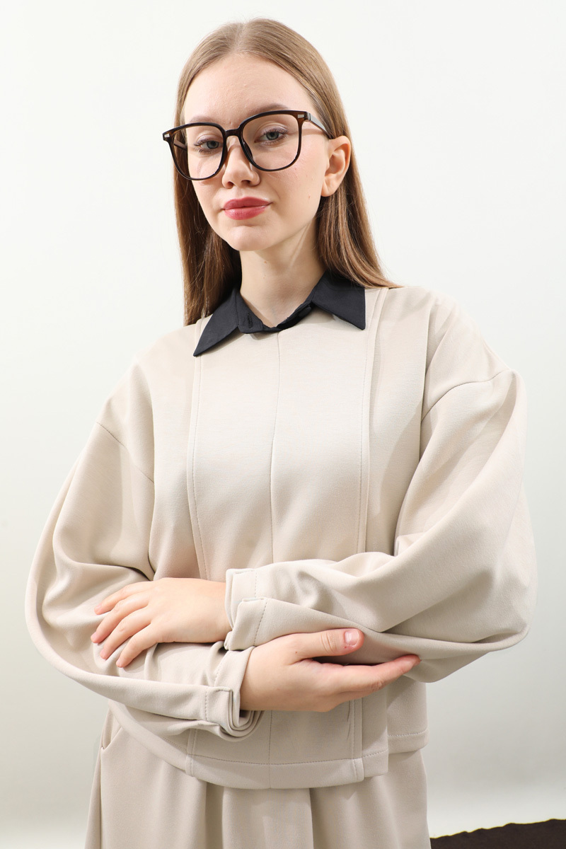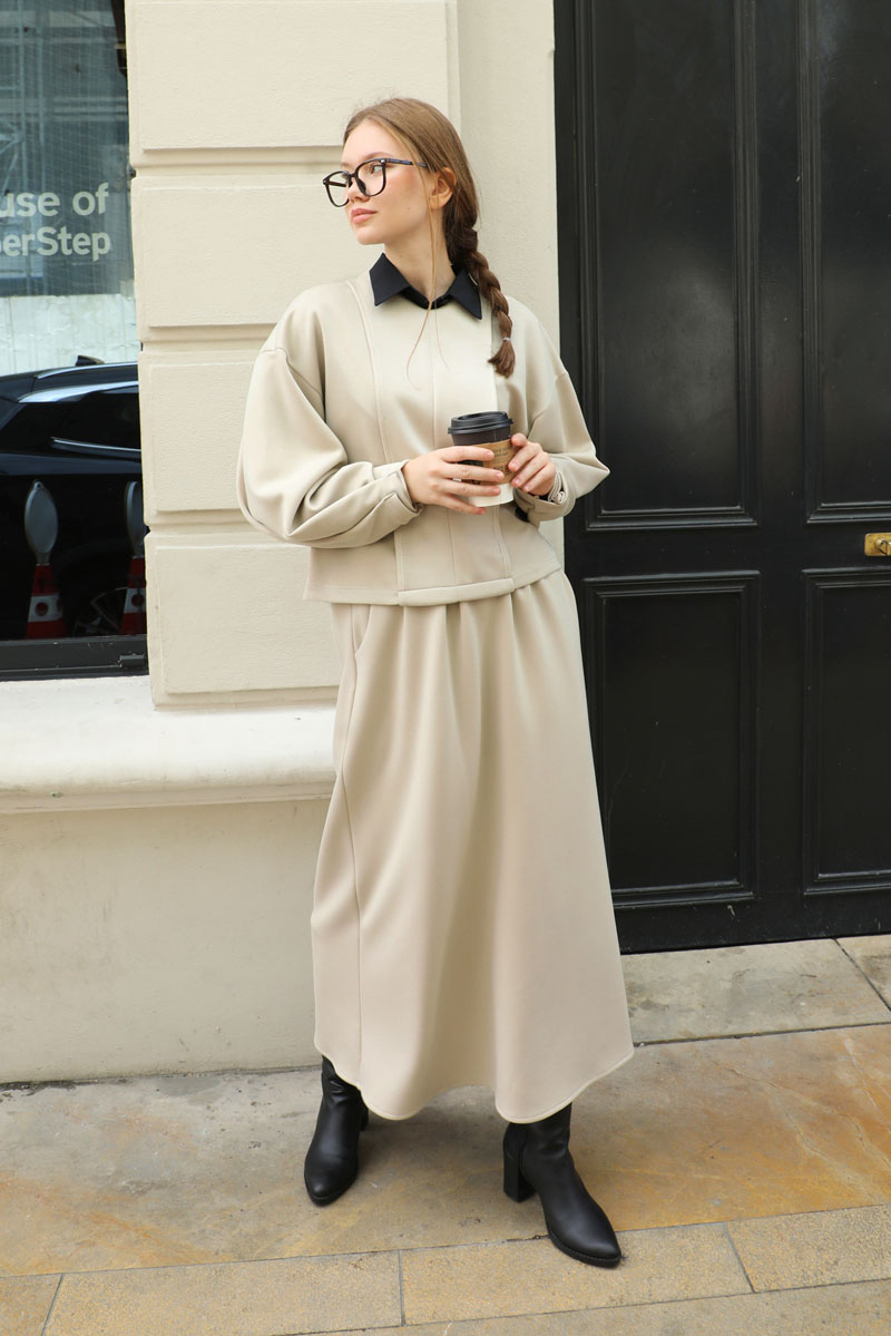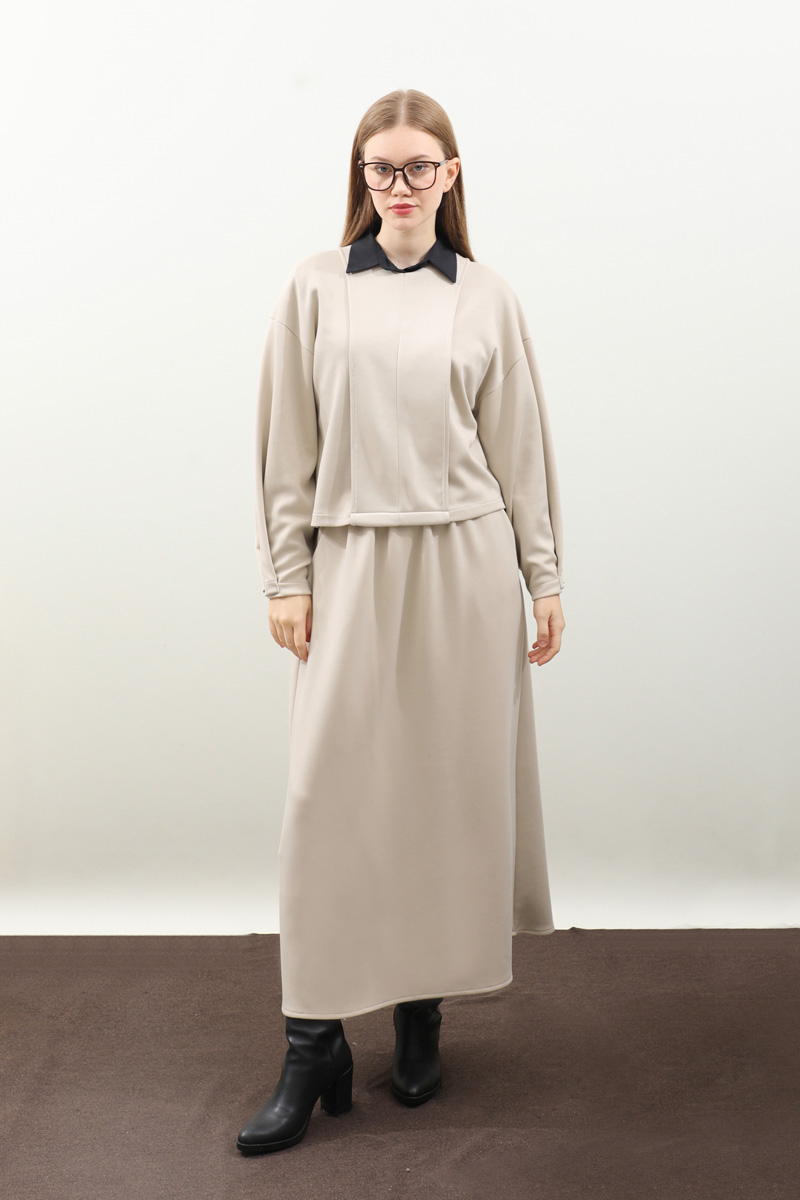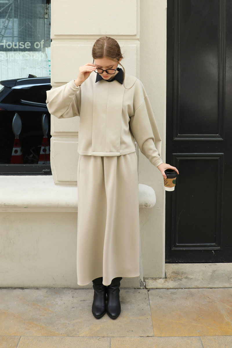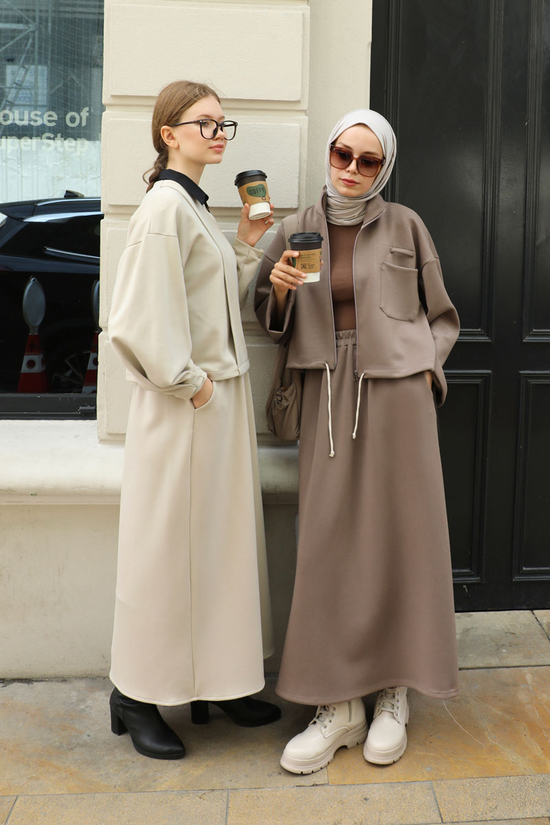 Aller Etek Takım Taş. V yakadır, önden aller parça detaylıdır, düşük omuzludur, Düşük omuzludur. Balon kol olup bilekten pile detaylıdır. Etek belden lastiklidir. ceplidir, astarsızdır. İç göstermez.Günlük kullanım ve özel günlerinizde tercih edebilirsiniz.