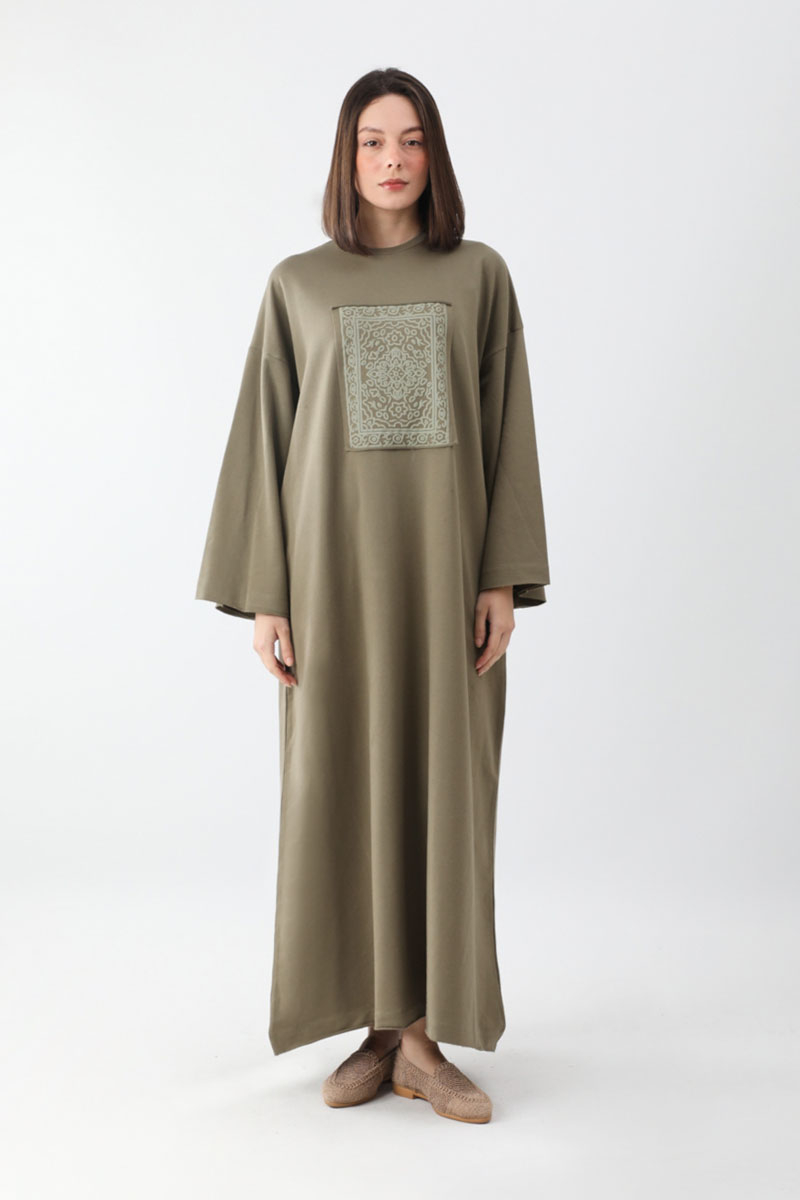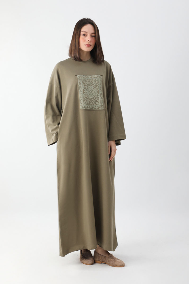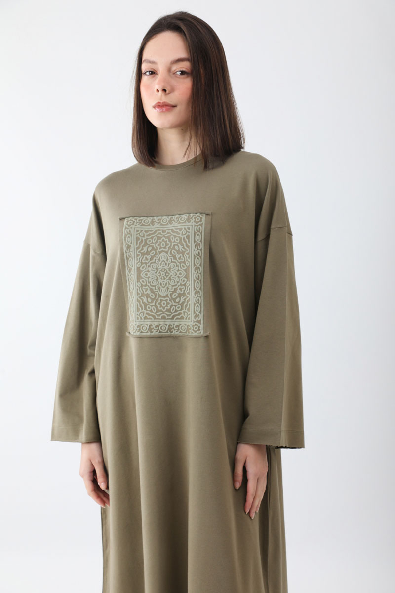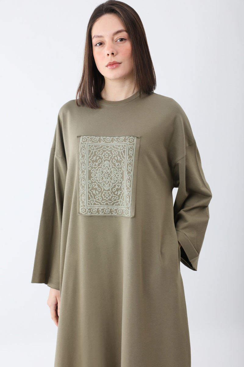 Anadolu Desen Baskılı Sweat Elbise Haki