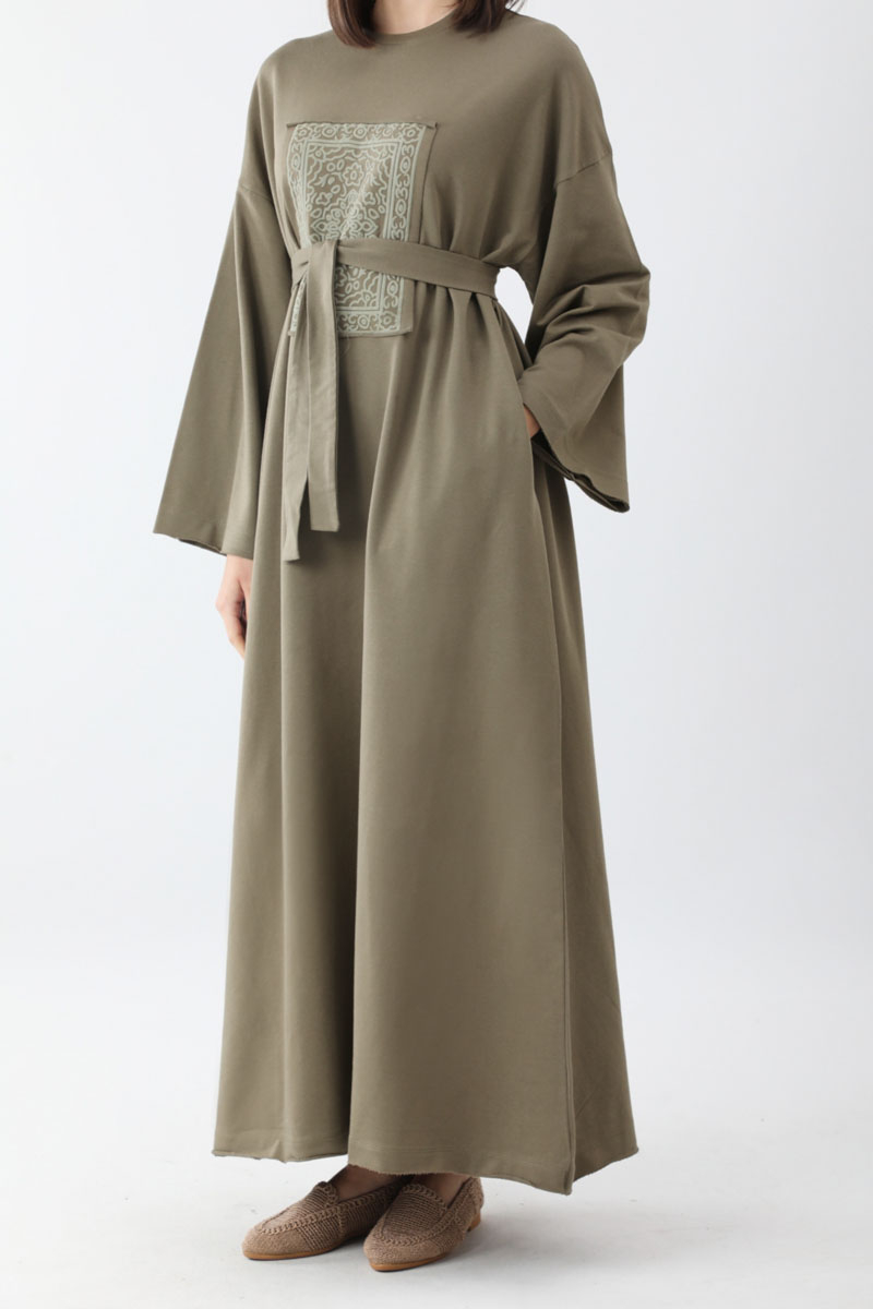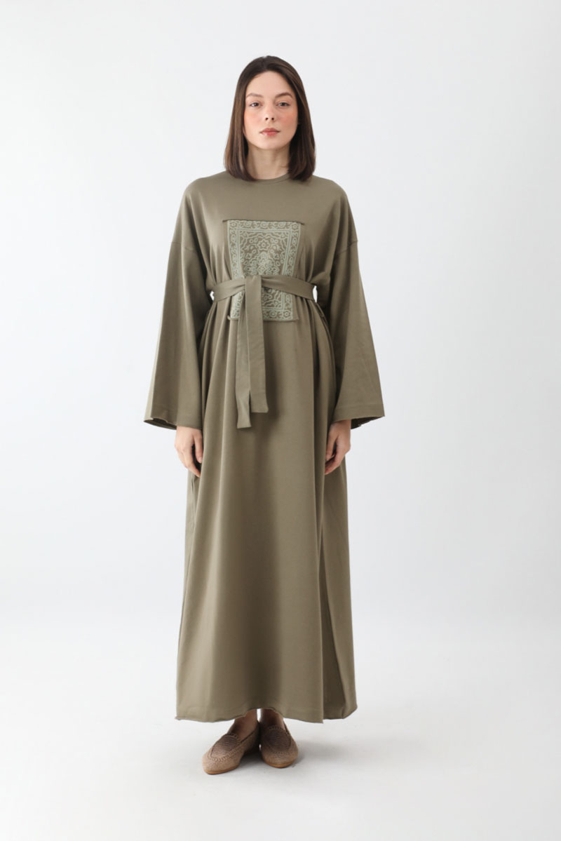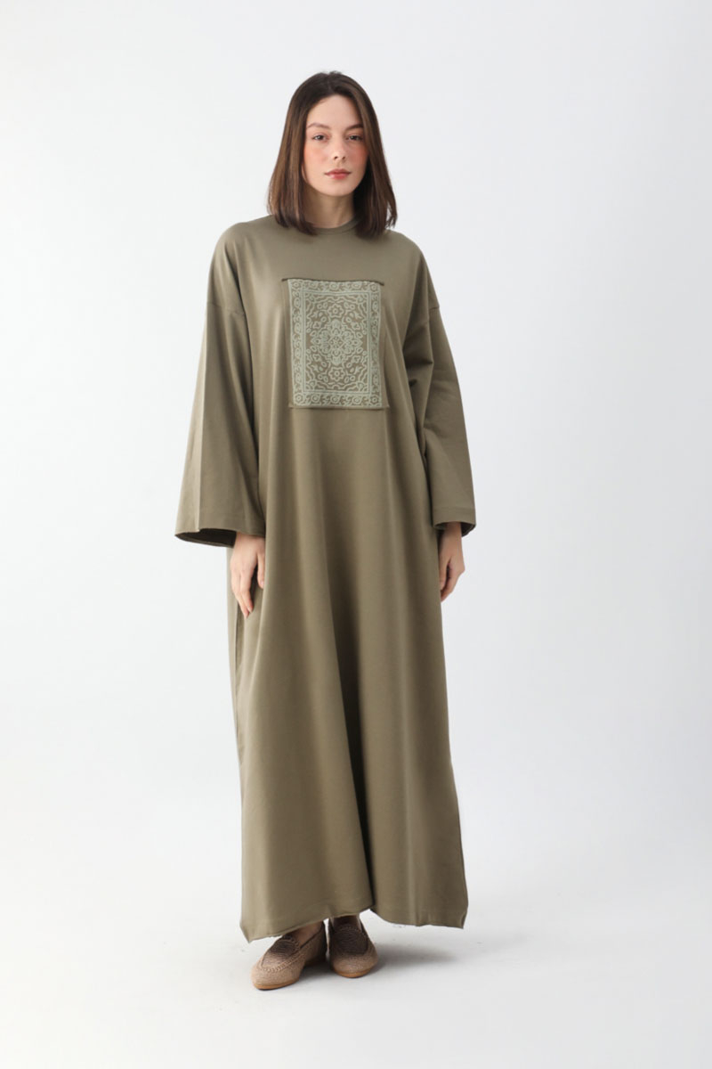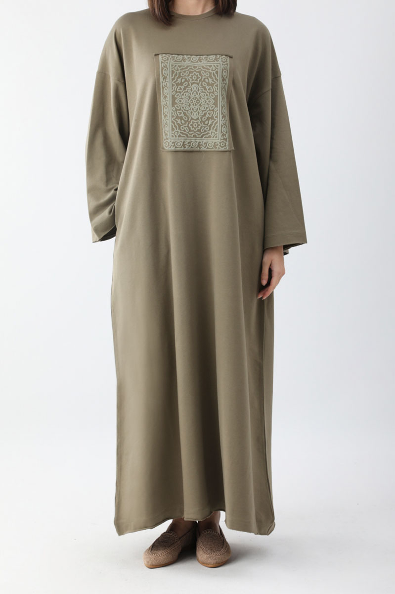 Anadolu Desen Baskılı Sweat Elbise Haki