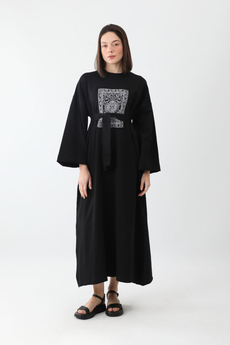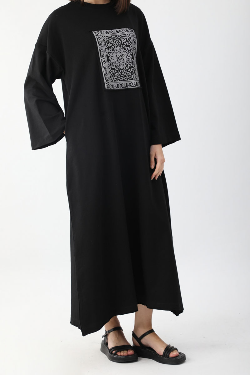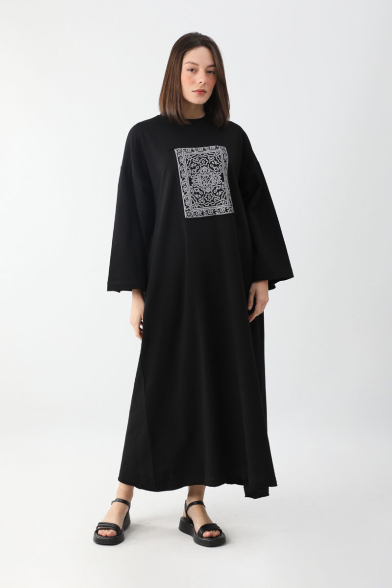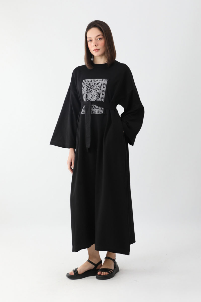 Anadolu Desen Baskılı Sweat Elbise Siyah