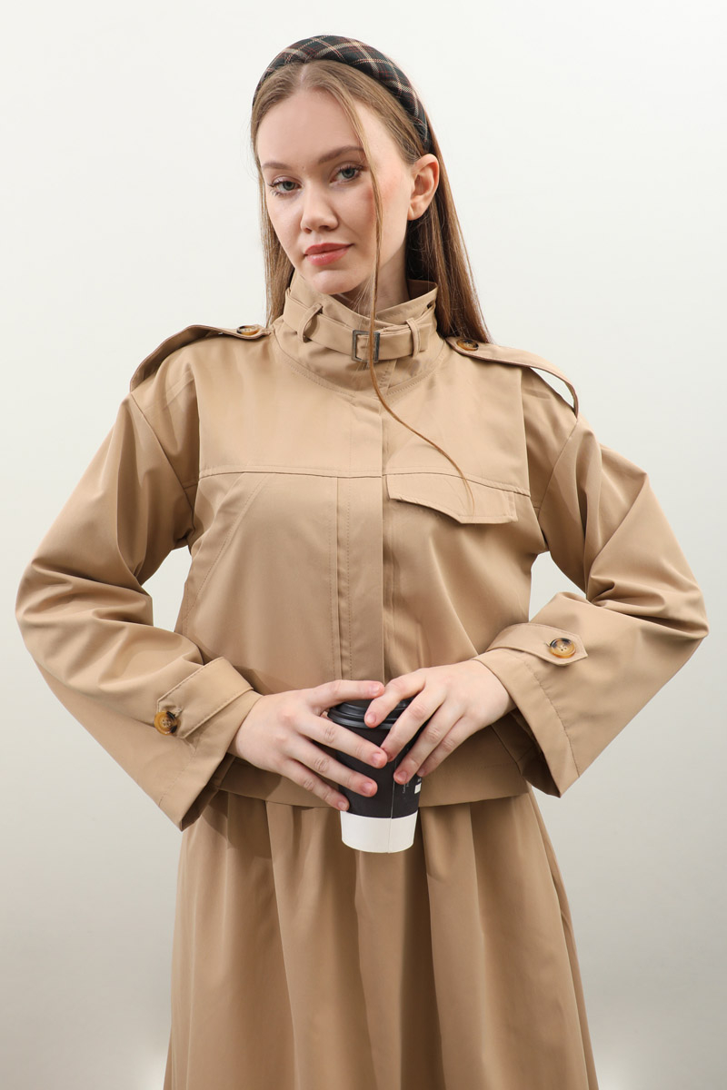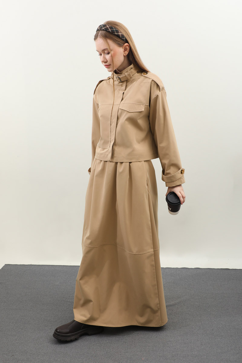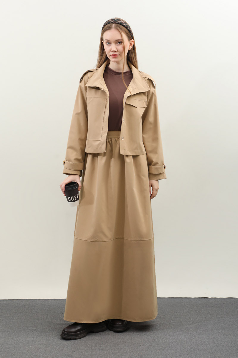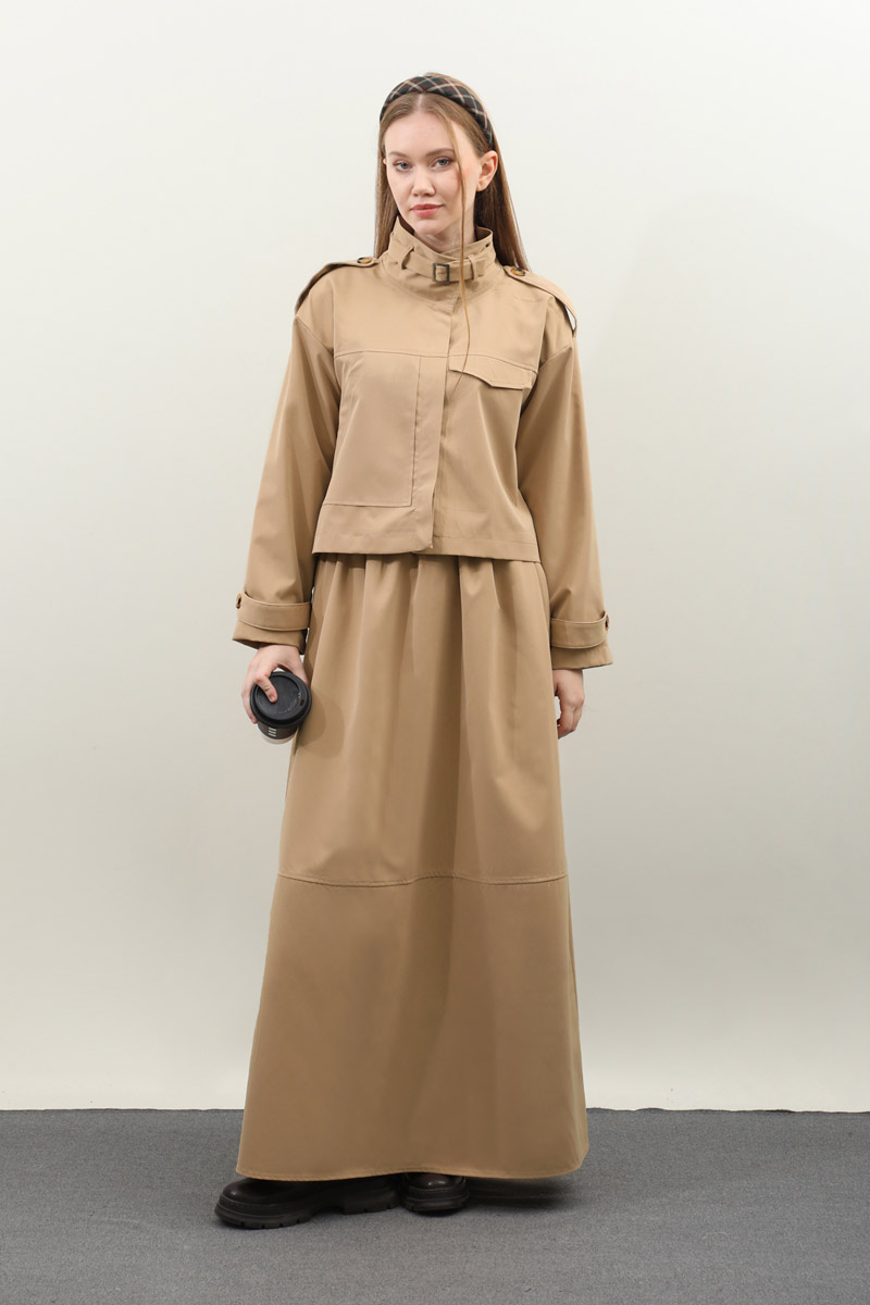 Apolet Detaylı Etek Takım Camel