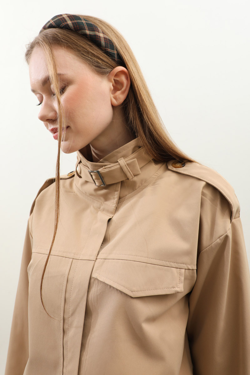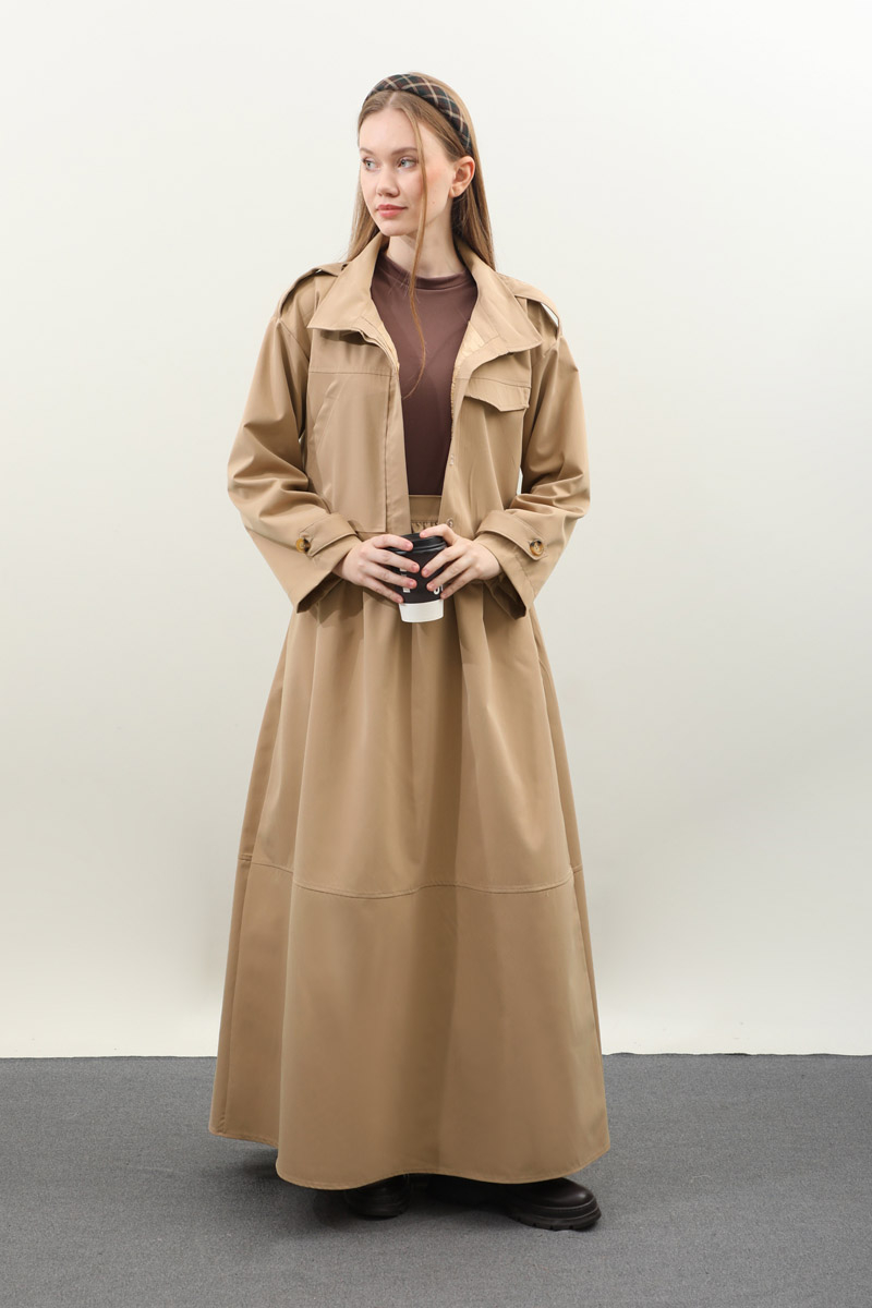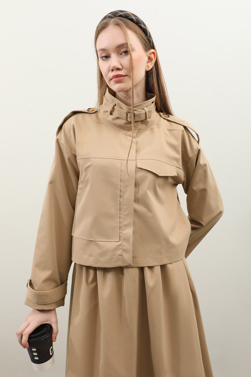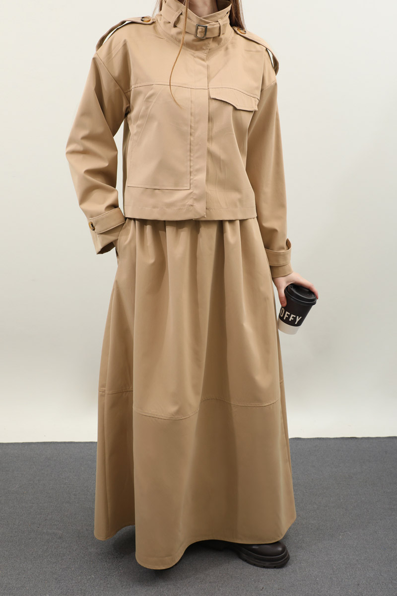 Apolet Detaylı Etek Takım Camel