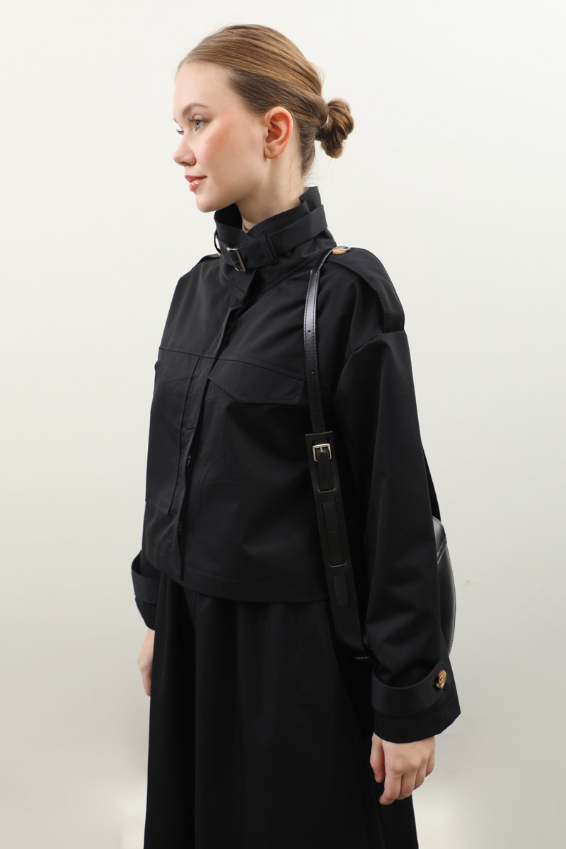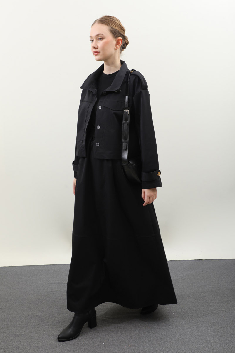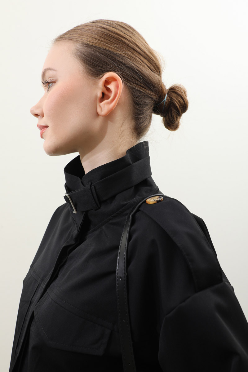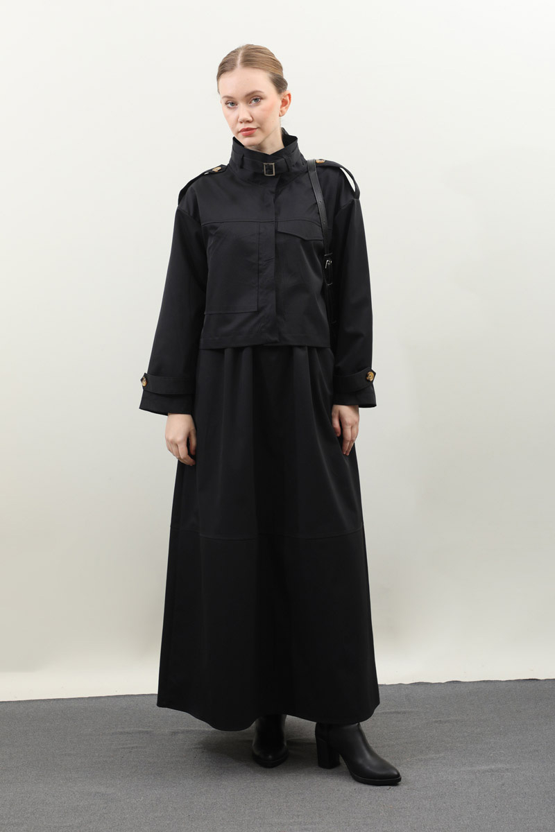Apolet Detaylı Etek Takım Siyah. Yakadan kemer ve toka detaylıdır, omuzdan apolet detaylıdır, düşük kolludur, Önden düğmelidir, Tasarım cep detaylıdır, Bilekten kemer detaylıdır, Etek belden lastikli olup yandan ceplidir astarlıdır.. Günlük kullanım ve özel günlerinizde tercih edebilirsiniz.
