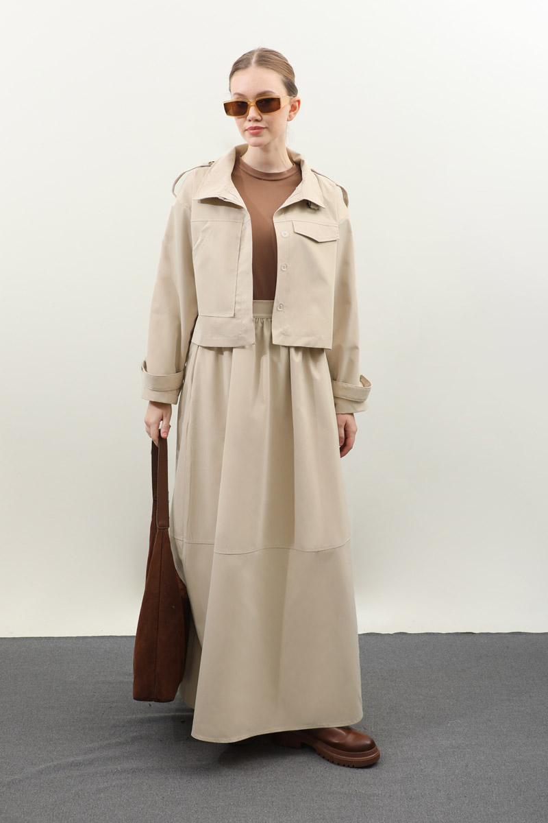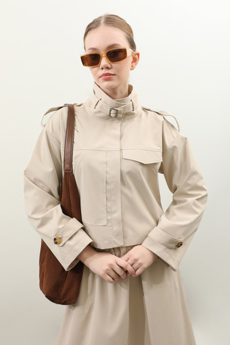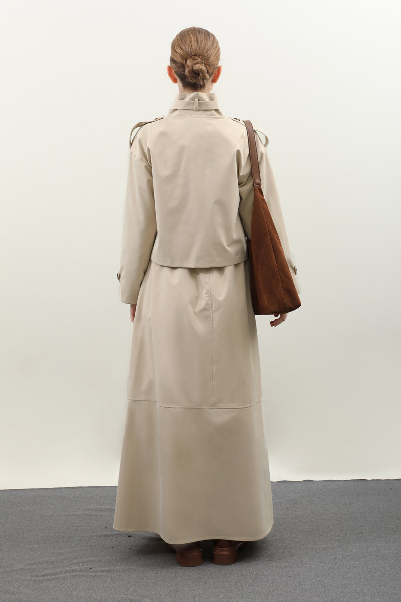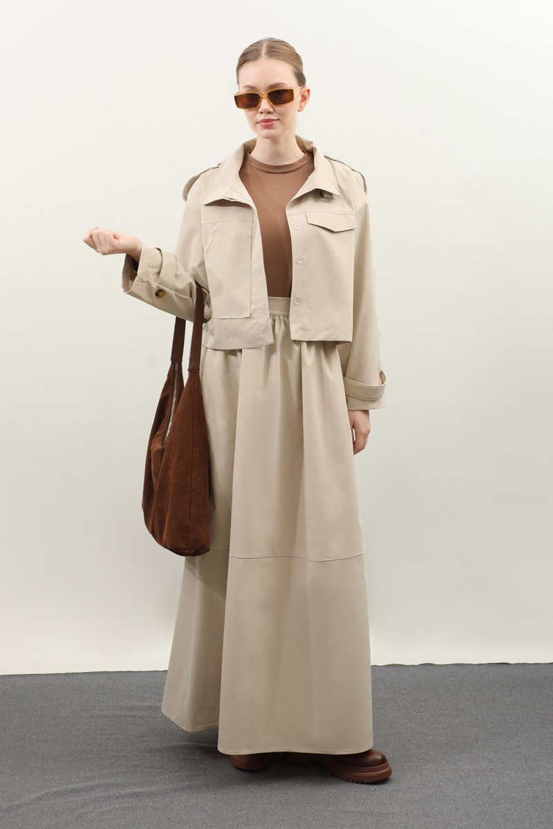 Apolet Detaylı Etek Takım Taş. Yakadan kemer ve toka detaylıdır, omuzdan apolet detaylıdır, düşük kolludur, Önden düğmelidir, Tasarım cep detaylıdır, Bilekten kemer detaylıdır, Etek belden lastikli olup yandan ceplidir astarlıdır. Günlük kullanım ve özel günlerinizde tercih edebilirsiniz.