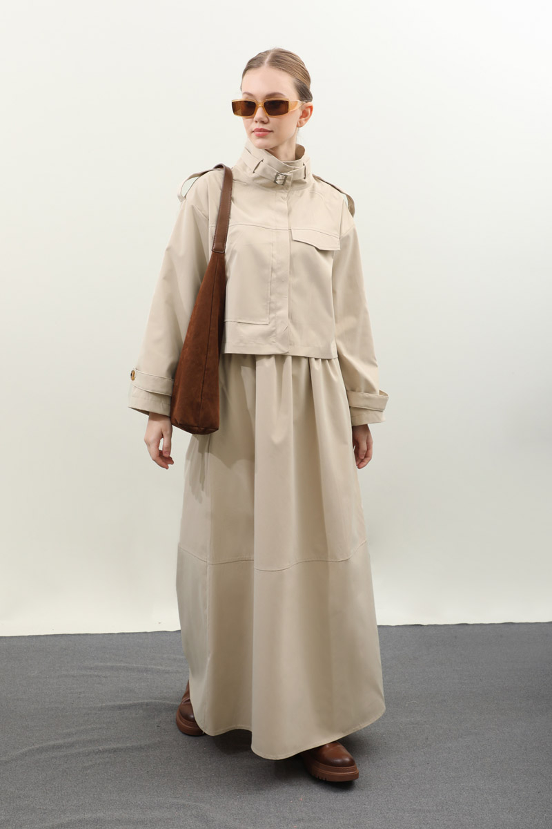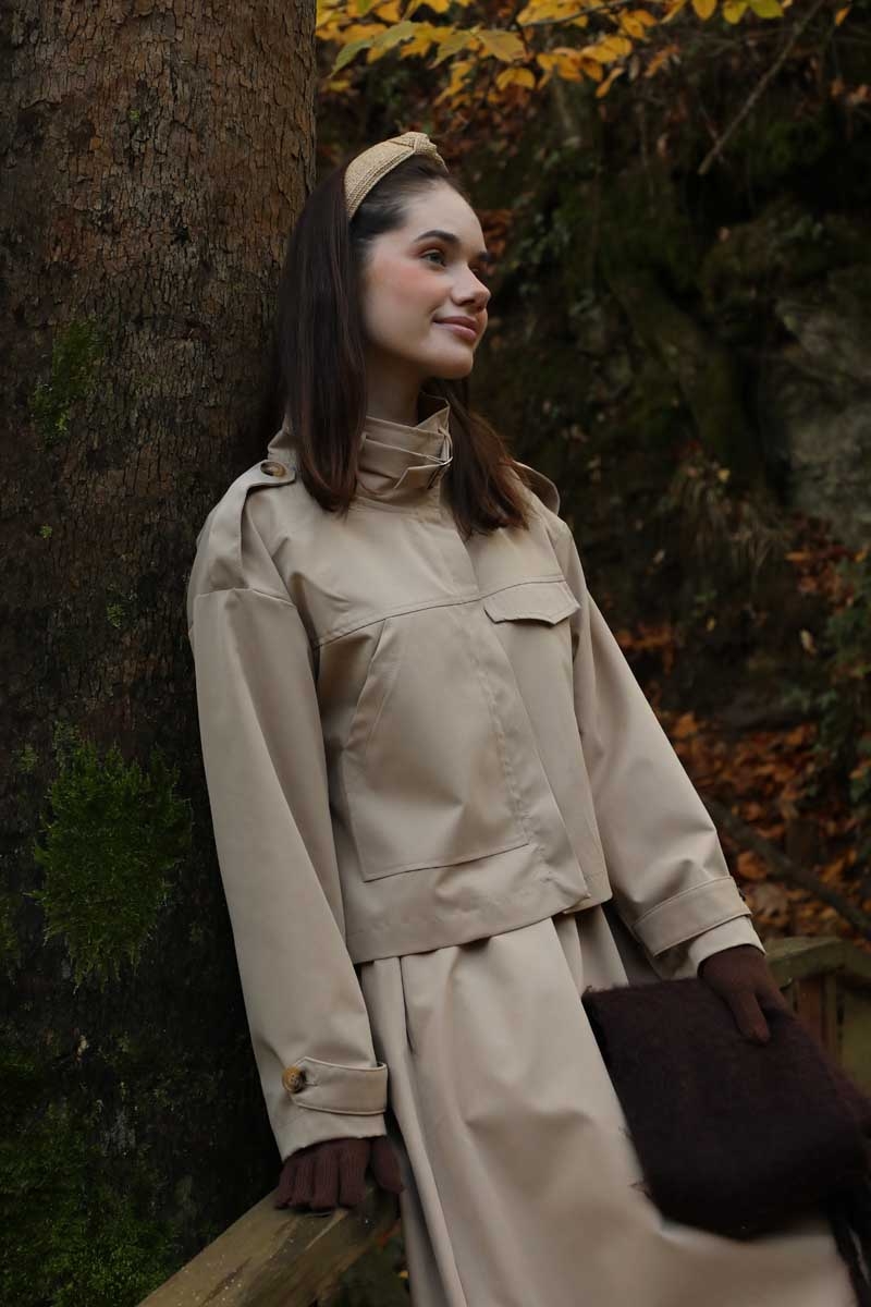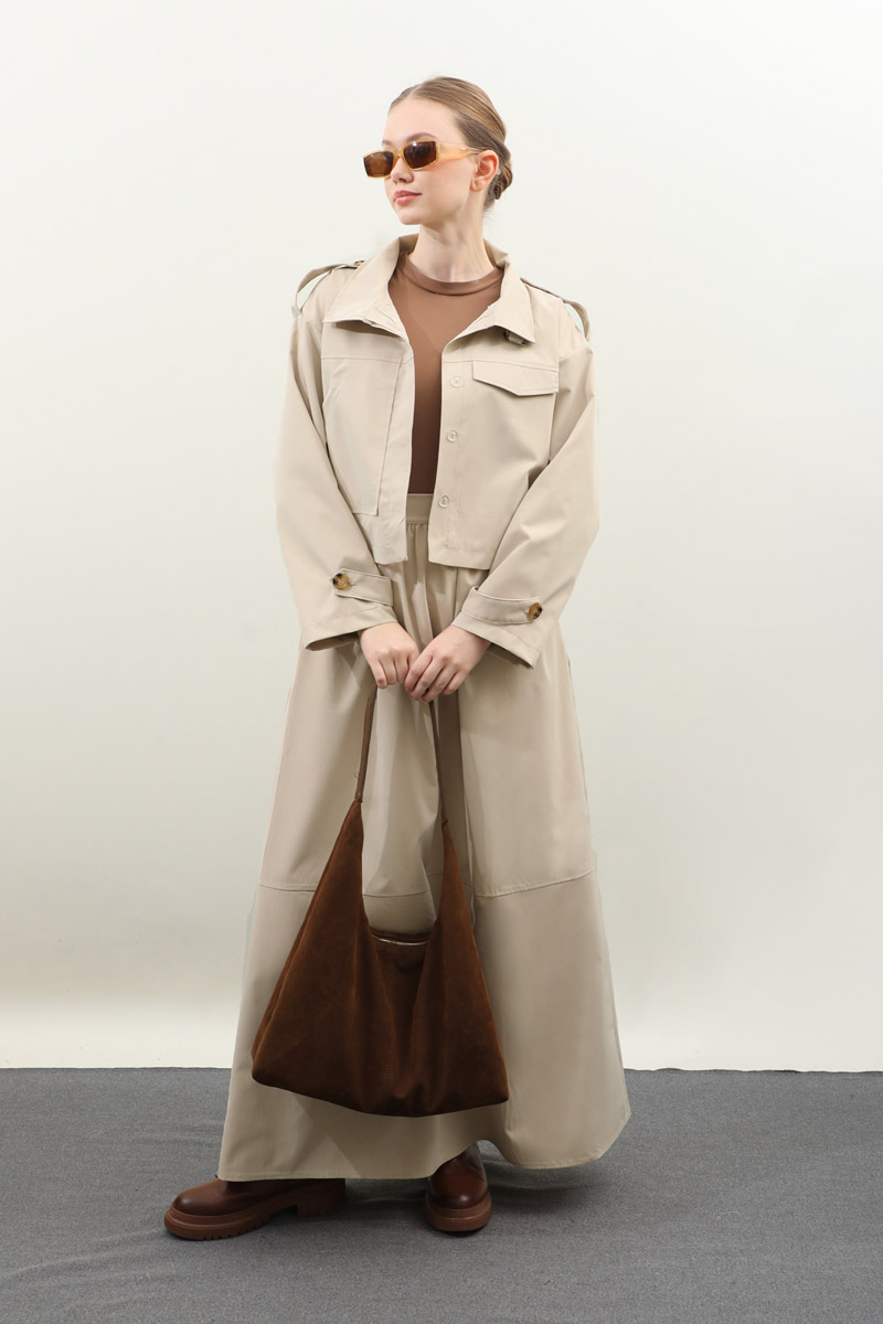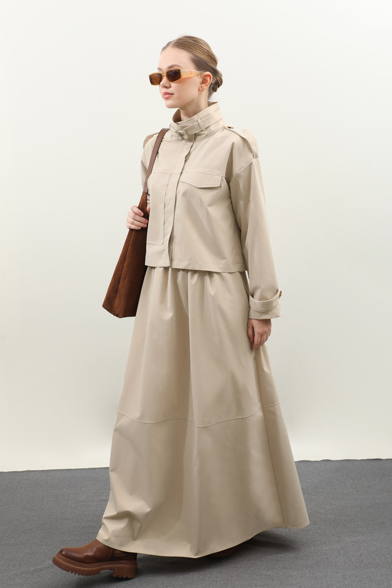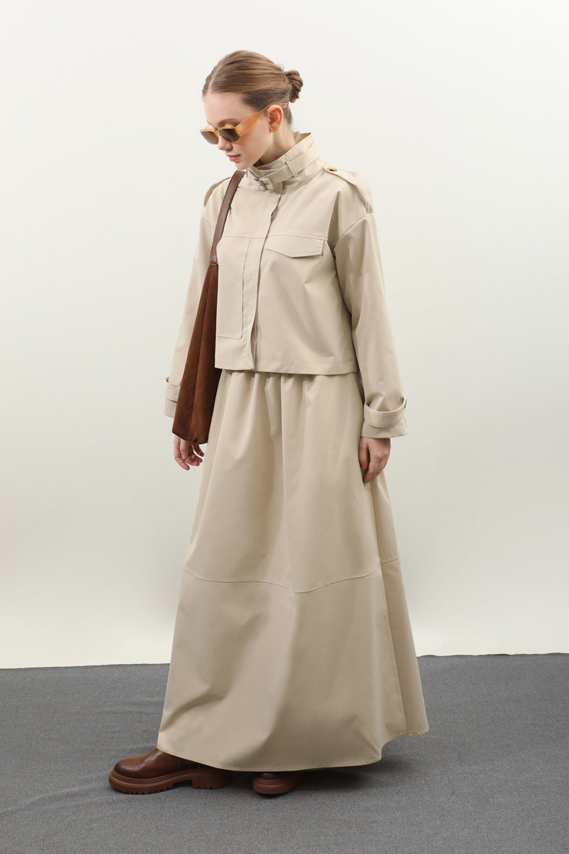 Apolet Detaylı Etek Takım Taş. Yakadan kemer ve toka detaylıdır, omuzdan apolet detaylıdır, düşük kolludur, Önden düğmelidir, Tasarım cep detaylıdır, Bilekten kemer detaylıdır, Etek belden lastikli olup yandan ceplidir astarlıdır. Günlük kullanım ve özel günlerinizde tercih edebilirsiniz.