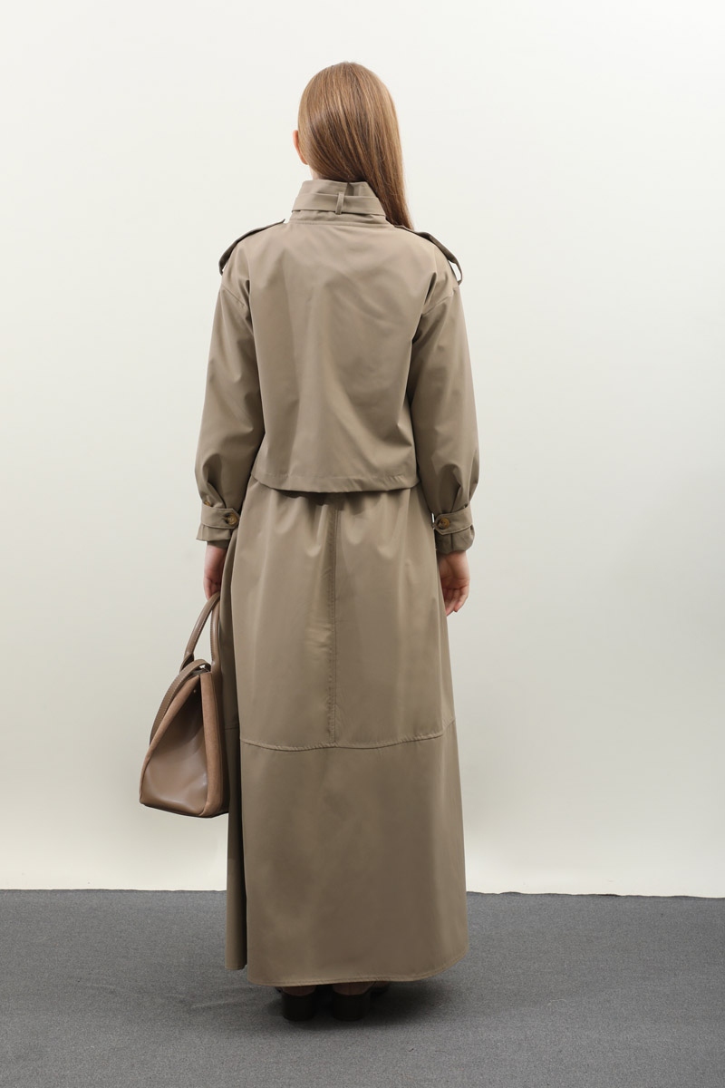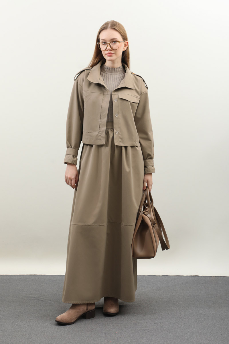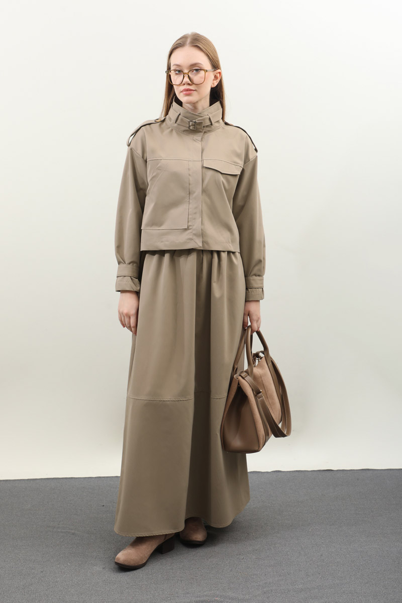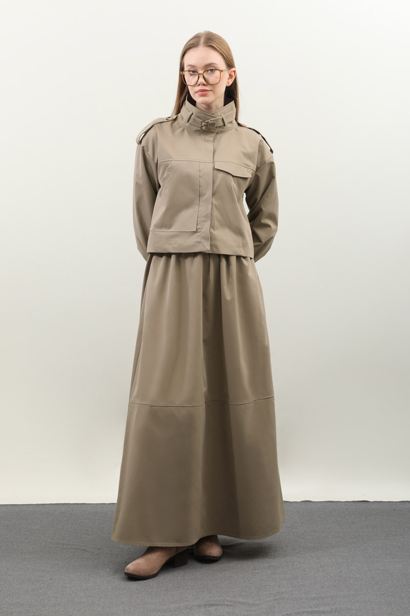 Apolet Detaylı Etek Takım Vizon
