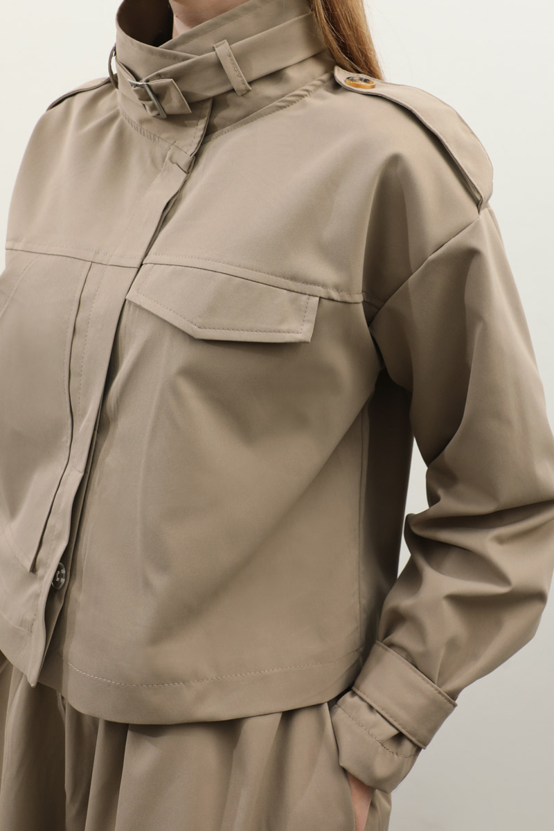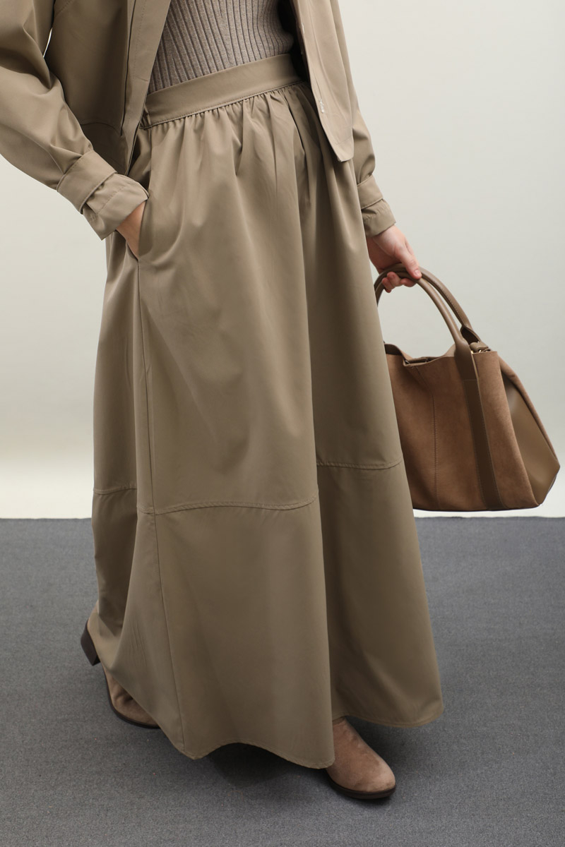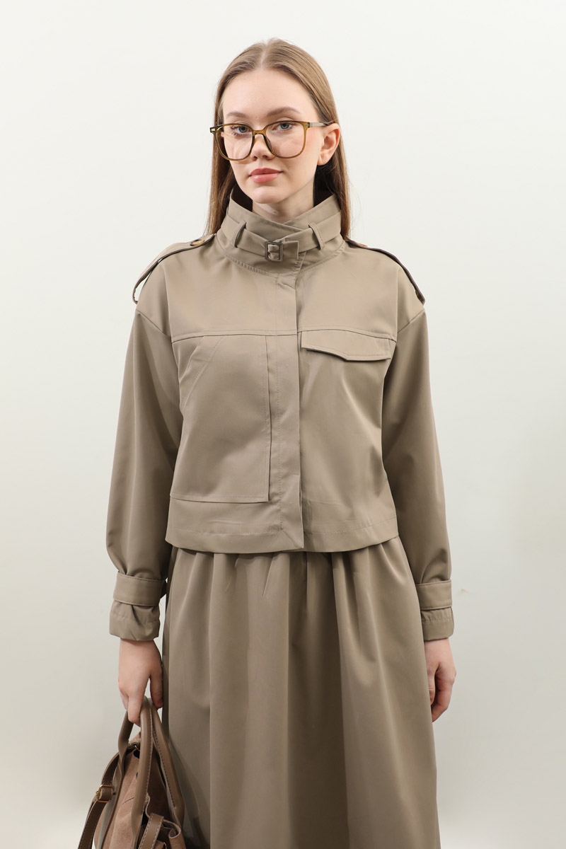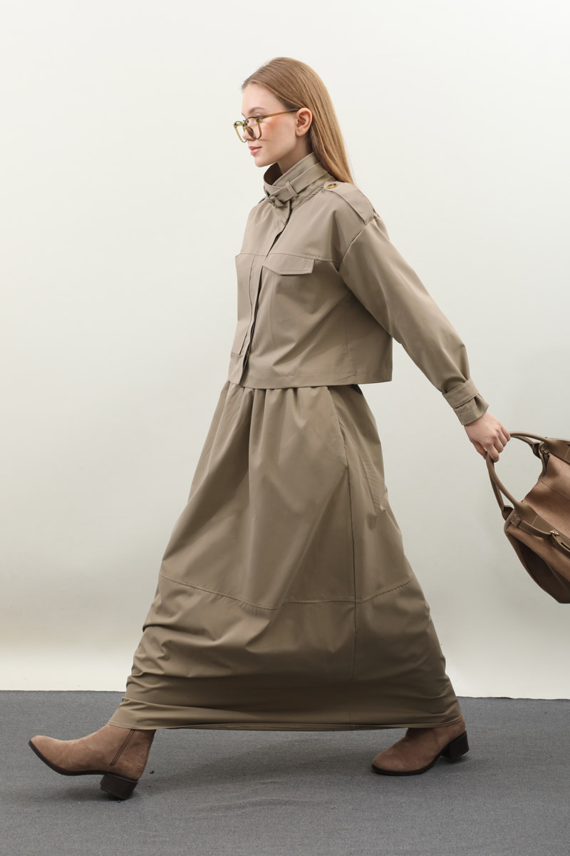 Apolet Detaylı Etek Takım Vizon
