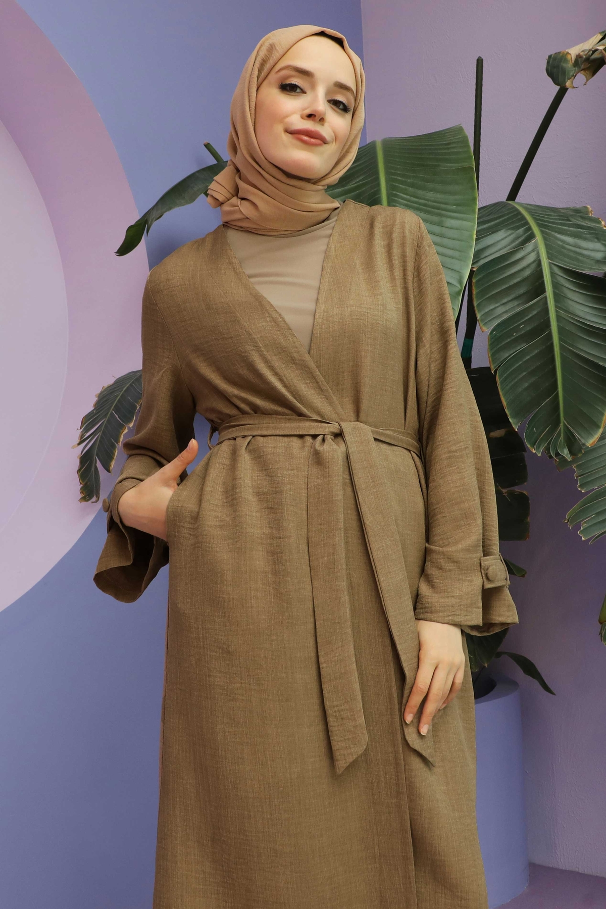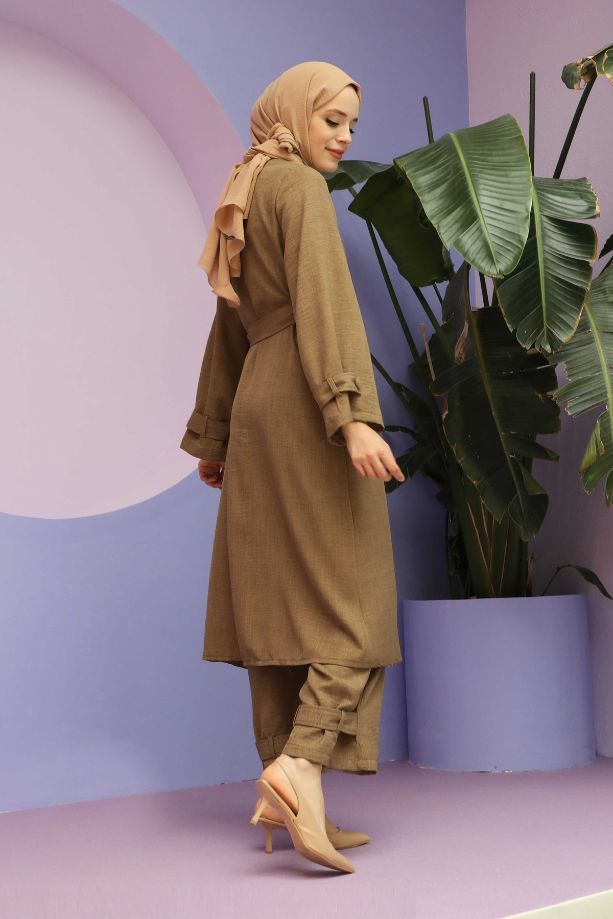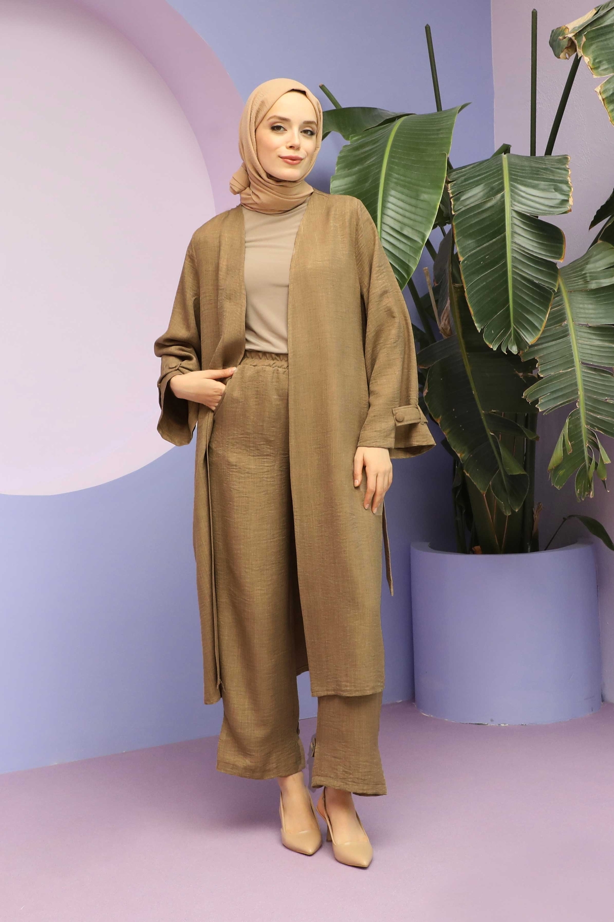 Apolet Detaylı Kuşaklı Takım Vizon. Kolu arkası ve paça arkası apolet detaylıdır. Yan ceplidir. Pantolon beli lastiklidir. Kuşaklıdır. Özel günlerinizde tercih edebilirsiniz.
