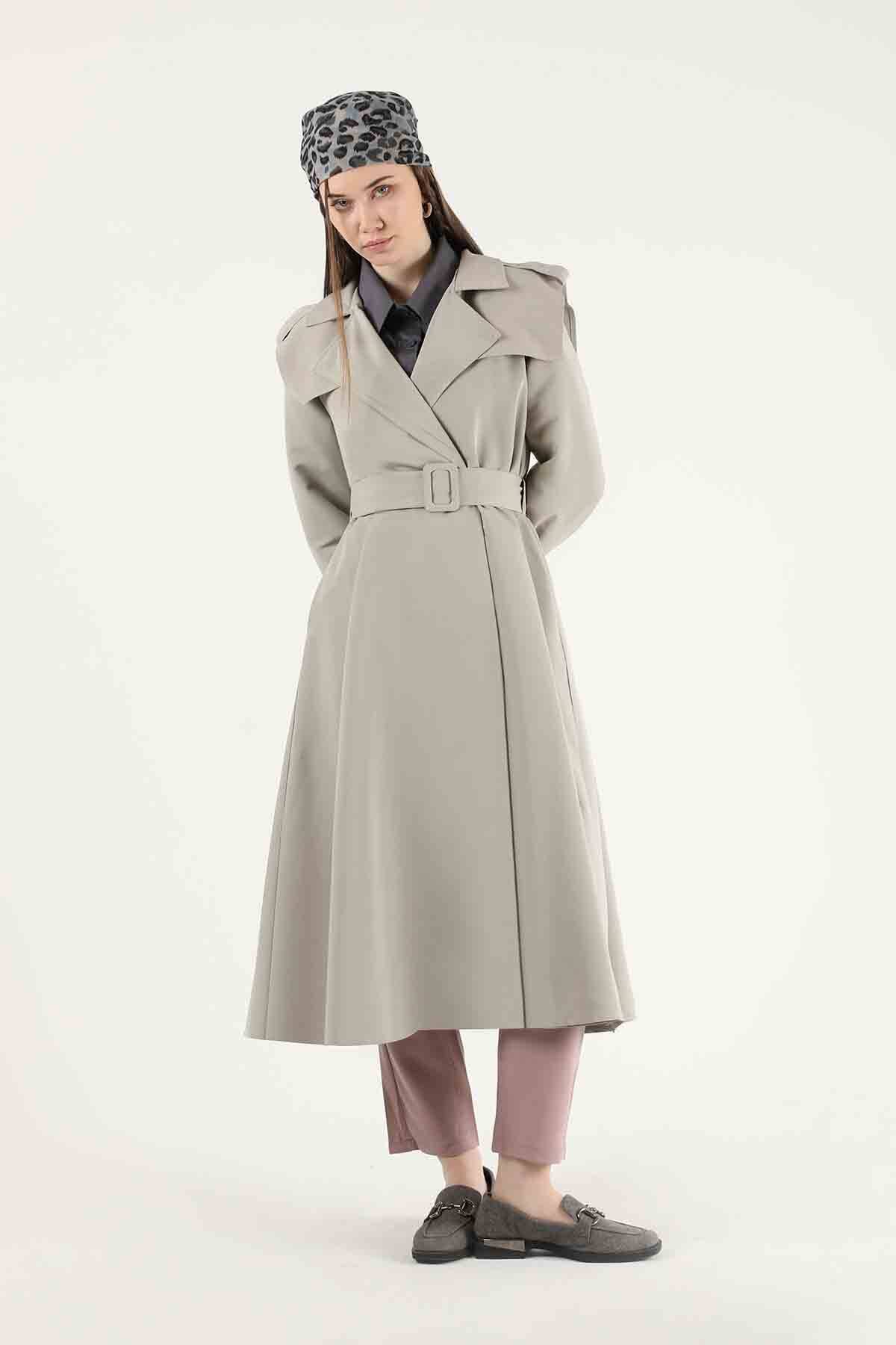 Apolet Detaylı Trençkot Çakıl