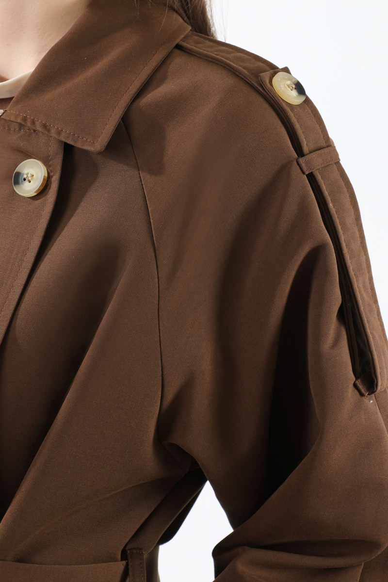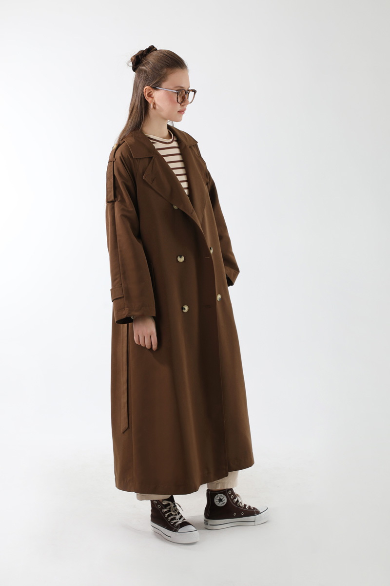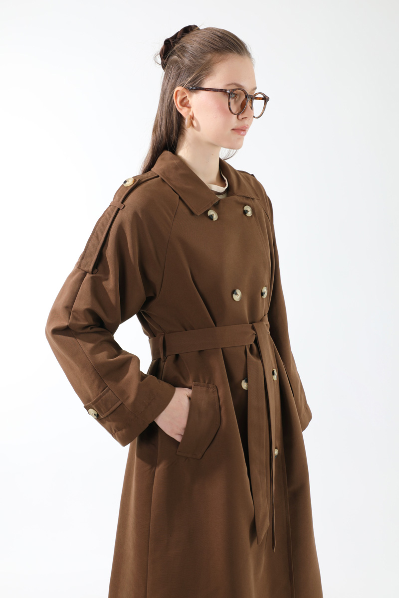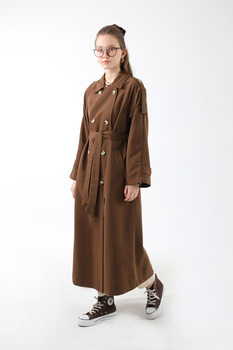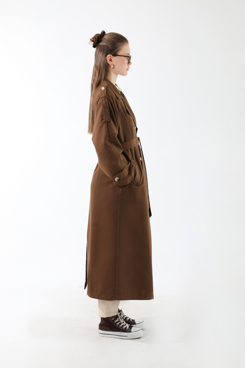 Apolet Detaylı Uzun Trenç Taş, klasik trençkot görünümünü modern detaylarla buluşturuyor. Omuz kısmındaki apolet tasarımı ve kruvaze düğme kapamasıyla güçlü bir siluet sunarken, belden bağlamalı kemeri formu kişiselleştirmenizi sağlar. Tok dokulu kumaşı sayesinde duruşunu korur ve uzun boyu ile zarif bir görünüm kazandırır. Mevsim geçişlerinde konfor ve şıklığı bir arada arayanlar için ideal bir dış giyim parçasıdır.
