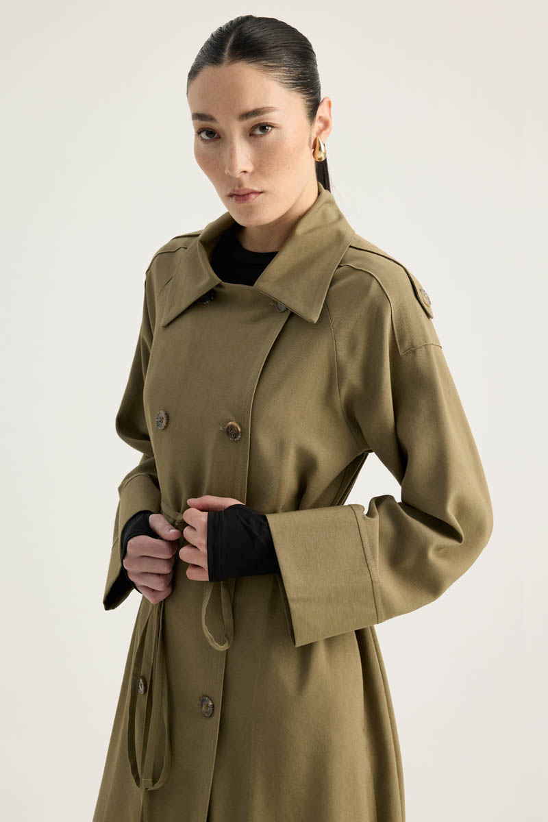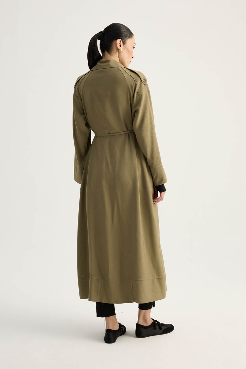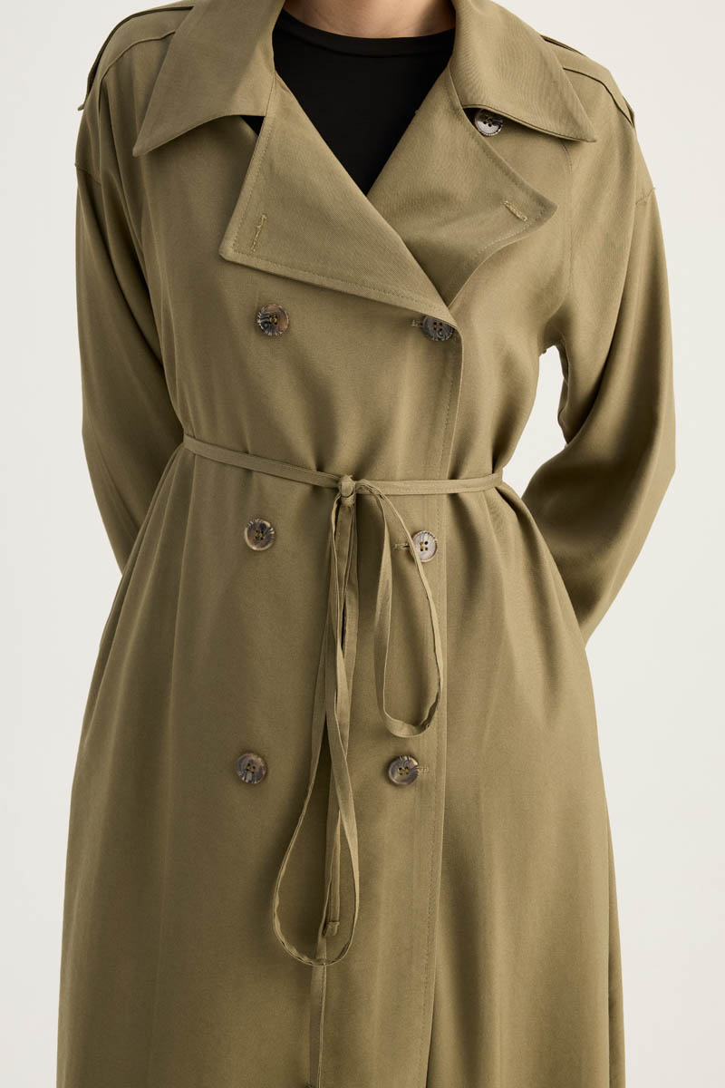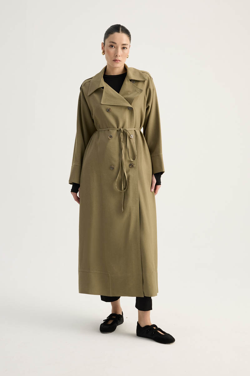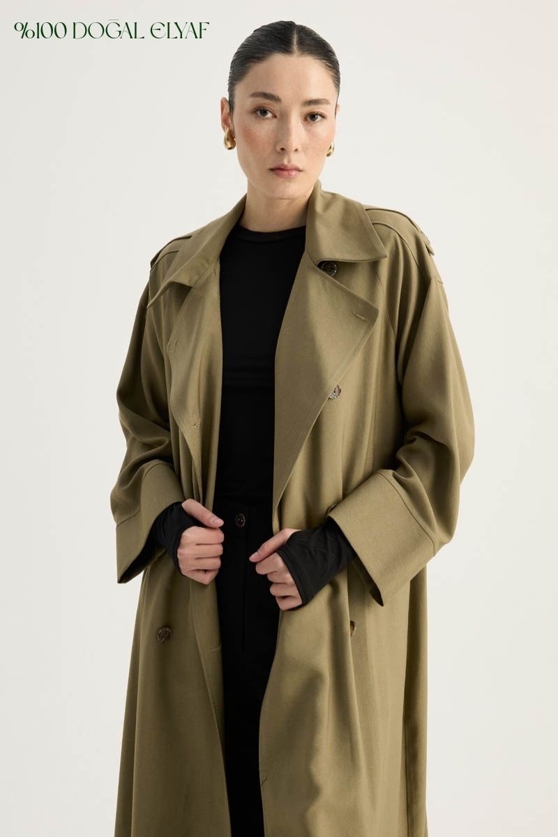Apoletli Kruvaze Trençkot Haki