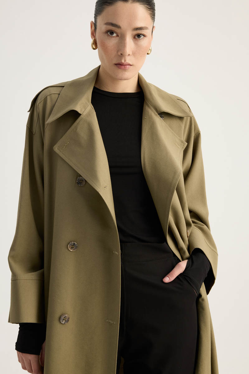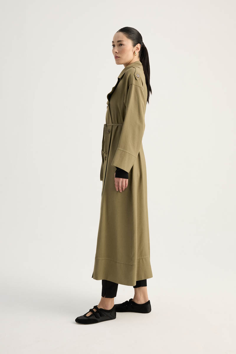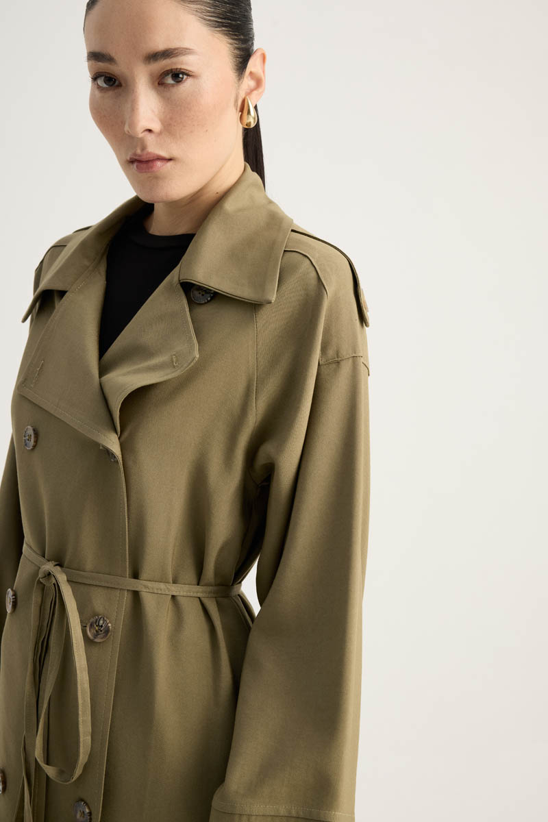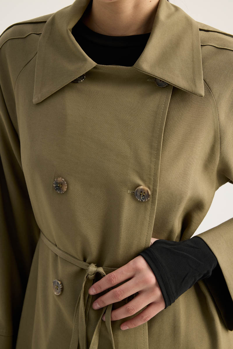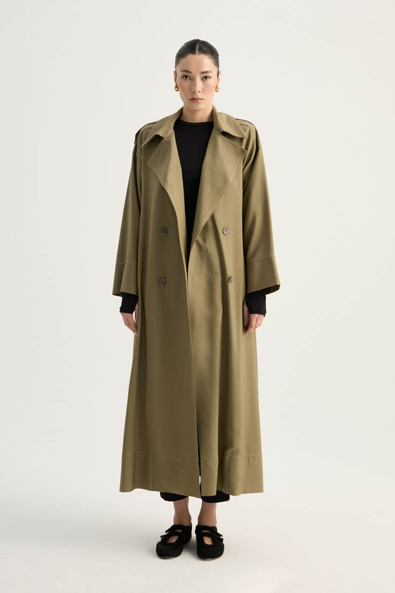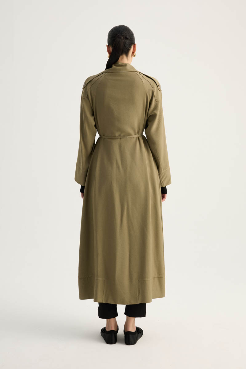 Apoletli Kruvaze Trençkot Haki