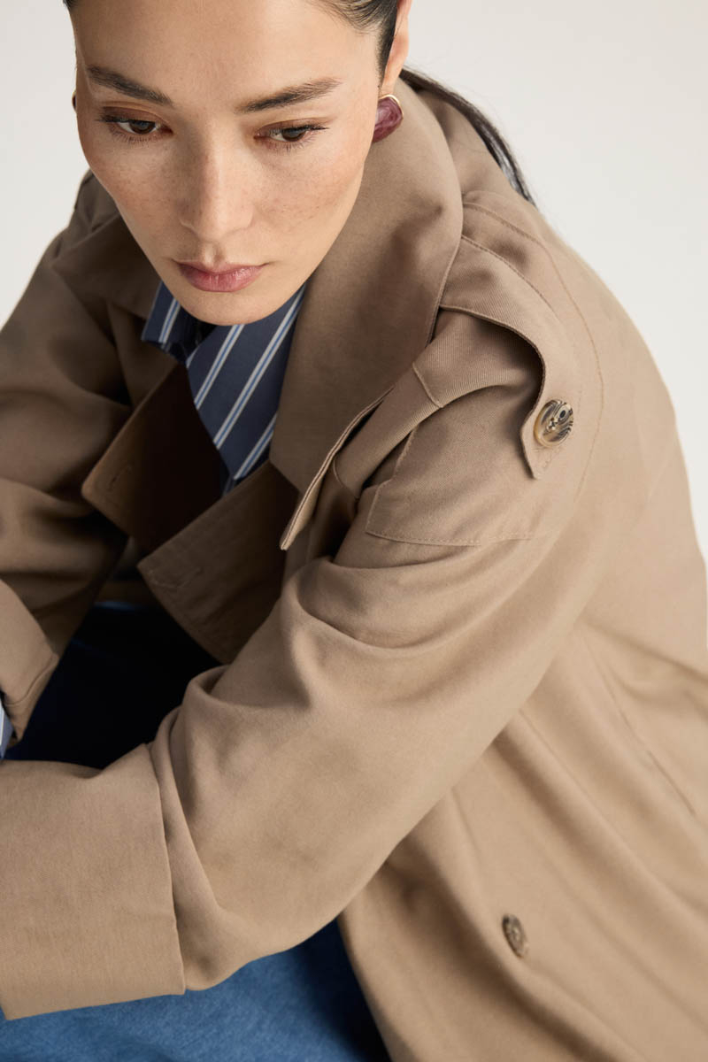 Apoletli Kruvaze Trençkot Vizon. Kruvaze yakadır, önden düğmelidir, omuzdan apolet detaylıdır, düşük omuzludur, duble kolludur, yandan ceplidir, beli biye bağlamalıdır, etek ucu yanları parça dikiş detaylıdır, astarsızdır. bol kalıptır. Günlük kullanım ve özel günlerinizde tercih edebilirsiniz.