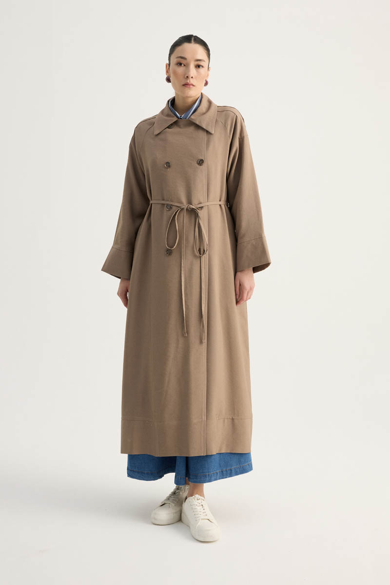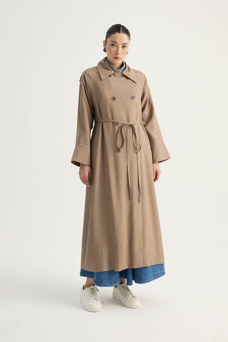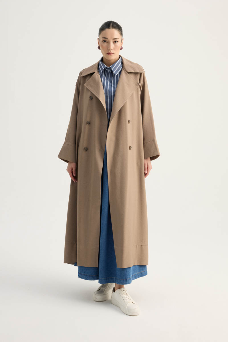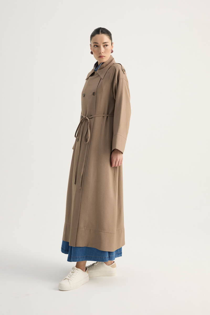 Apoletli Kruvaze Trençkot Vizon