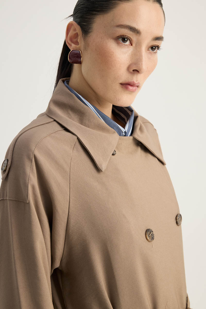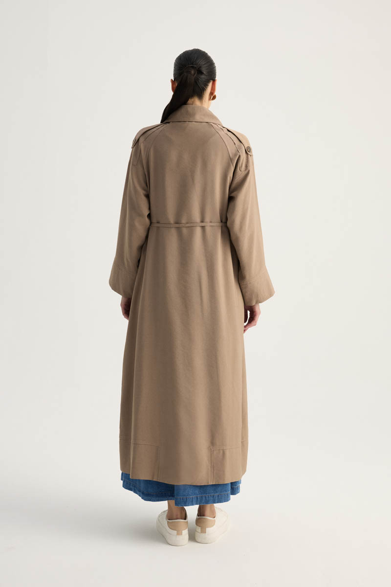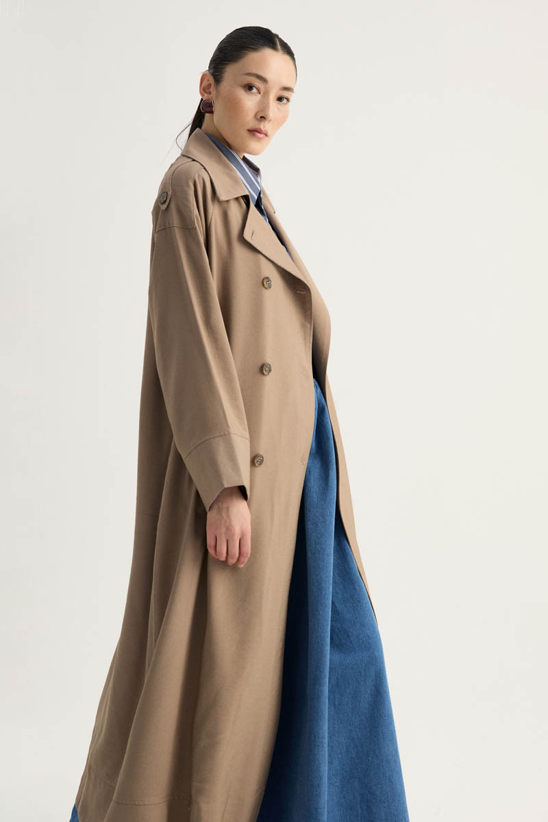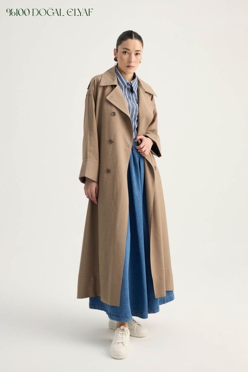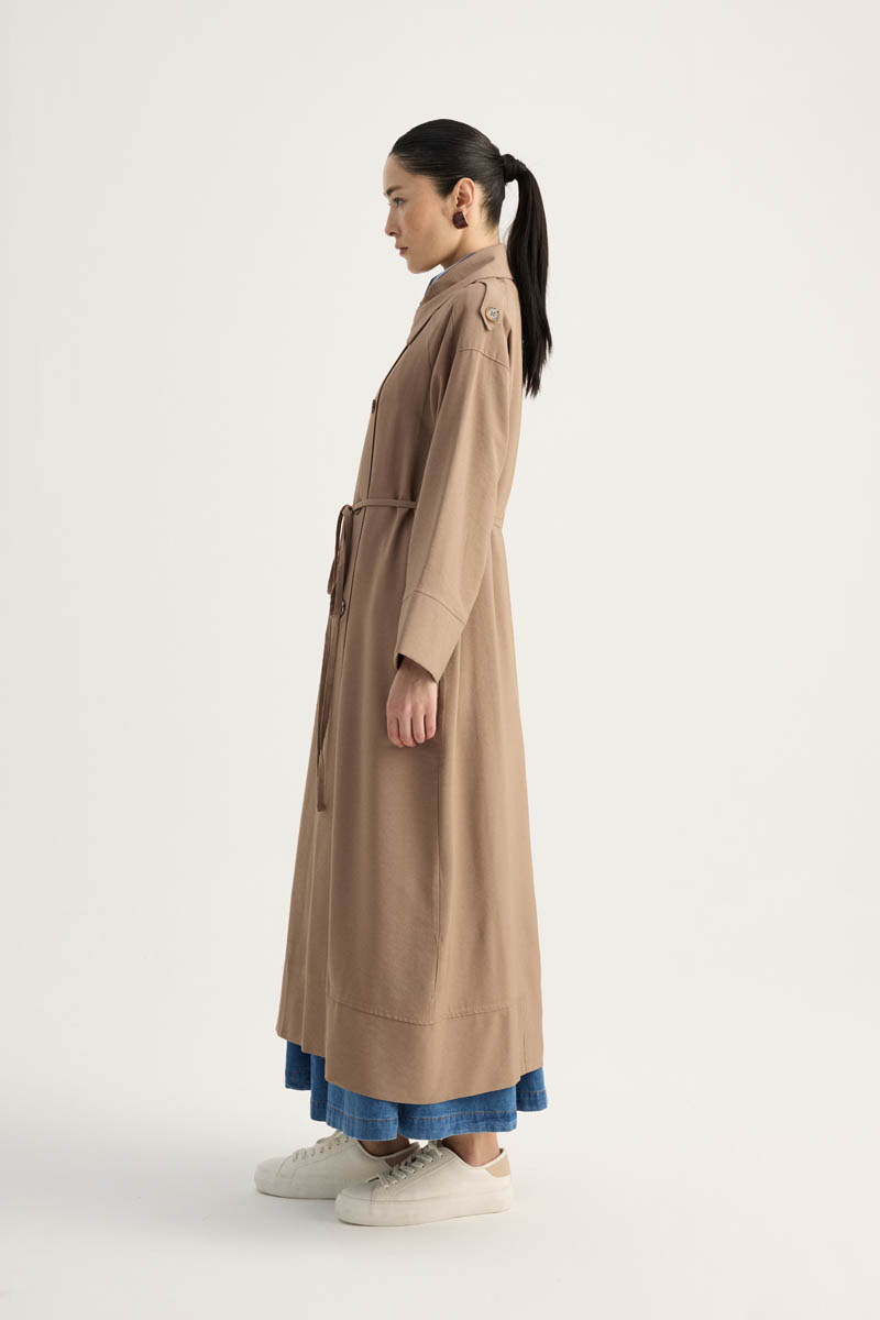 Apoletli Kruvaze Trençkot Vizon