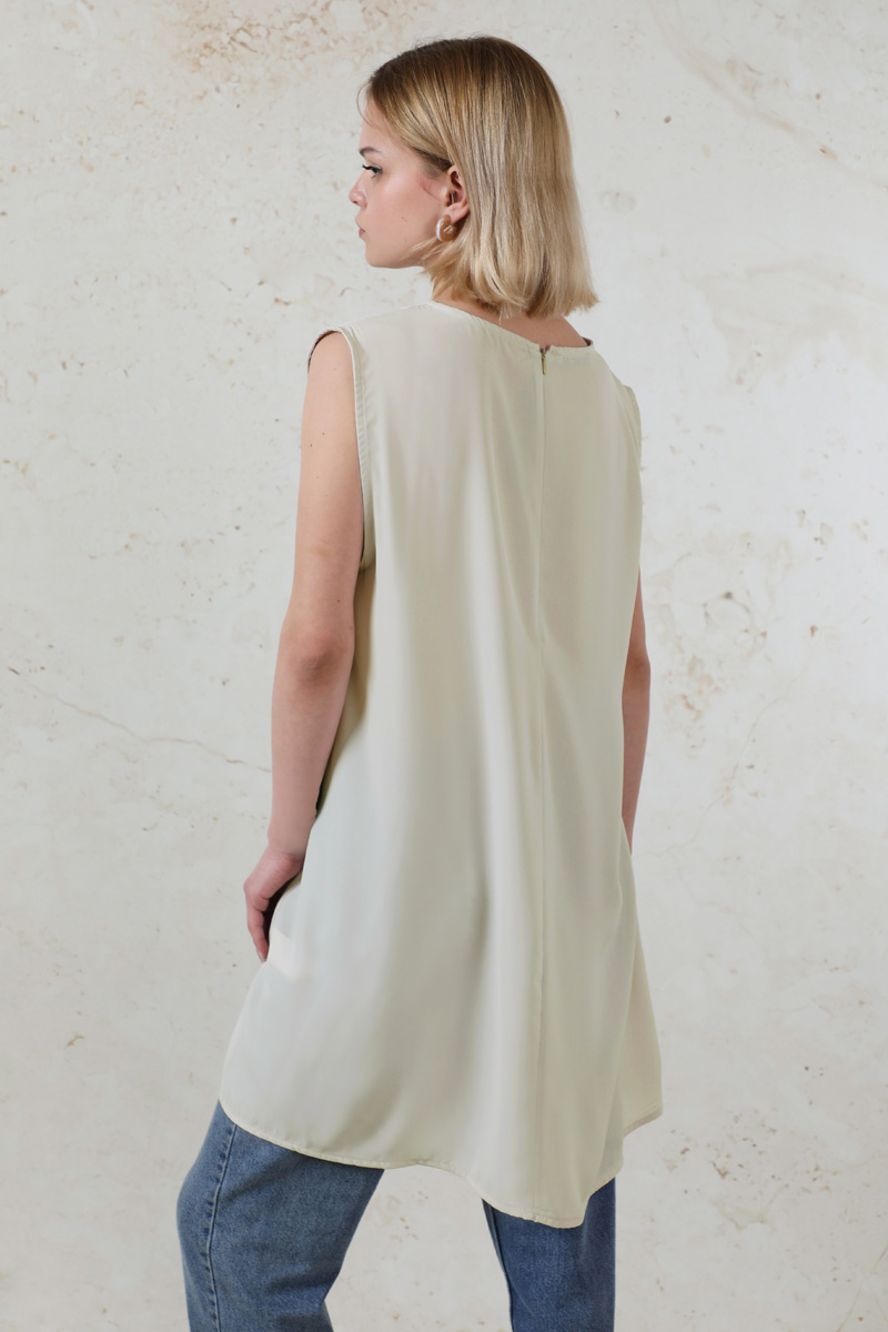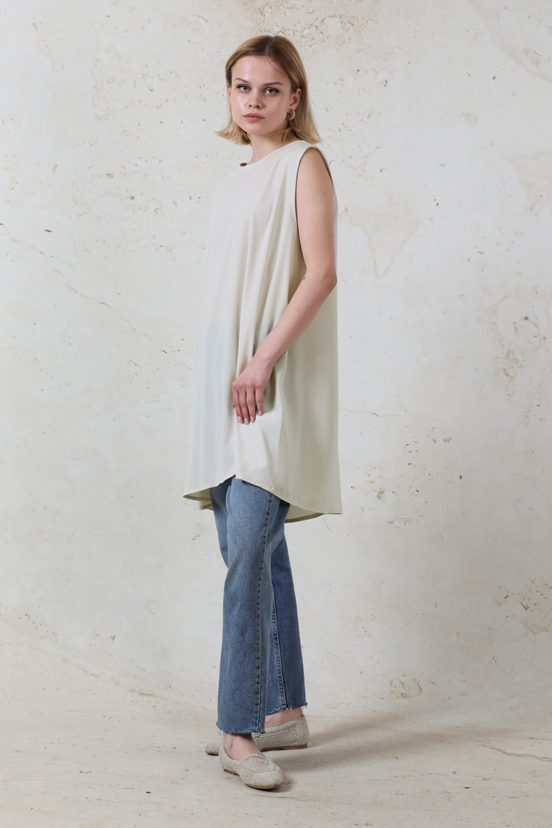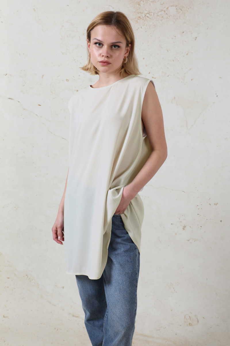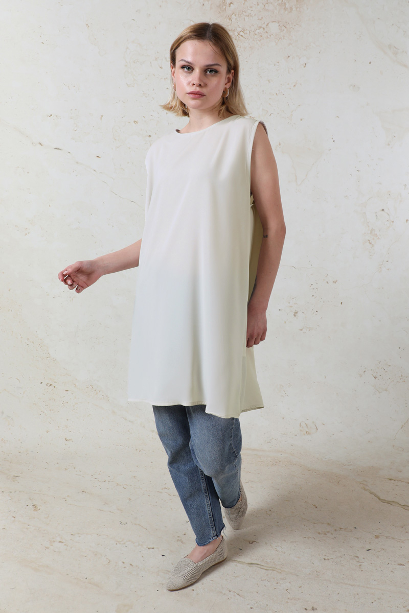 Ara Boy İçlik Taş. Bisiklet yaka, sıfır kol. Kumaşı medine ipeği ince, yazlık, dökümlü kumaştır. Salaş bir duruşu vardır.