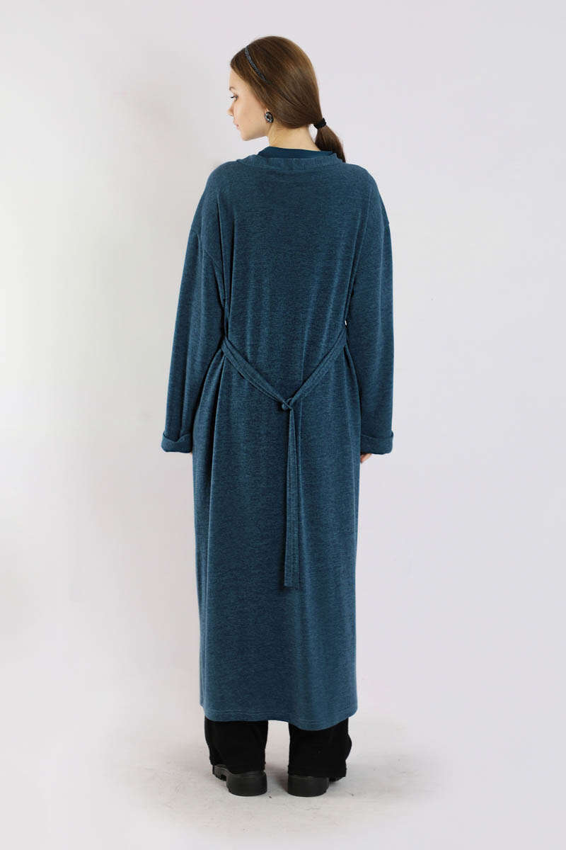 Arkadan Kuşaklı Triko Hırka İndigo