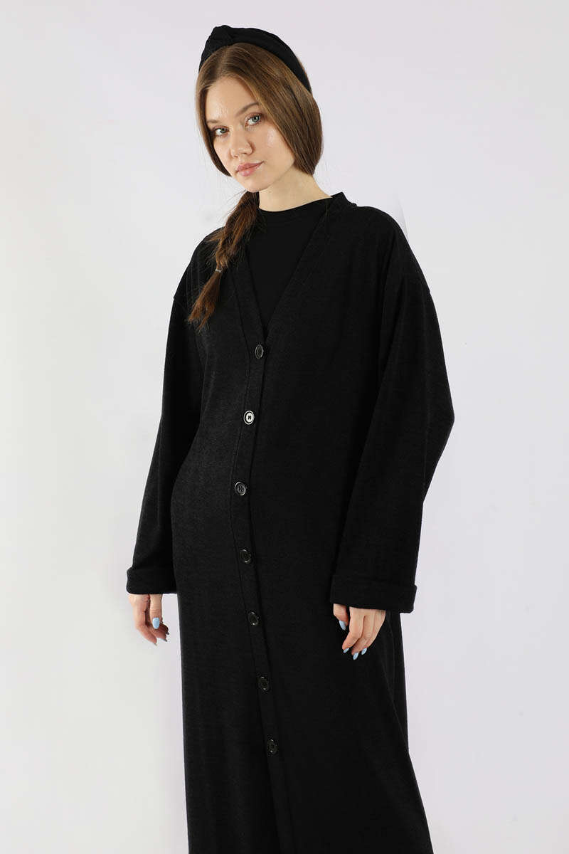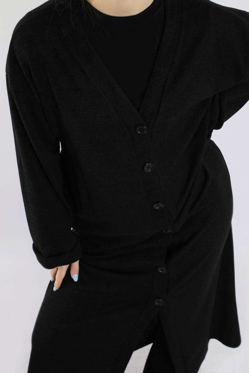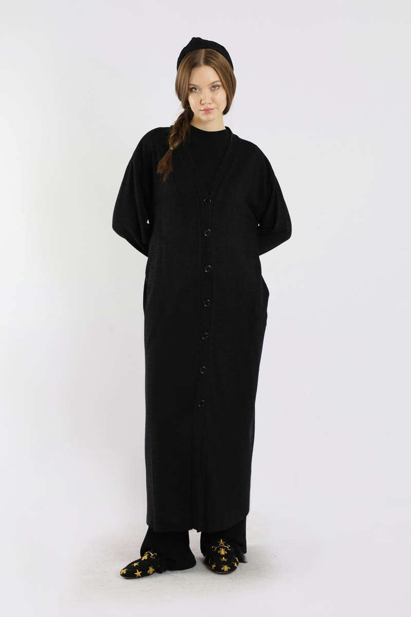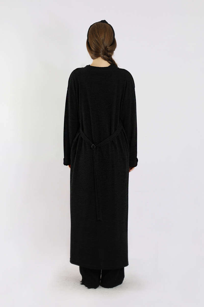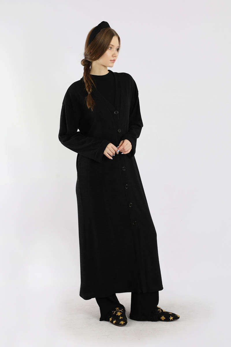 Arkadan Kuşaklı Triko Hırka Siyah. Önden düğmelidir. Yandan ceplidir. Düşük omuzludur. Duble kolludur. Oversize kalıptır. Bedene dikili tokalı kuşak detaylıdır. Günlük kullanım ve özel günlerinizde tercih edebilirsiniz.