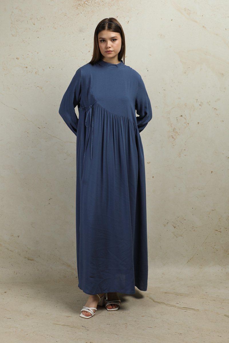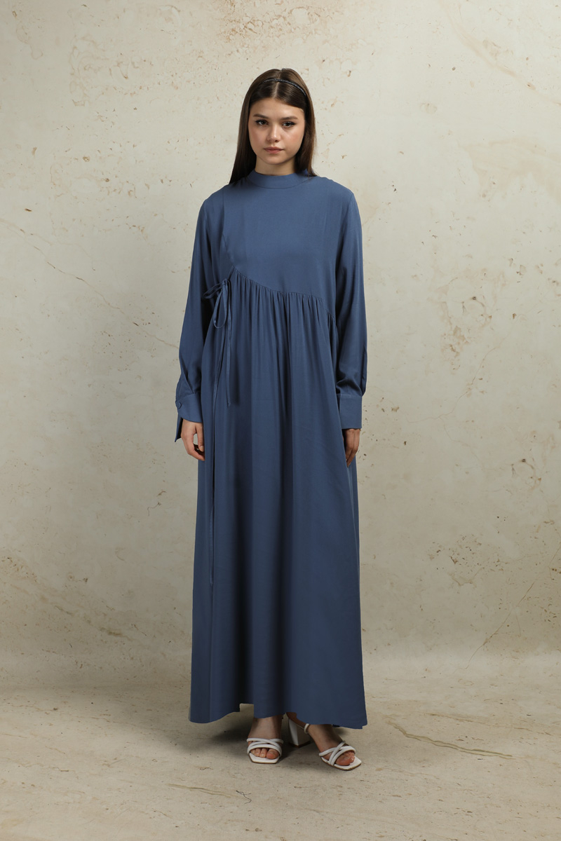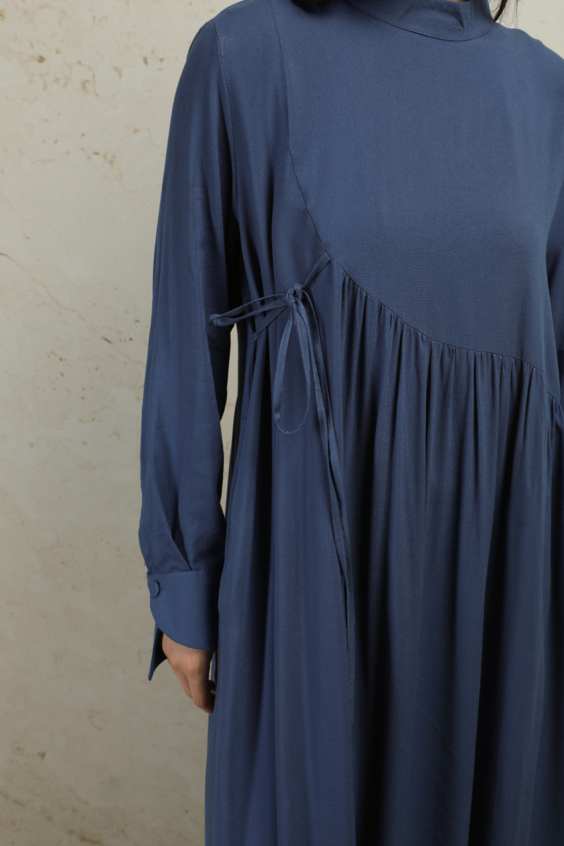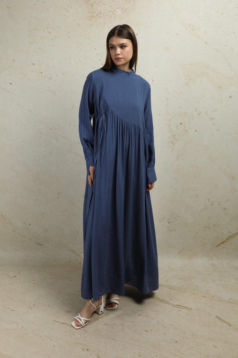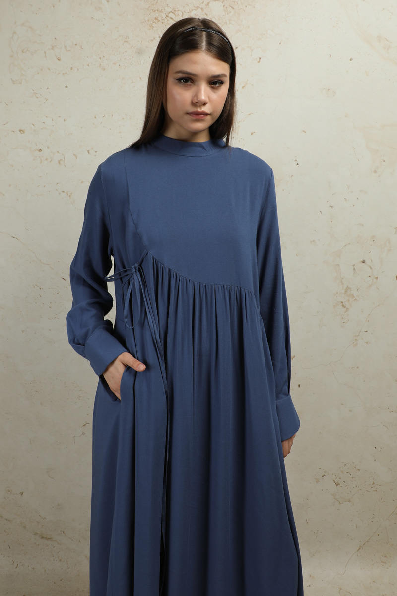 Asimetrik Büzgülü Elbise İndigo