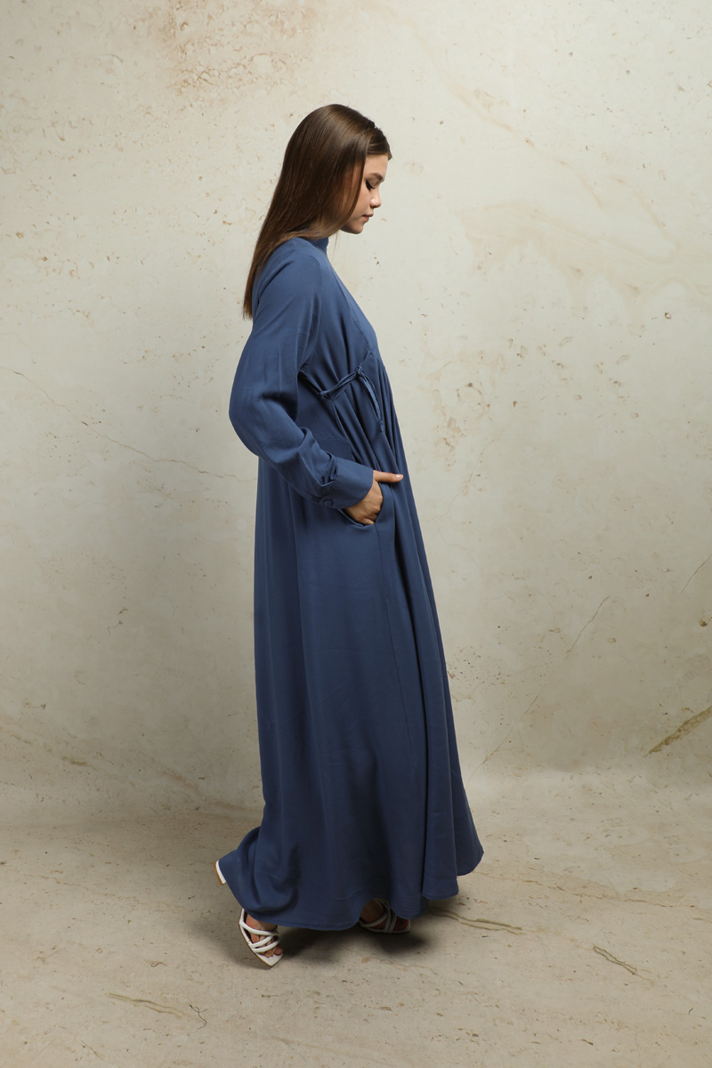 Asimetrik Büzgülü Elbise İndigo. Manşeti asimetrik detaylıdır. Arkadan fermuarlıdır. Yandan ceplidir. Önü asimetriktir. Kesikli ve büzgülüdür. Günlük ve özel günlerde kullanıma uygundur.