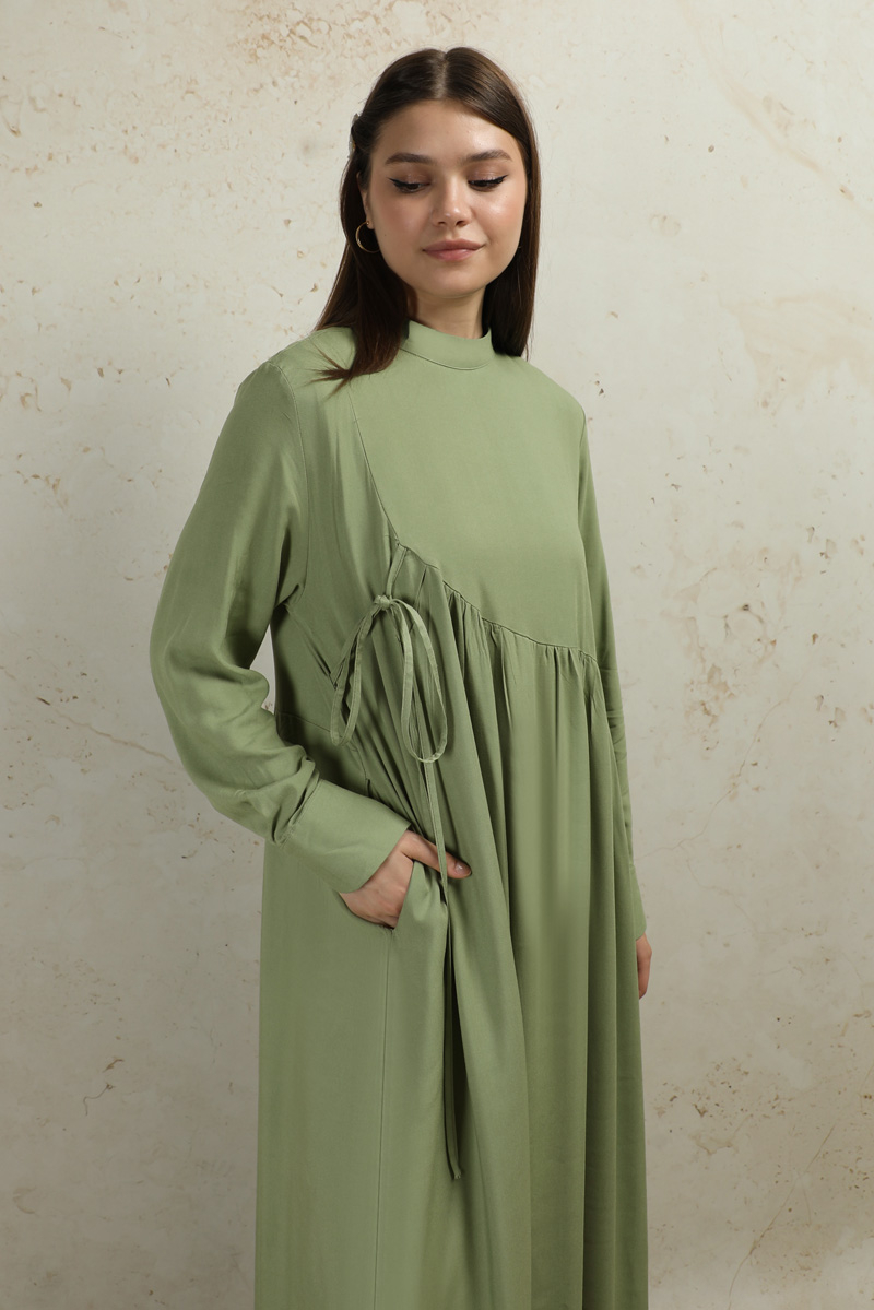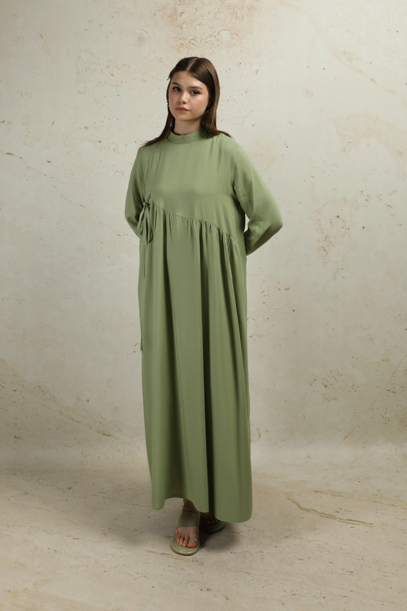 Asimetrik Büzgülü Elbise Mint. Manşeti asimetrik detaylıdır. Arkadan fermuarlıdır. Yandan ceplidir. Önü asimetriktir. Kesikli ve büzgülüdür. Günlük ve özel günlerde kullanıma uygundur. Astarsızdır.