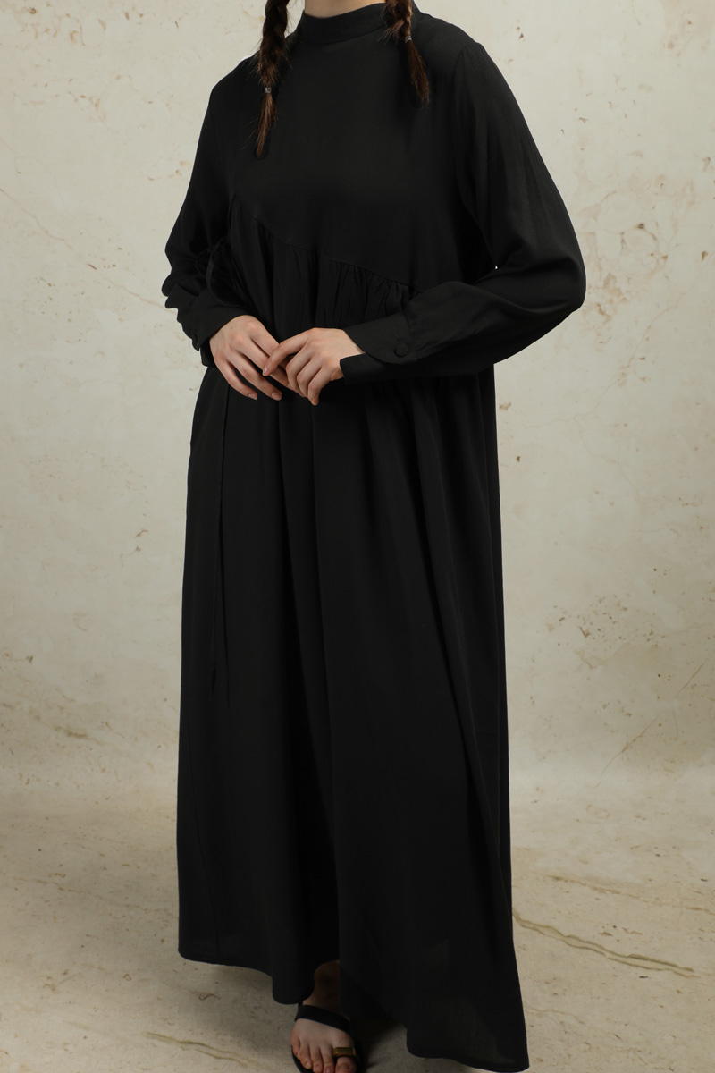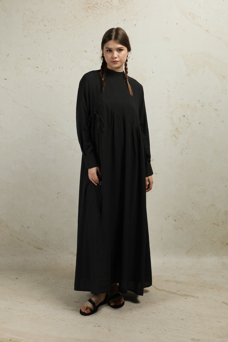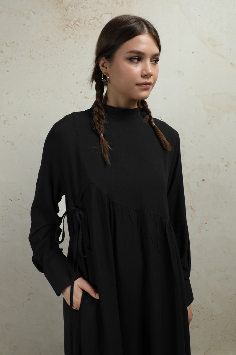 Asimetrik Büzgülü Elbise Siyah