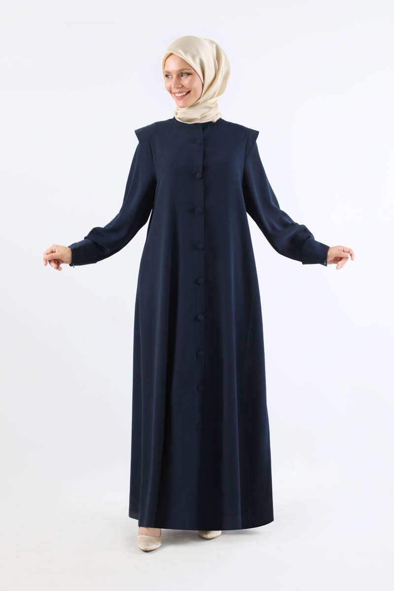 Asimetrik Detaylı Ferace Lacivert. Manşeti asimetrik detaylıdır. Yandan ceplidir. Düğmelidir. Hakim yakalıdır. Omzu aller detaylıdır. Kuşaklıdır. Günlük kullanım ve özel günlerinizde tercih edebilirsiniz.