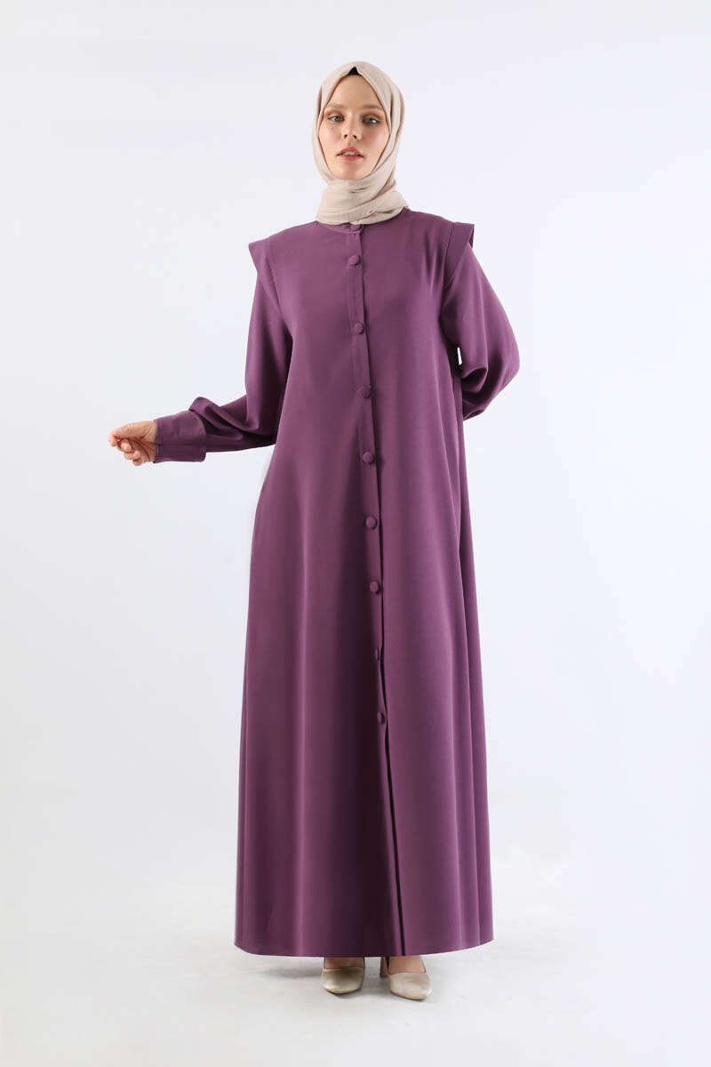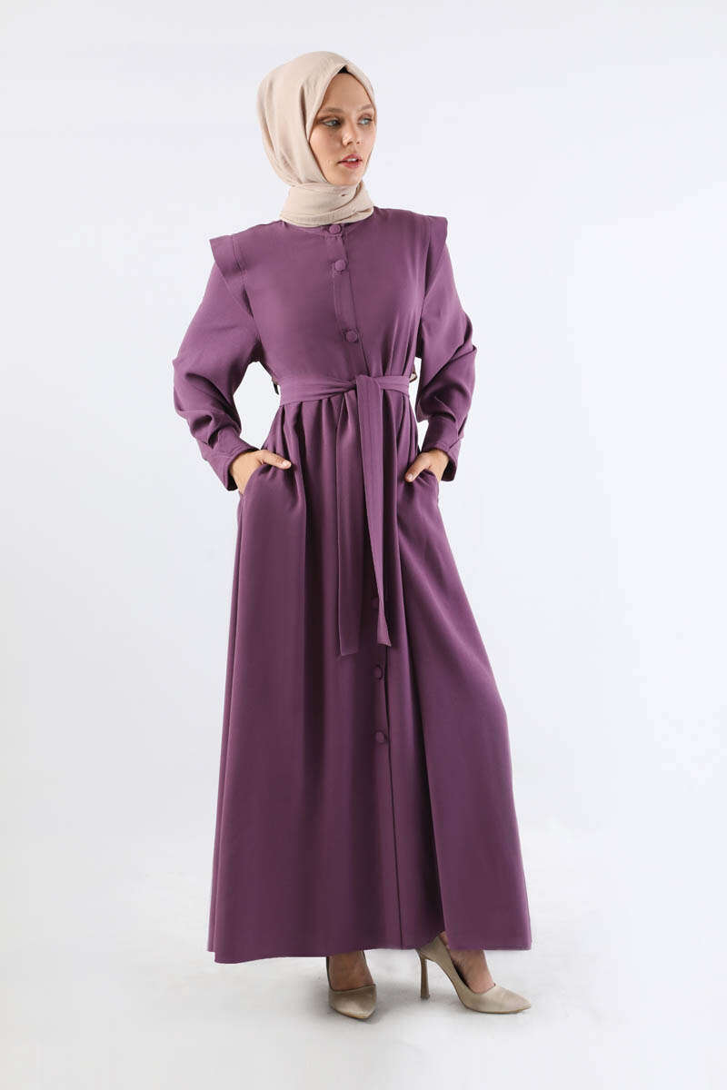 Asimetrik Detaylı Ferace Mürdüm. Manşeti asimetrik detaylıdır. Yandan ceplidir. Düğmelidir. Hakim yakalıdır. Omzu aller detaylıdır. Kuşaklıdır. Günlük kullanım ve özel günlerinizde tercih edebilirsiniz.