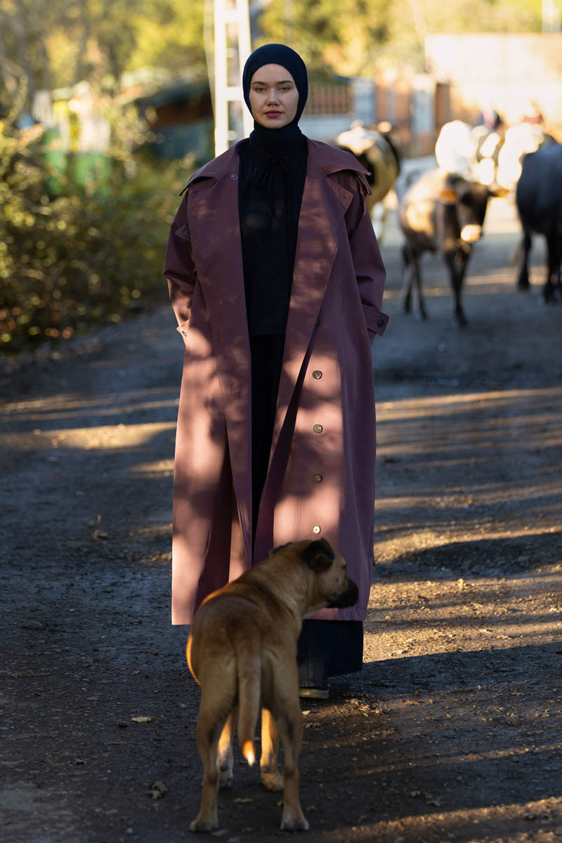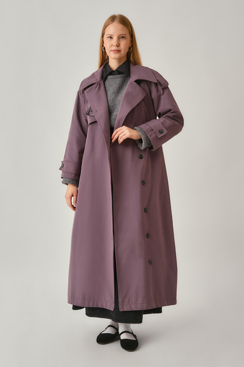 Asimetrik Düşük Kol Trençkot Koyu Mürdüm