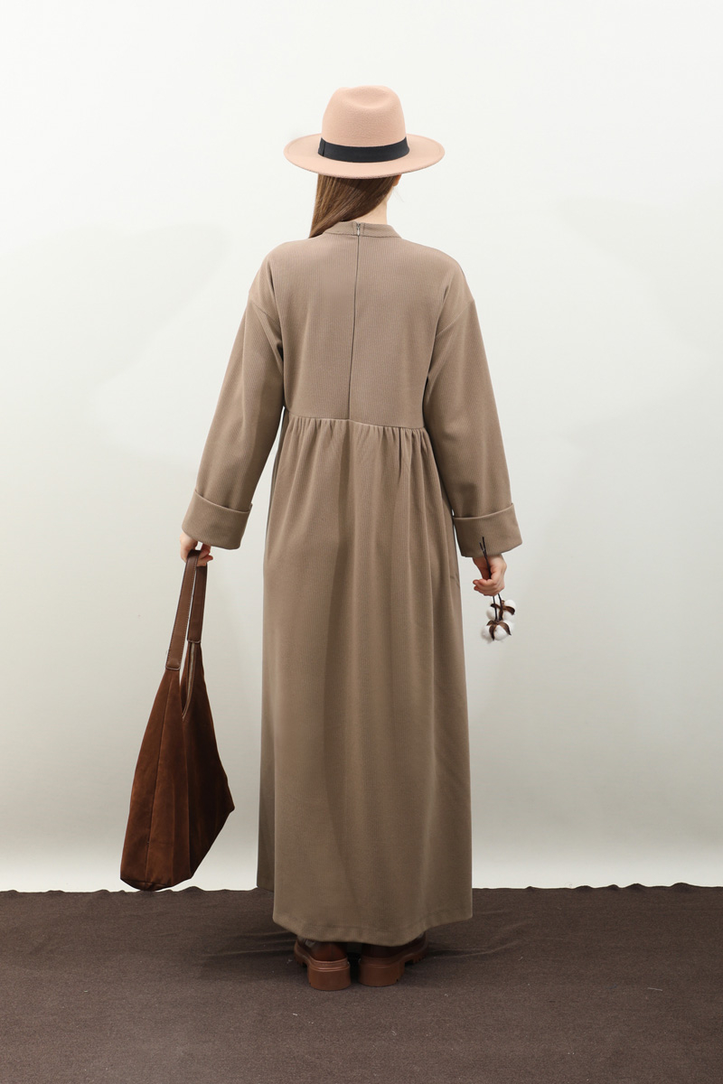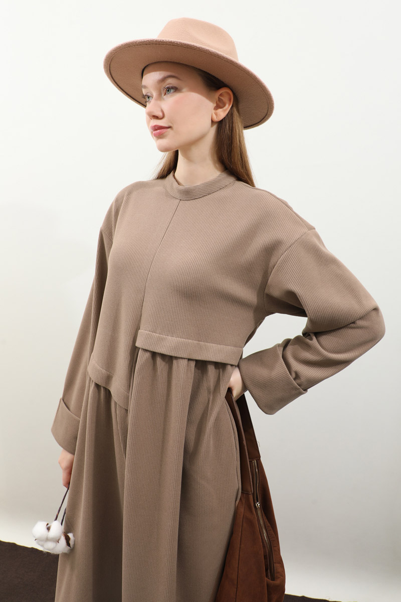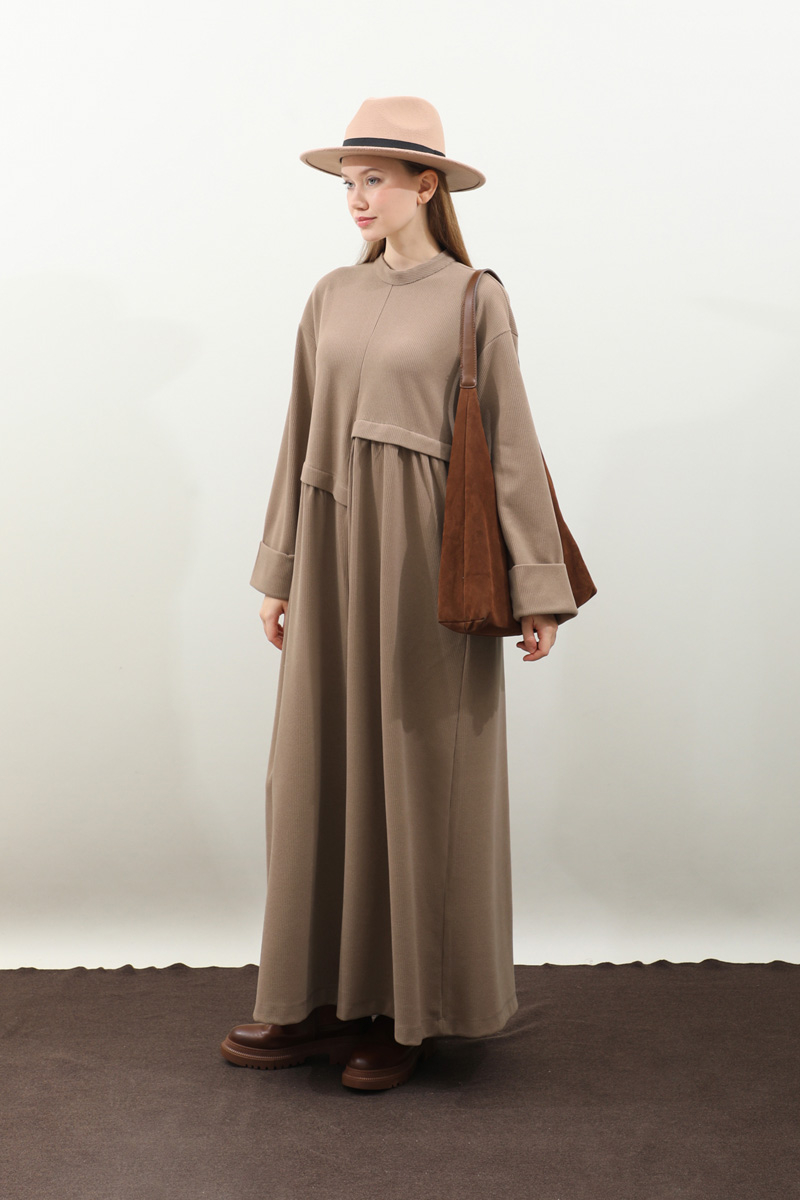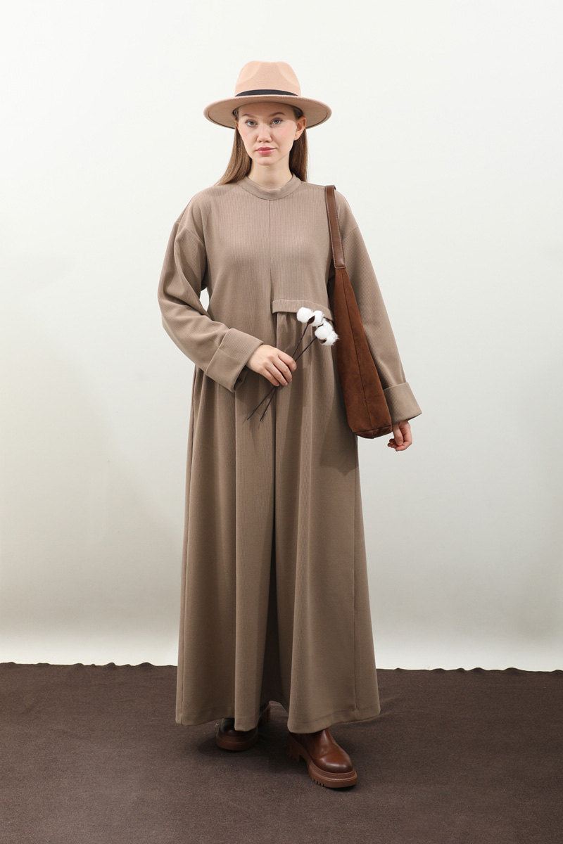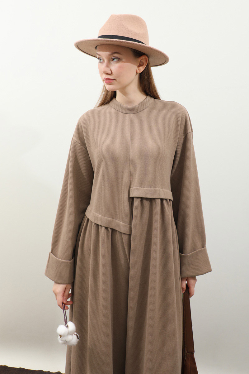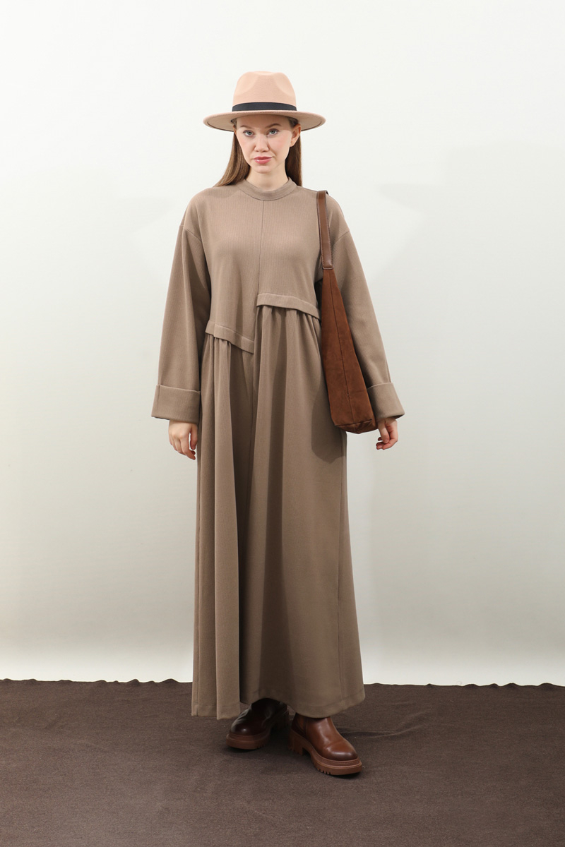 Asimetrik Fitilli Elbise Koyu Vizon. Bisiklet yakadır, düşük omuzludur, bilekten double katlamalıdır. Belden asimetrik detaylıdır, Ceplidir, astarsızdır, kuşaksızdır, iç göstermez. Günlük kullanım ve özel günlerinizde tercih edebilirsiniz.