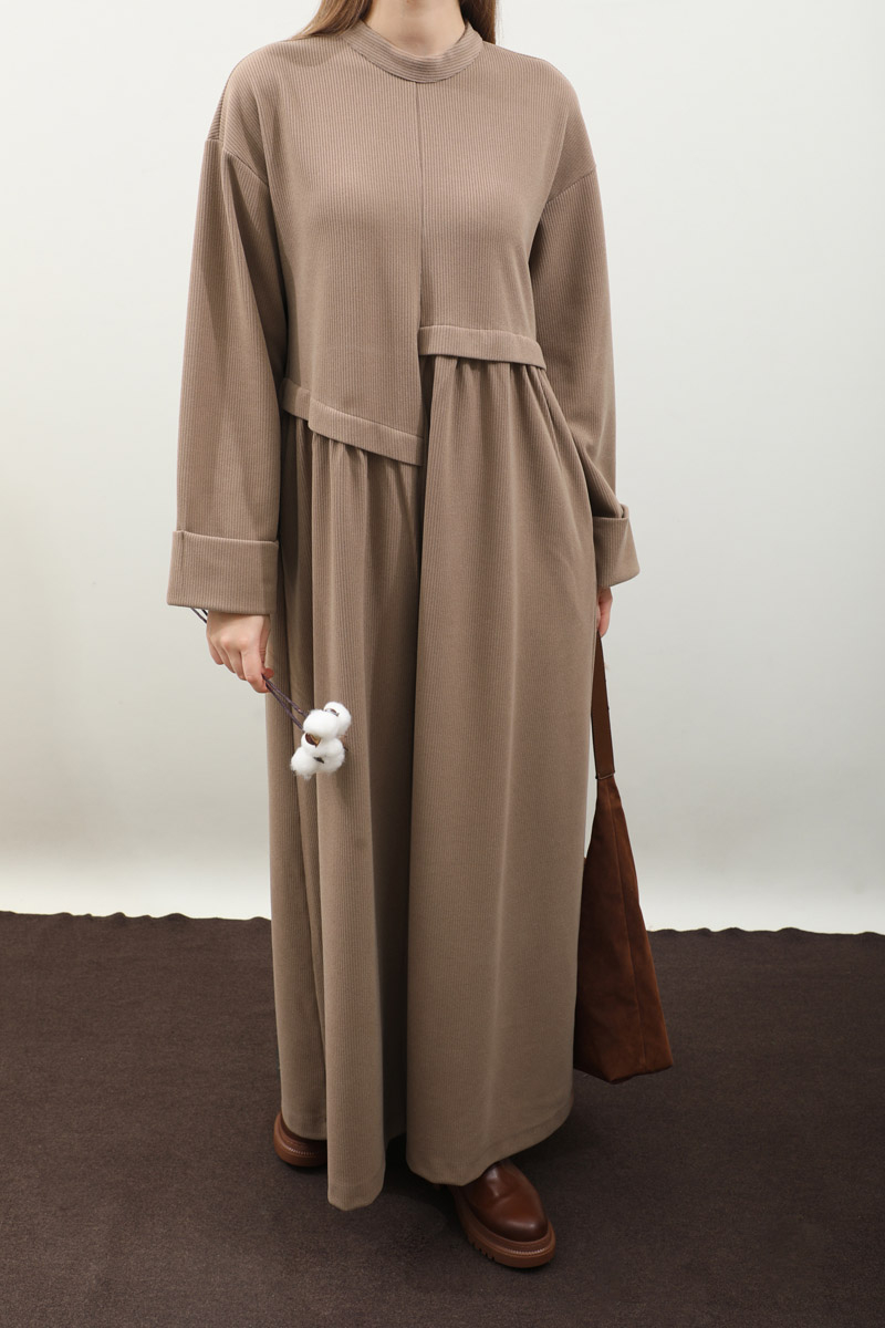 Asimetrik Fitilli Elbise Koyu Vizon