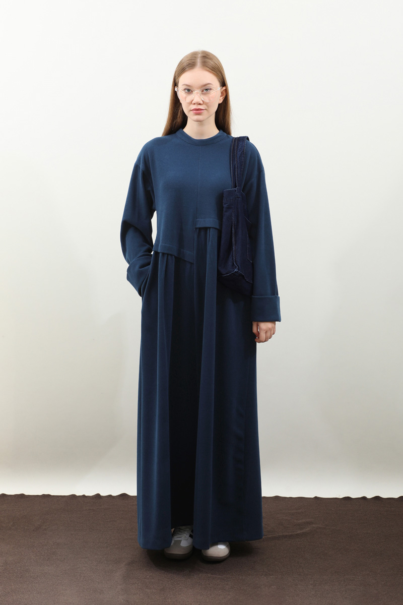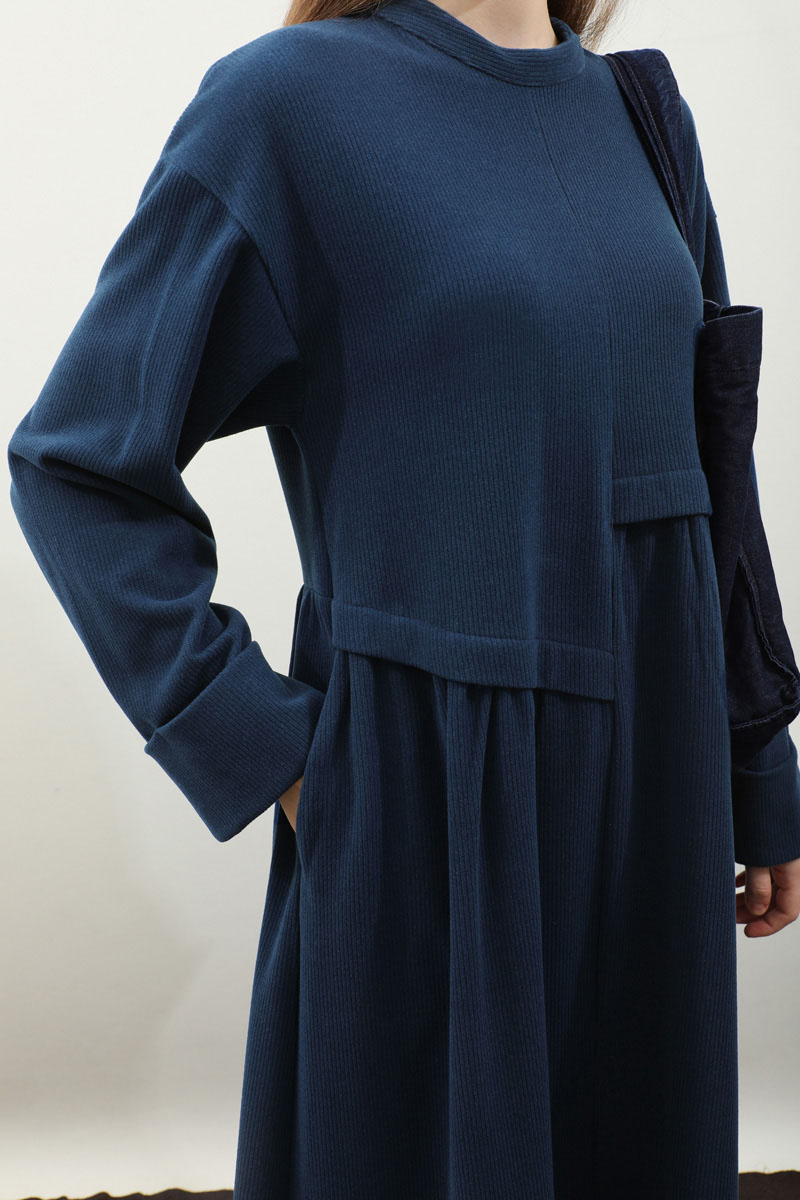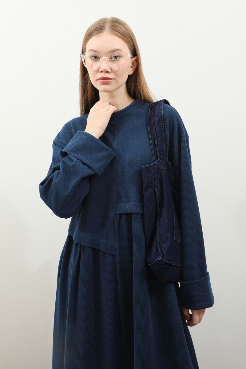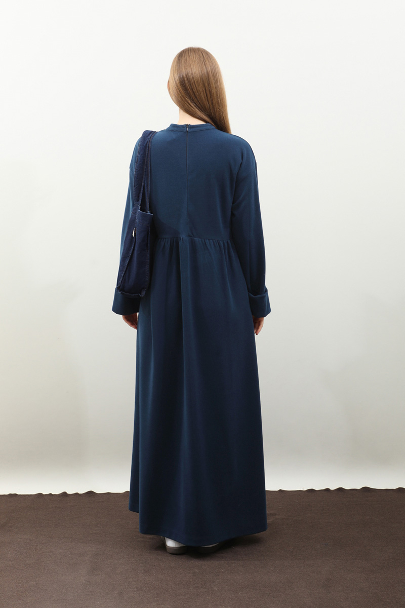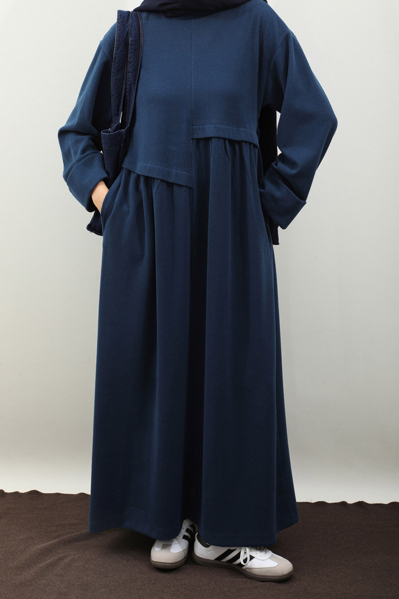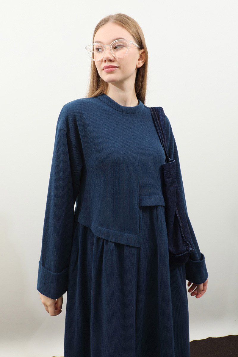 Asimetrik Fitilli Elbise Lacivert. Bisiklet yakadır, düşük omuzludur, bilekten double katlamalıdır. Belden asimetrik detaylıdır, Ceplidir, astarsızdır, kuşaksızdır, iç göstermez. Günlük kullanım ve özel günlerinizde tercih edebilirsiniz.