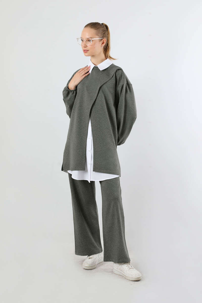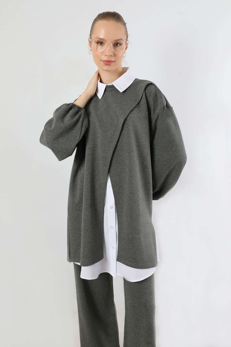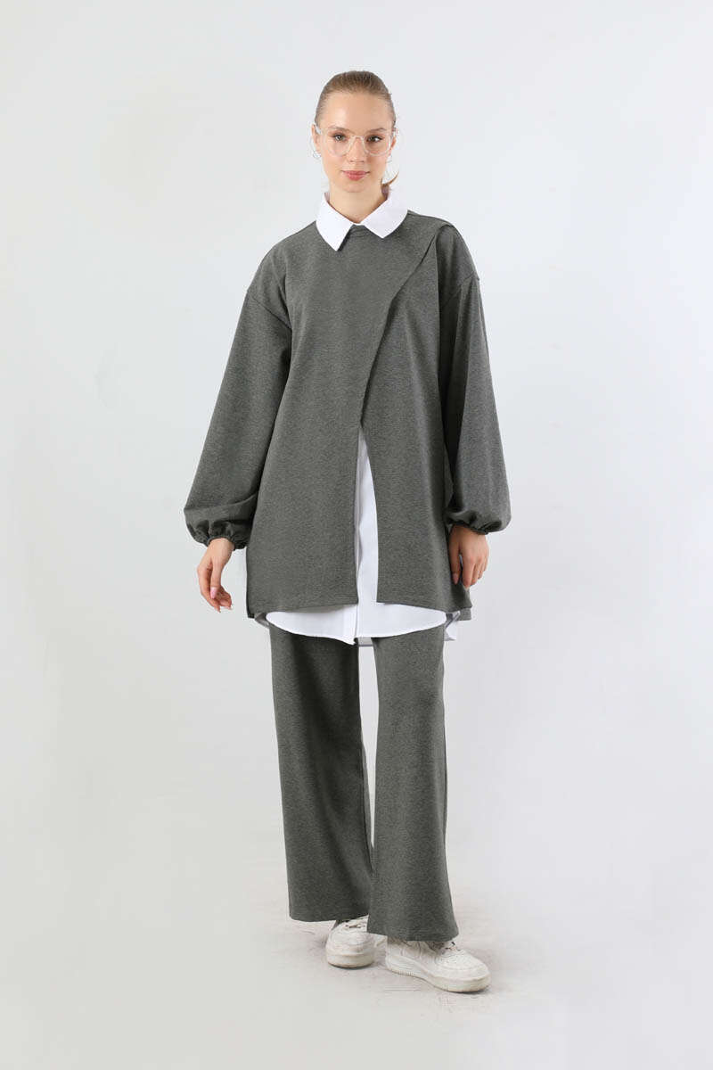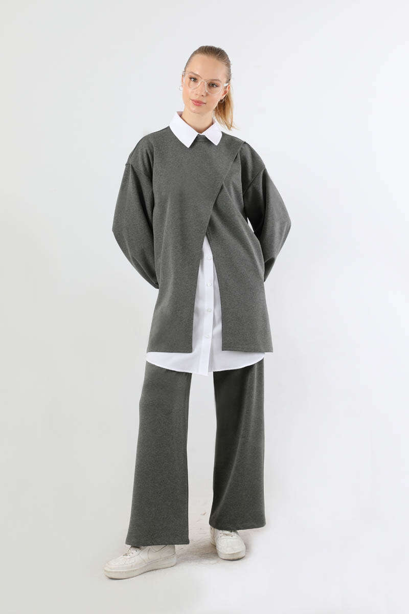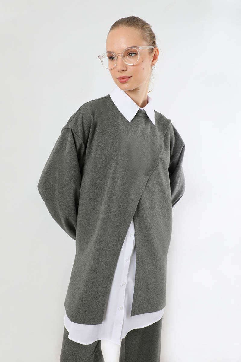 Asimetrik Gömlekli Tunik Takım Antrasit