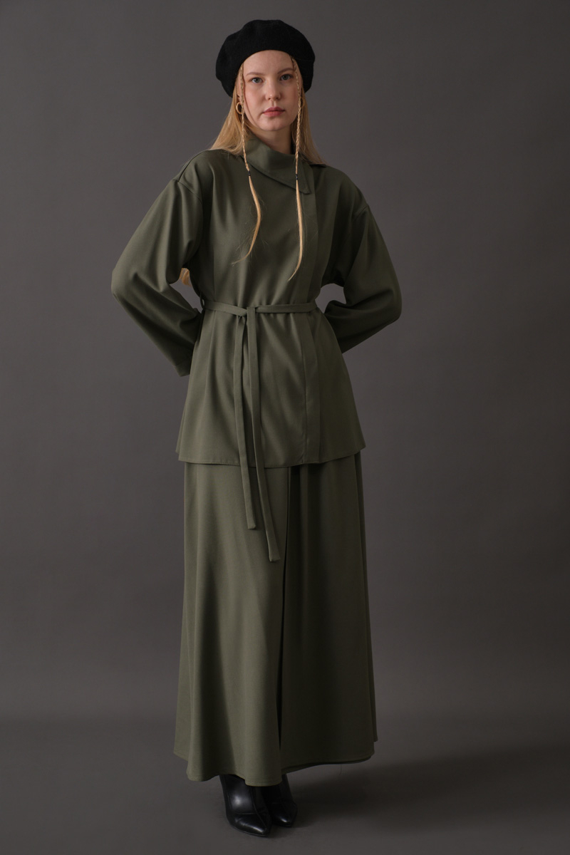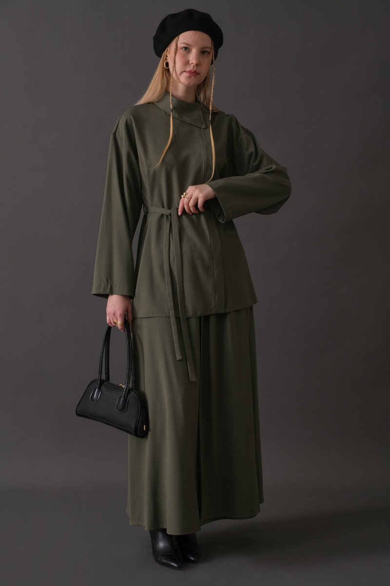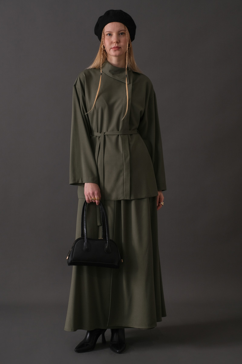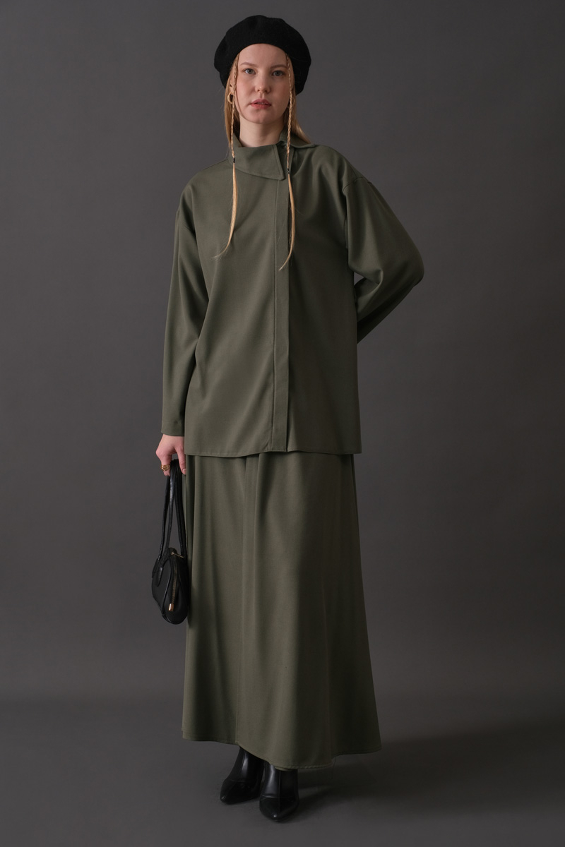 Asimetrik Yaka Gömlek Haki