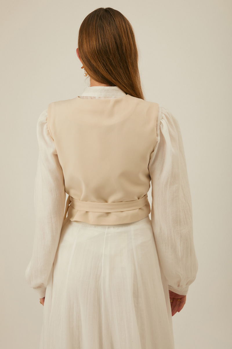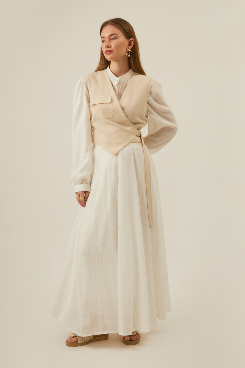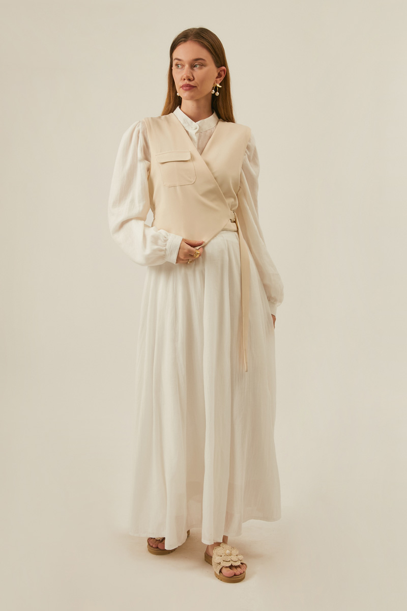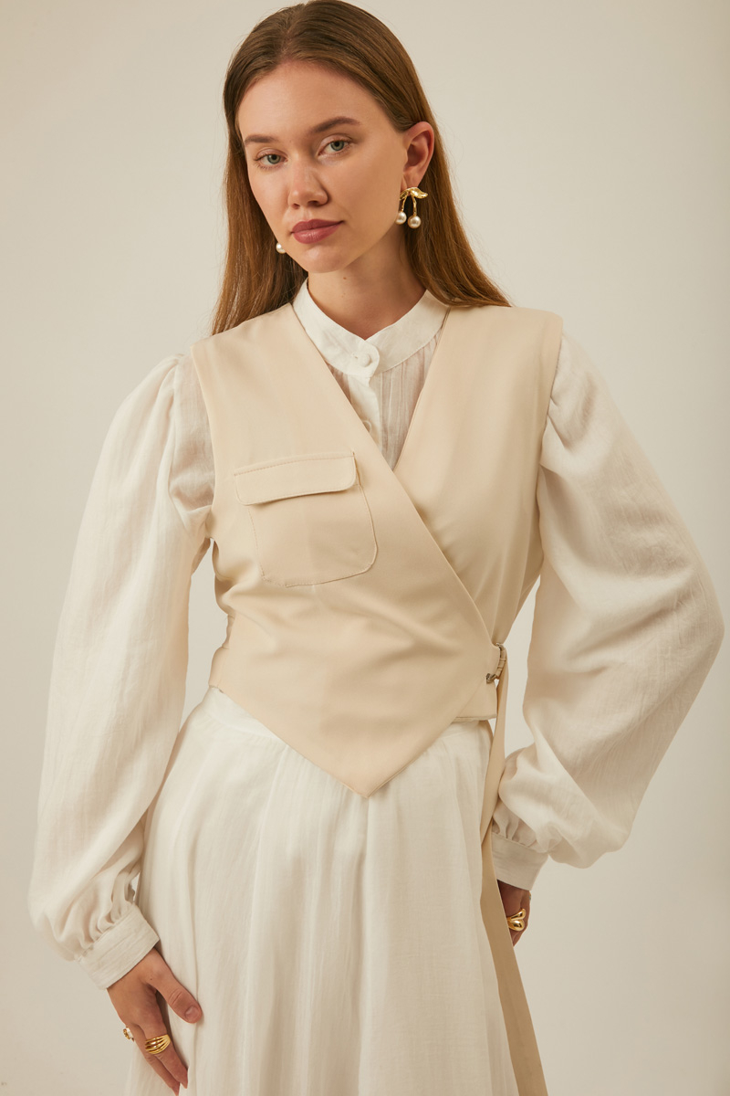 Asimetrik Yelek Taş. Kruvaze bağlamalıdır. Kuşak kısmı yandan D toka ile bağlamalıdır. Önden kapaklı cep detayı mevcuttur. Astarlıdır. Önü asimetriktir. Elbise ve etek kombinlerinizde tercih edebilirsiniz. Mevsimlik üründür.