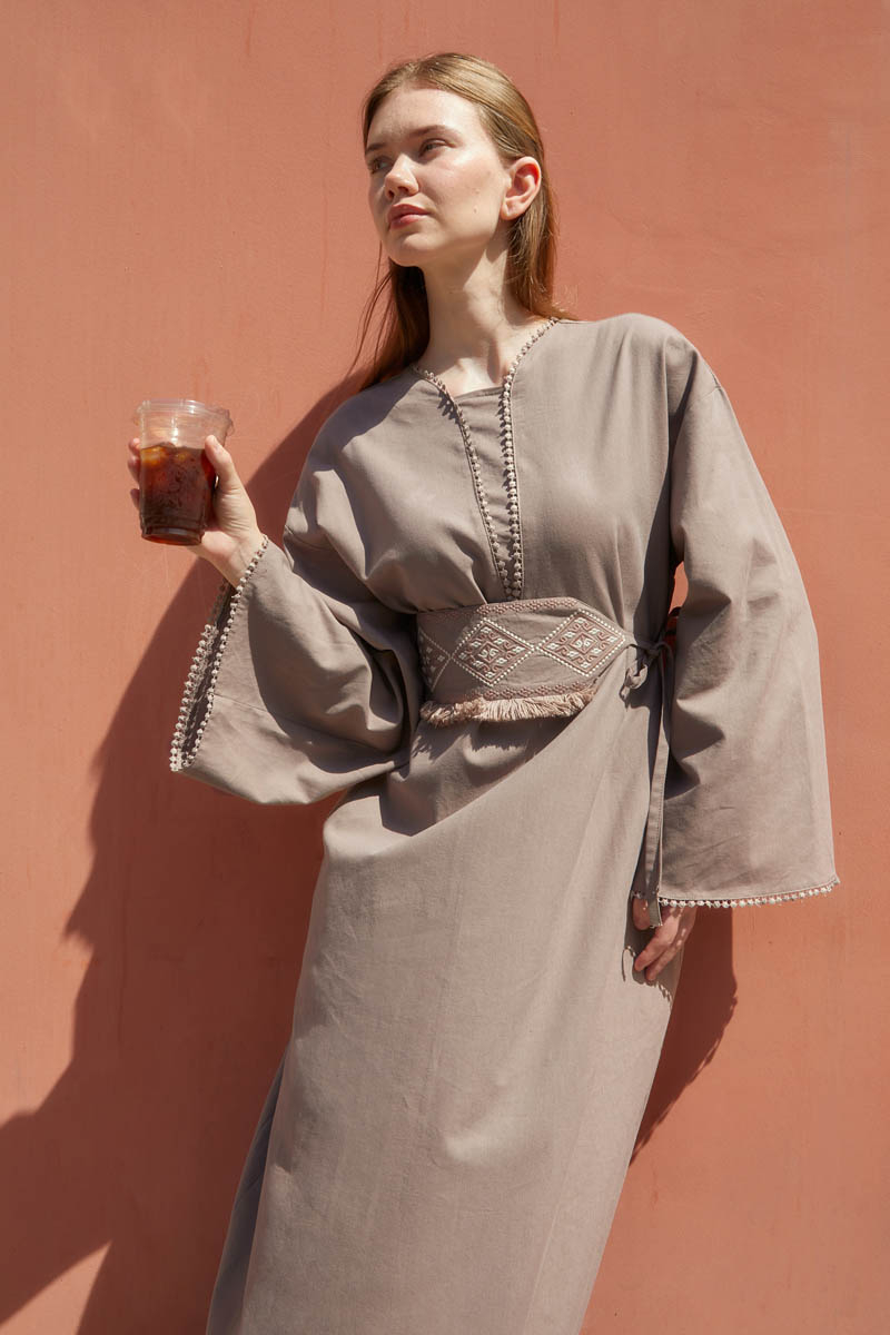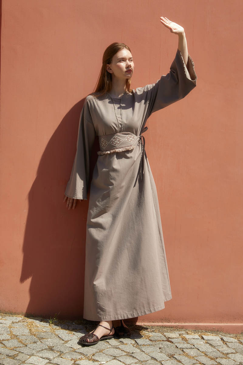 Asrın Elbise Vizon. Bisiklet yakadır, önden v yandan ceplidir, düşük kolludur, yandan ceplidir, kemeri nakışlı ve püskülü etnik desenlidir, astarsızdır, Günlük kullanım ve özel günlerinizde tercih edebilirsiniz.