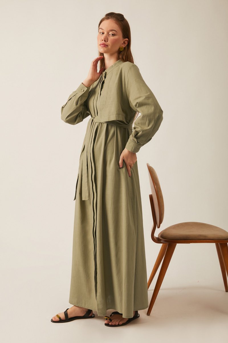 Feel the freshness of natural textures with this slub linen dress that brings together elegance and comfort. It blends an authentic look with a modern design, offering all-day ease of wear. Its relaxed fit provides freedom of movement, while the self-fabric belt allows you to cinch the waist for a graceful silhouette.