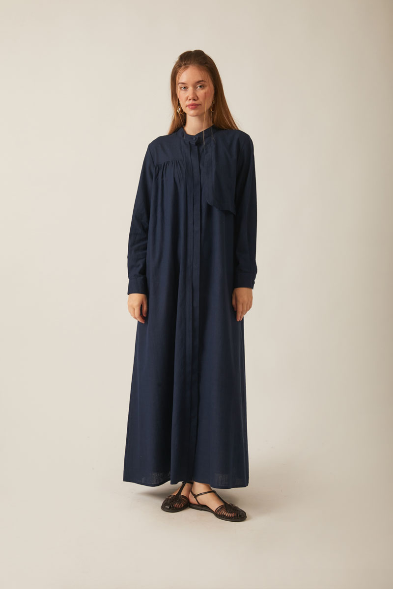 Feel the freshness of natural textures with this slub linen dress that brings together elegance and comfort. It blends an authentic look with a modern design, offering all-day ease of wear. Its relaxed fit provides freedom of movement, while the self-fabric belt allows you to cinch the waist for a graceful silhouette.