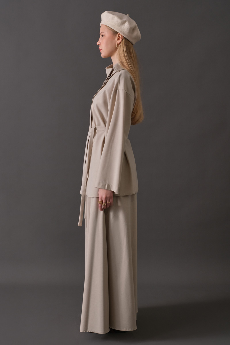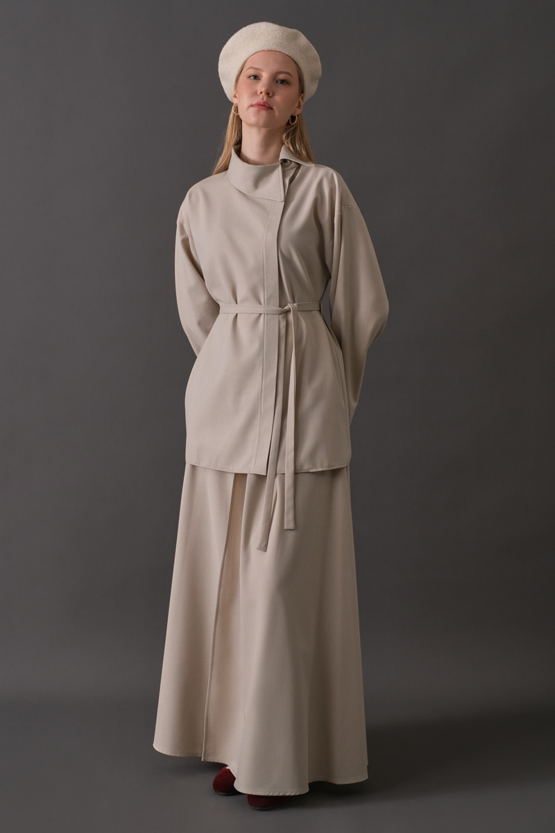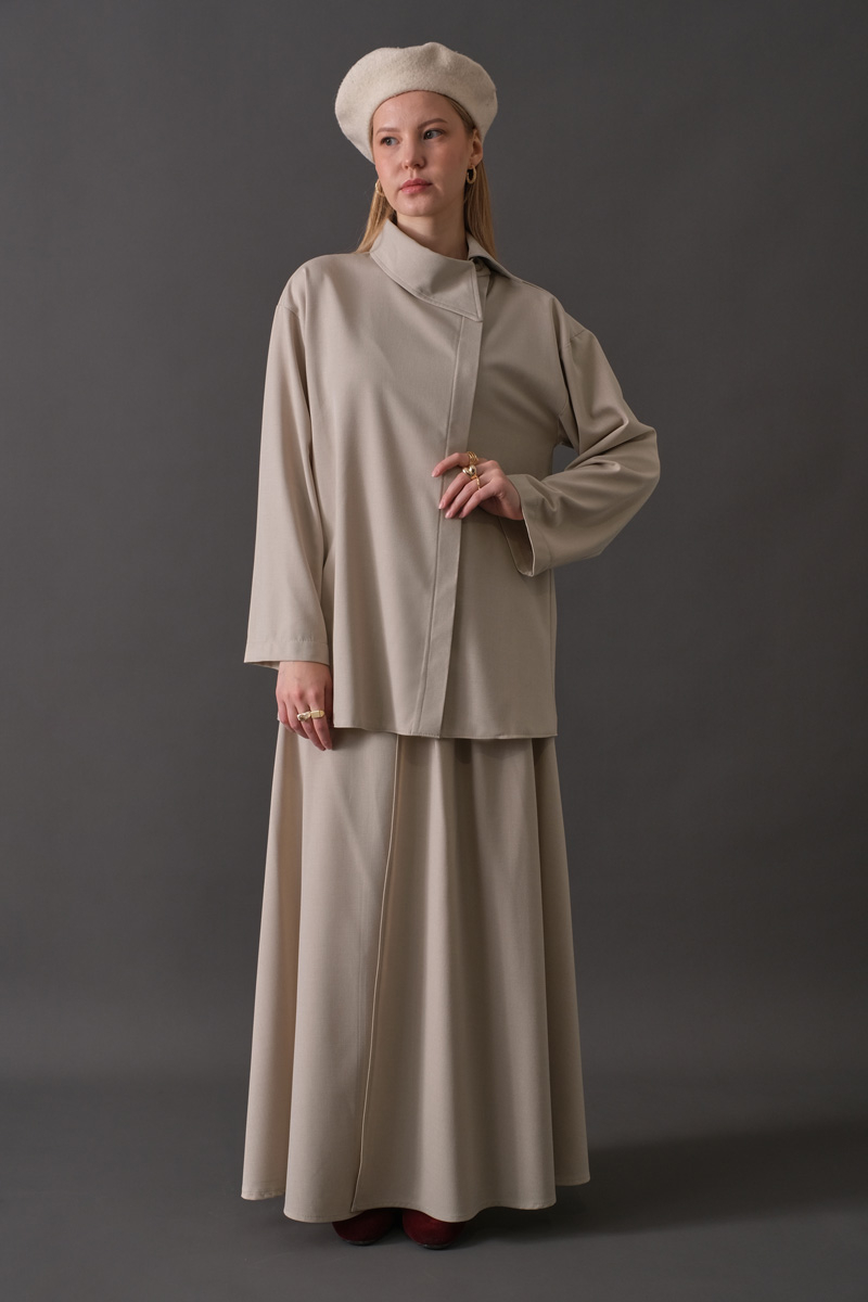 Asymmetric Collar Shirt Stone is designed for those who appreciate modern and minimal lines. With its asymmetric neckline, it adds a contemporary twist to the classic shirt form, while the draped structure provides all-day comfort. The concealed placket creates a clean and refined look, and the relaxed fit makes it a versatile choice for both office and everyday style.