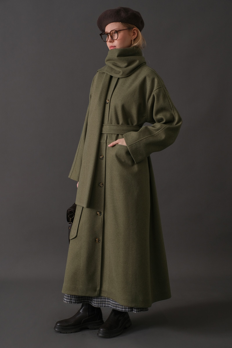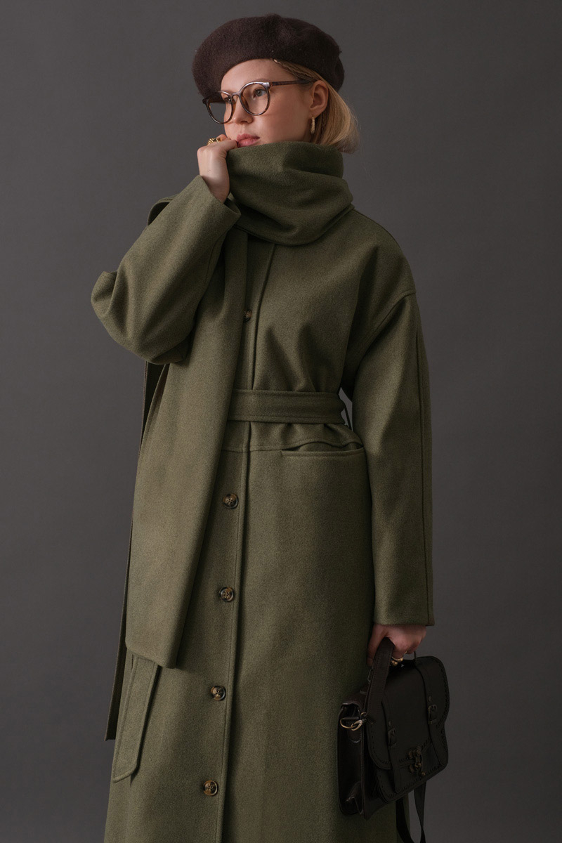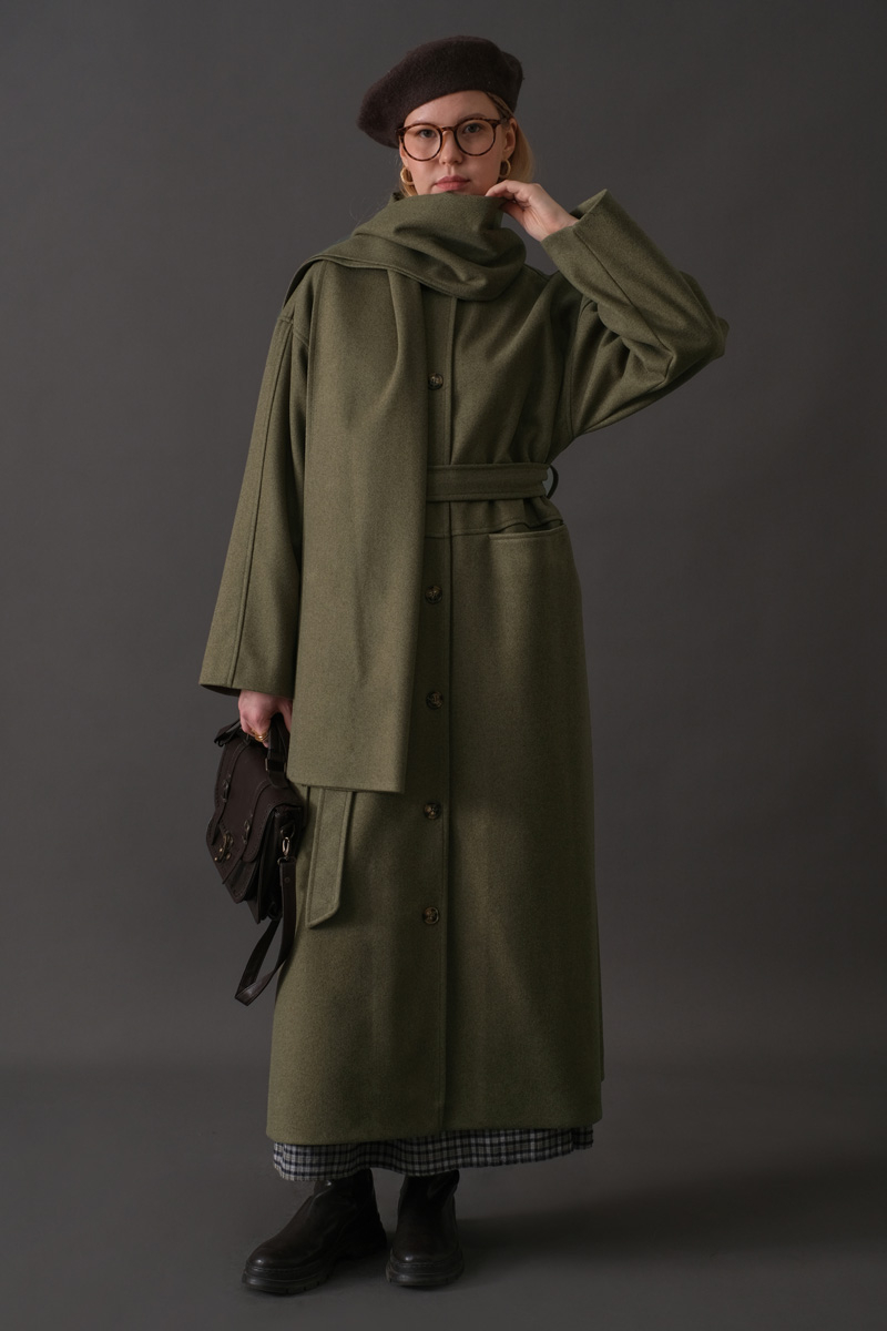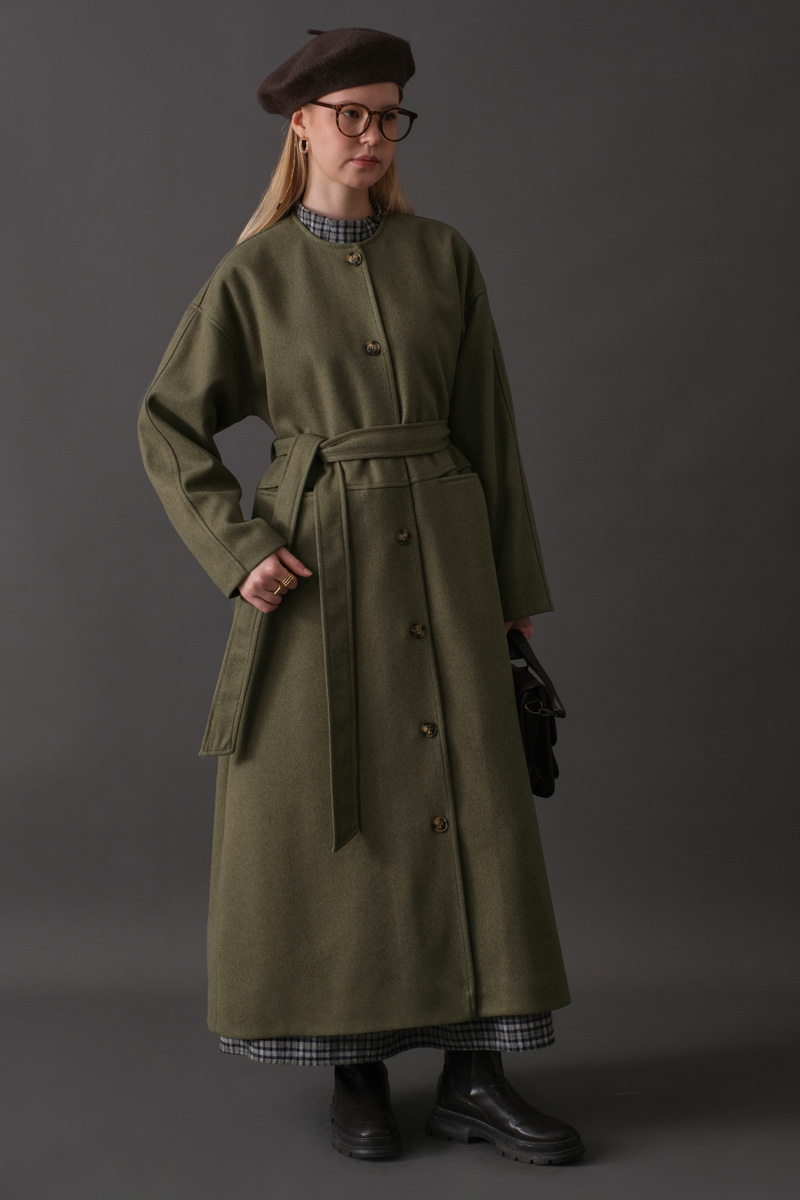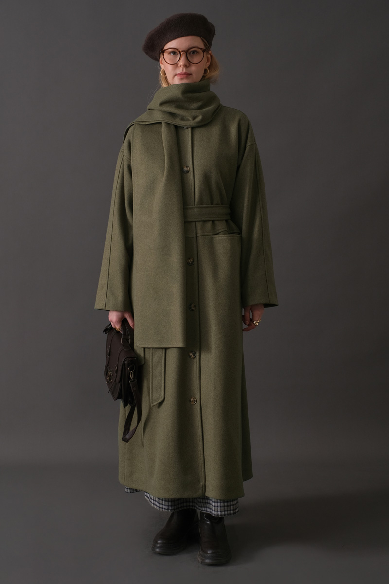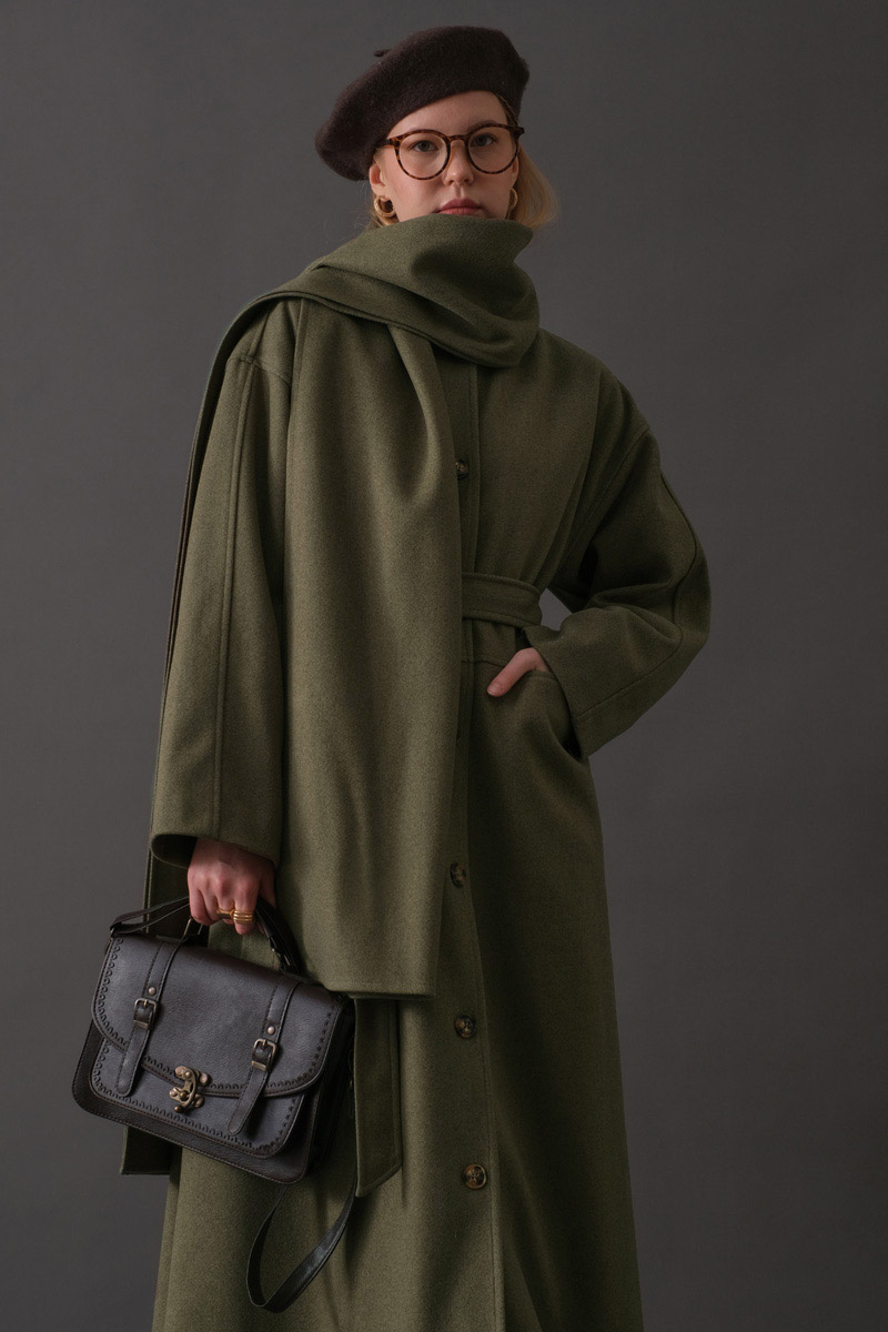 Atkılı Kaban Vizon. Önden düğmelidir. Düşük omuzludur. Önden cep detaylıdır. Atkı detaylıdır (Ayrıştırılabilir). Kuşaklıdır. Astarlıdır. Günlük kullanım ve özel günlerinizde tercih edebilirsiniz.