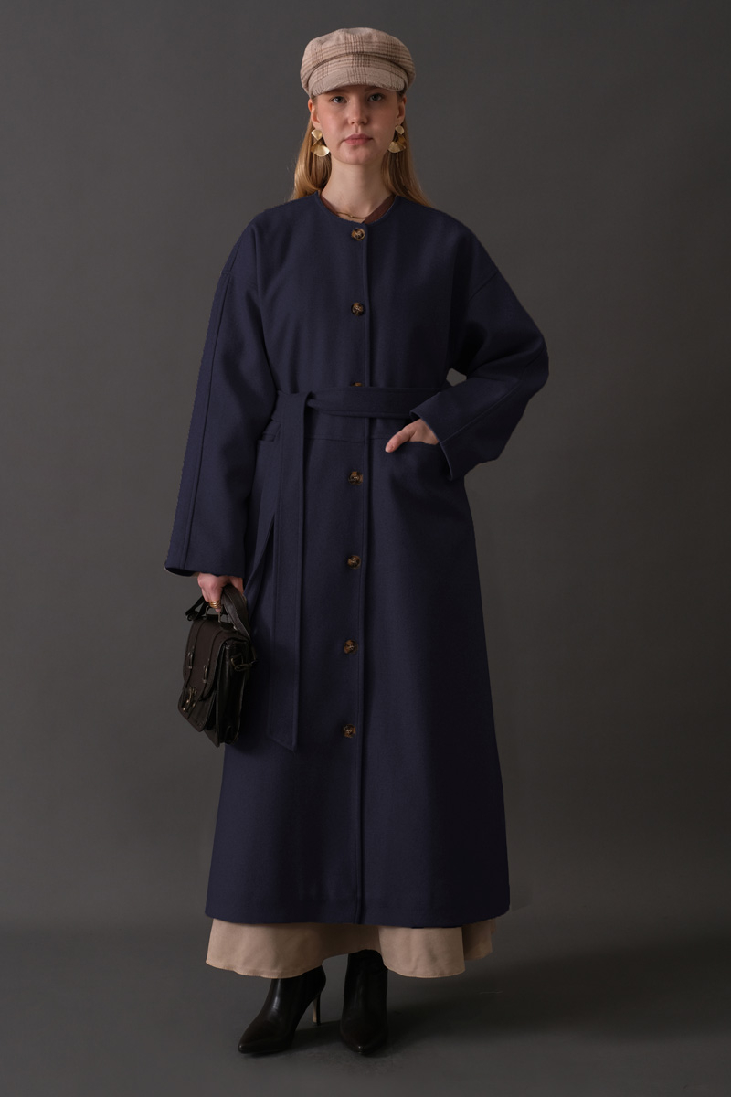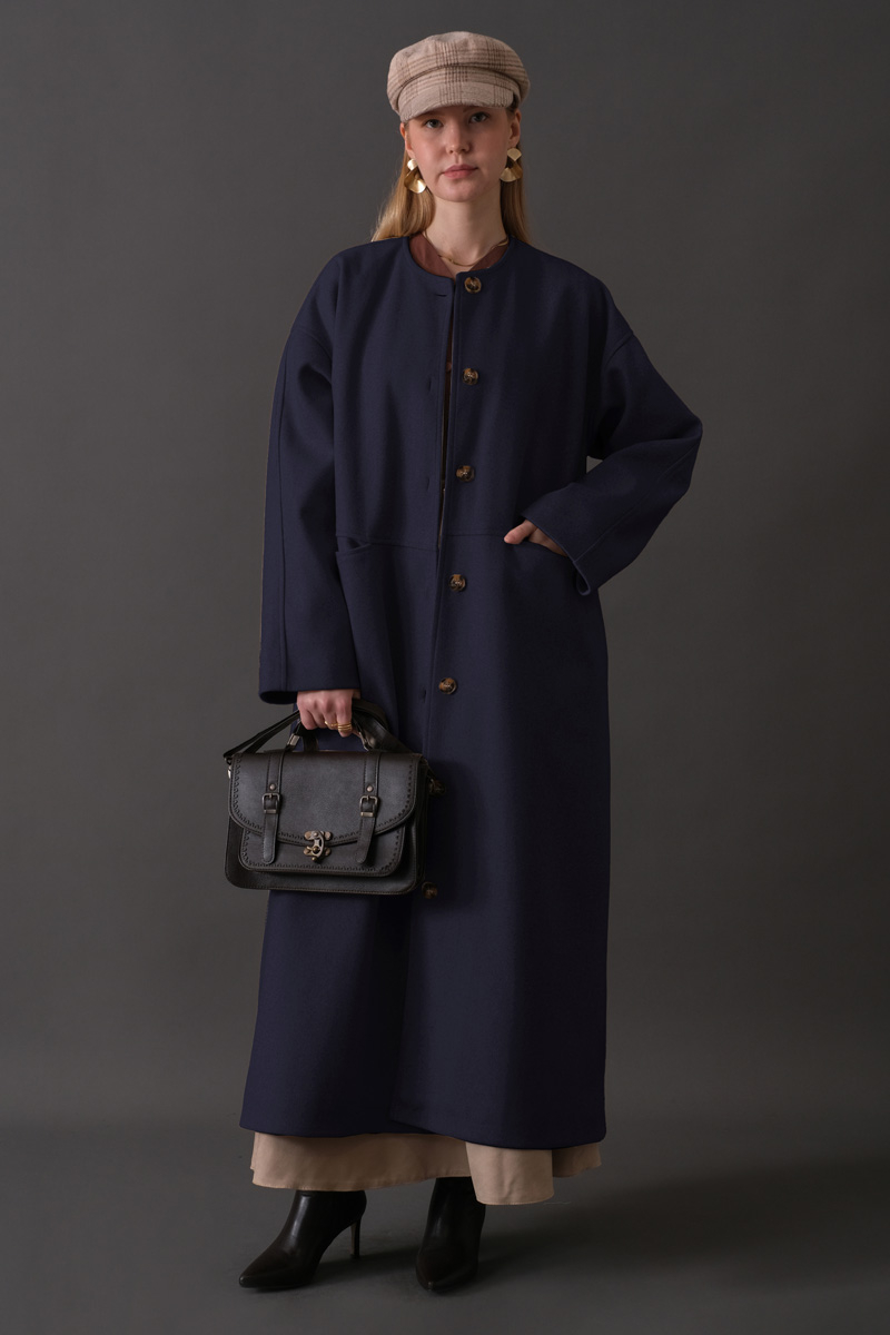 Atkılı Kaban Lacivert. Önden düğmelidir. Düşük omuzludur. Önden cep detaylıdır. Atkı detaylıdır (Ayrıştırılabilir). Kuşaklıdır. Astarlıdır. Günlük kullanım ve özel günlerinizde tercih edebilirsiniz.