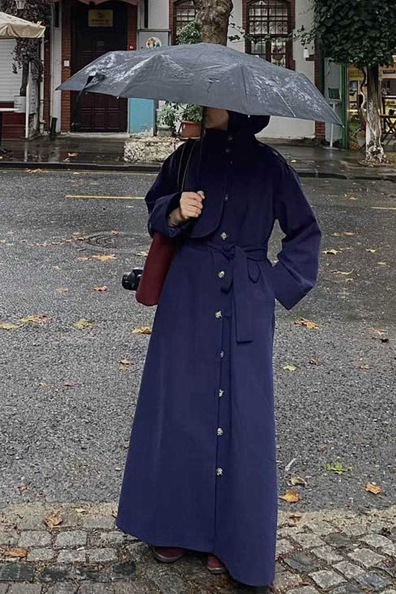 Cotton High Collar Buttoned Trenchcoat Navy