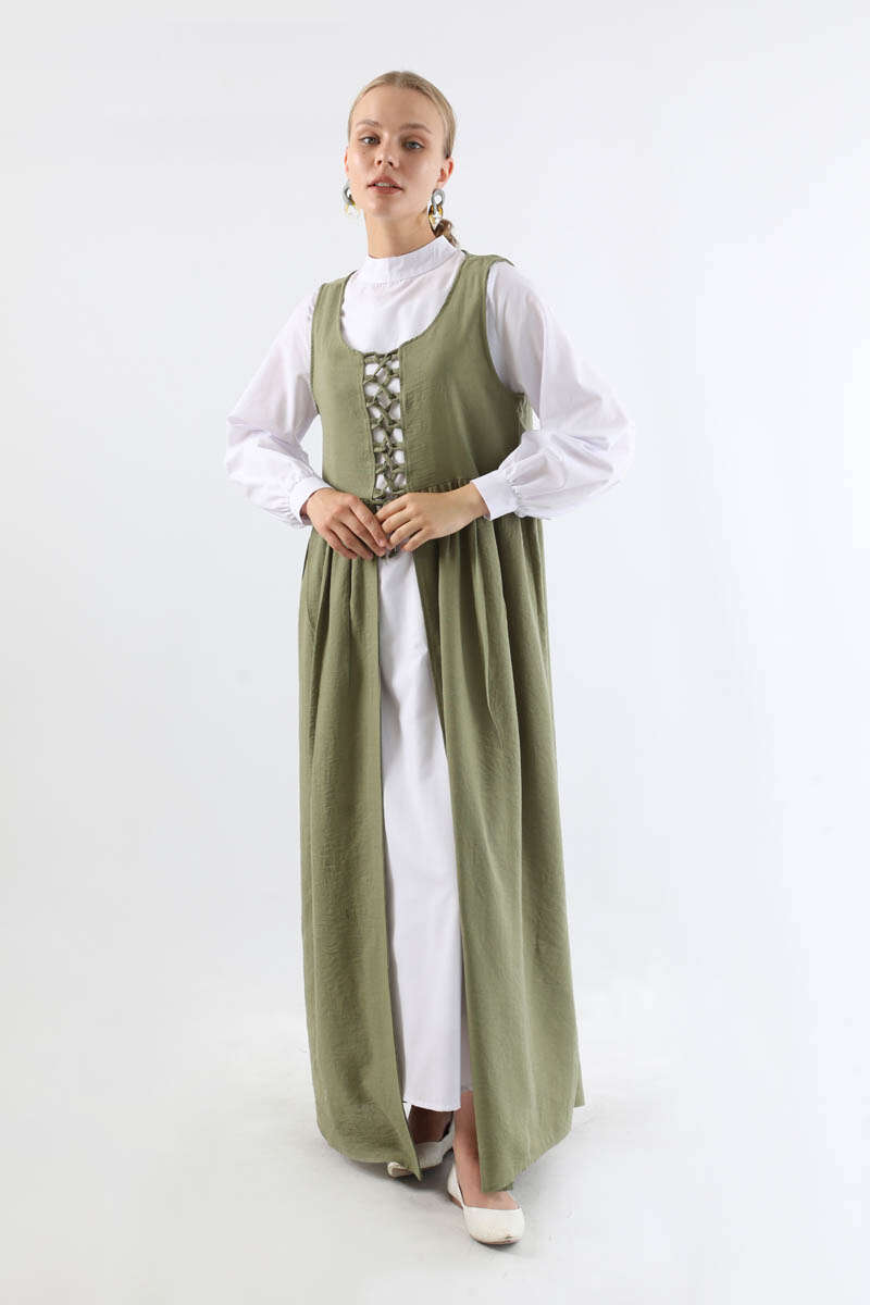 Bağcıklı Jile Takım Haki. Jile bağcık detaylıdır. Belden büzgülüdür. Elbise hakim yakalıdır. Arkadan fermuarlıdır. manşeti düğmeldir. Günlük kullanım ve özel günlerinizde tercih edebilirsiniz.