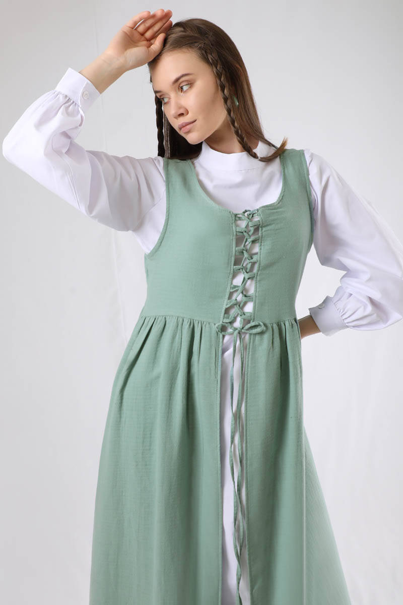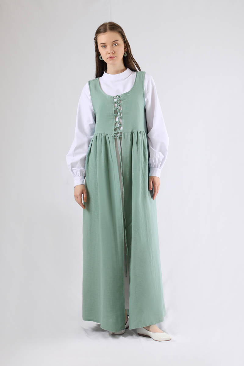 Bağcıklı Jile Takım Mint. Jile bağcık detaylıdır. Belden büzgülüdür. Elbise hakim yakalıdır. Arkadan fermuarlıdır. manşeti düğmeldir. Günlük kullanım ve özel günlerinizde tercih edebilirsiniz.
