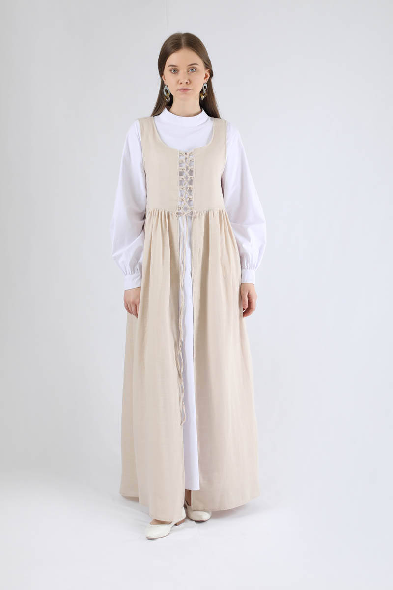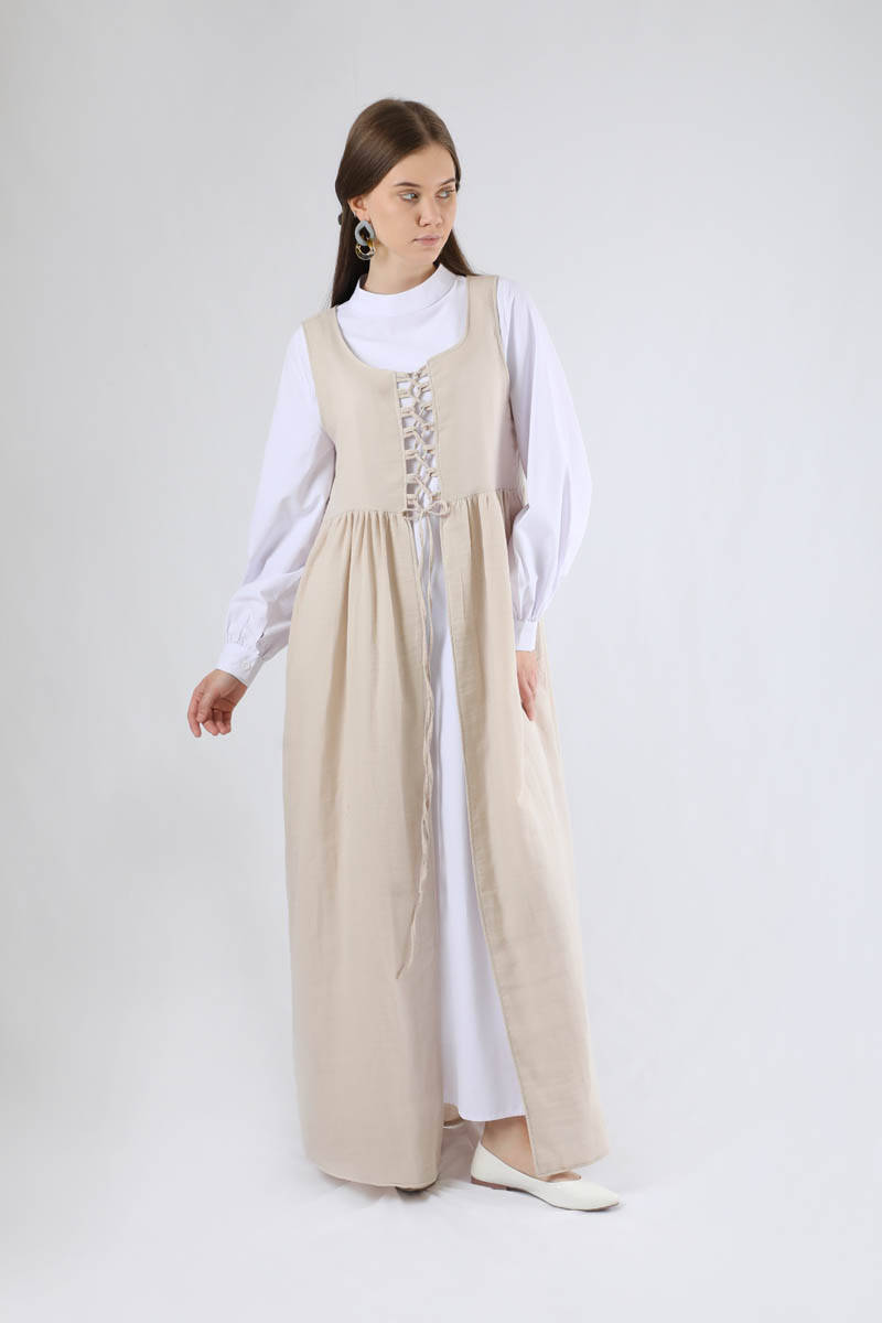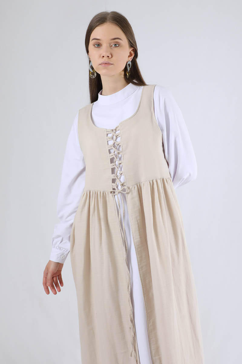 Bağcıklı Jile Takım Krem. Jile bağcık detaylıdır. Belden büzgülüdür. Elbise hakim yakalıdır. Arkadan fermuarlıdır. manşeti düğmeldir. Günlük kullanım ve özel günlerinizde tercih edebilirsiniz.