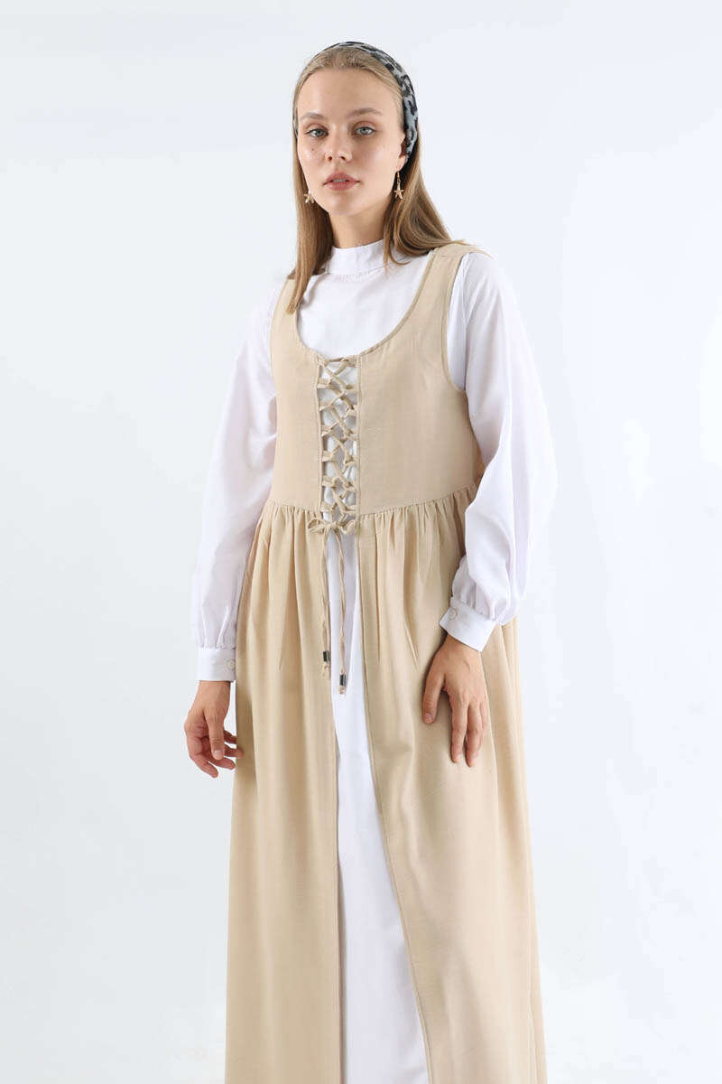 Bağcıklı Jile Takım Taş. Jile bağcık detaylıdır. Belden büzgülüdür. Elbise hakim yakalıdır. Arkadan fermuarlıdır. manşeti düğmeldir. Günlük kullanım ve özel günlerinizde tercih edebilirsiniz.