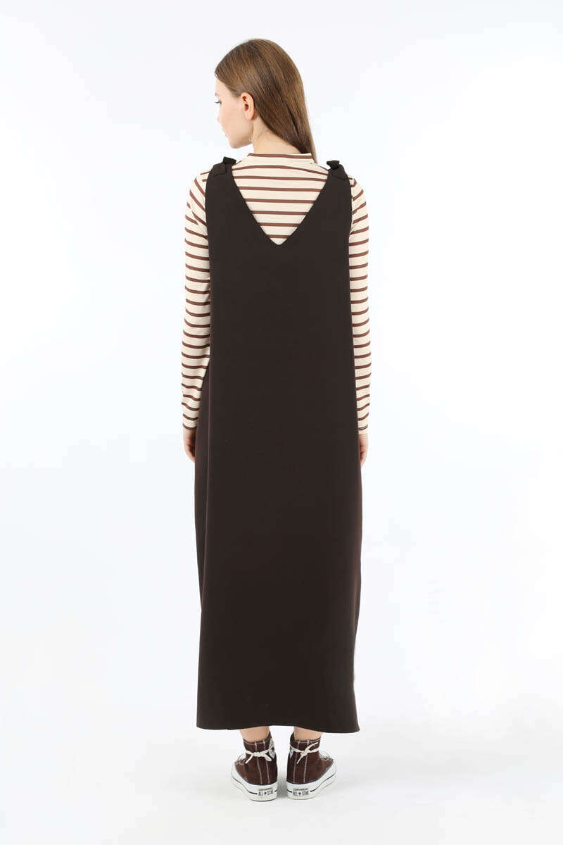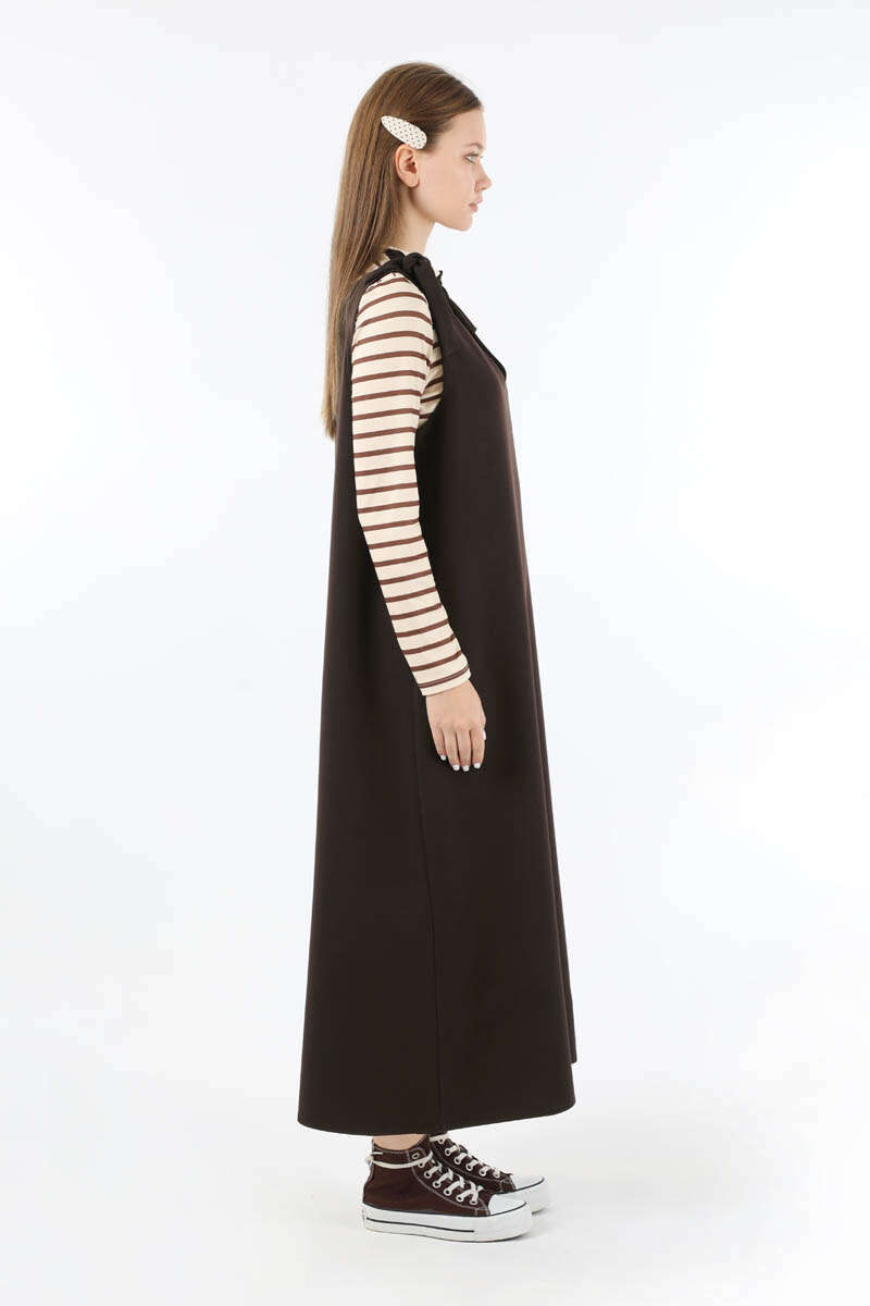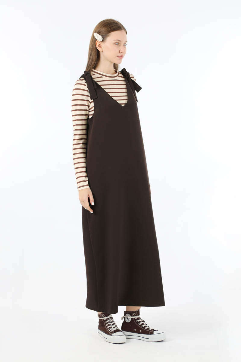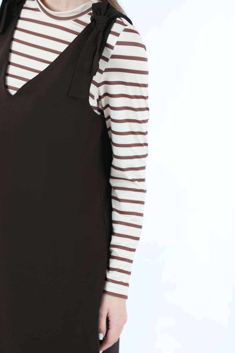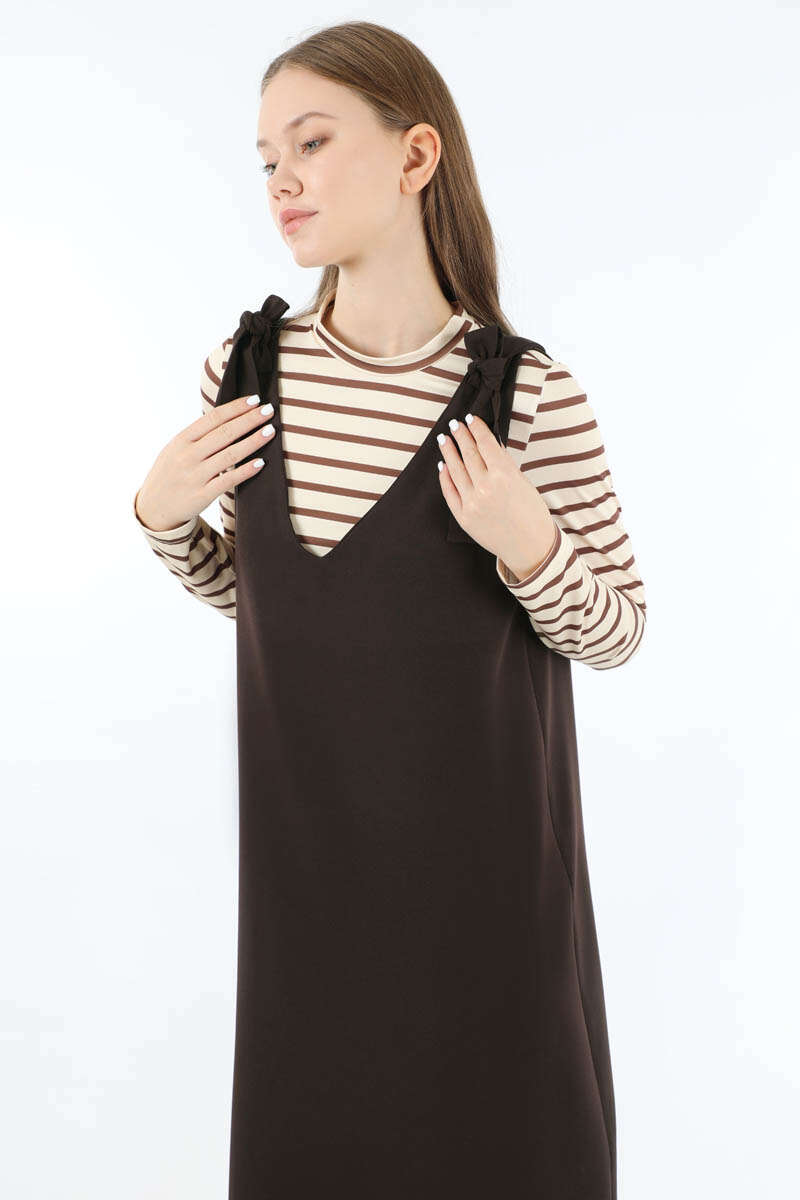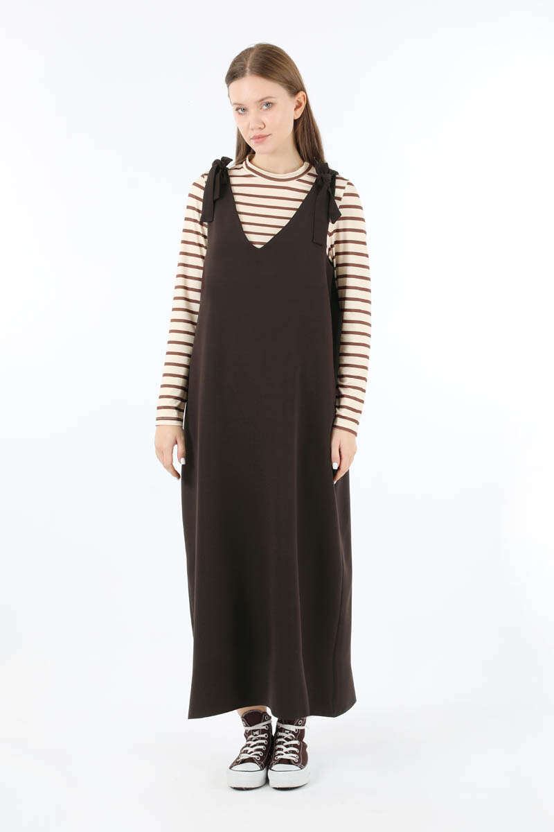 Bağlama Detaylı Jile Kahve. V yaka detaylıdır. Omuzdan bağlama detaylıdır. Aşağı doğru kloş inen bir kalıbı vardır vücuda yapışmaz. Günlük kullanım ve özel günlerinizde tercih edebilirsiniz.