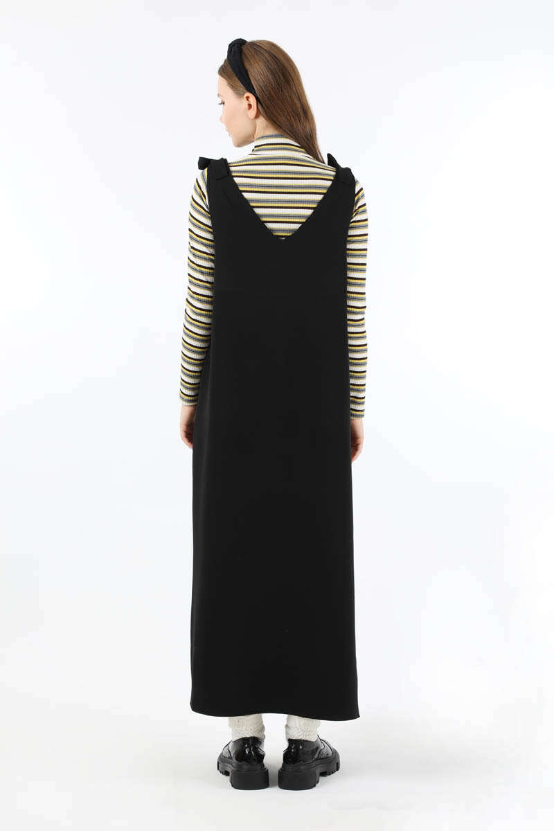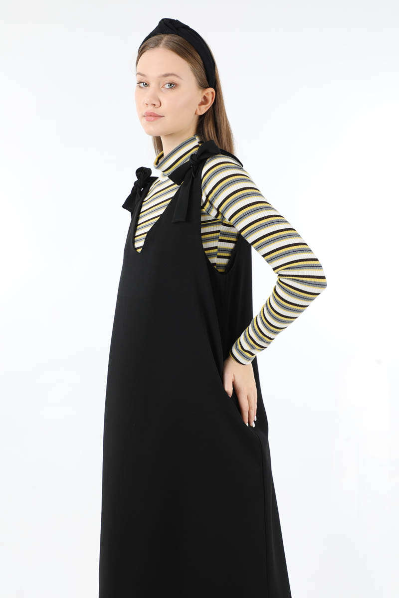 Bağlama Detaylı Jile Siyah. V yaka detaylıdır. Omuzdan bağlama detaylıdır. Aşağı doğru kloş inen bir kalıbı vardır vücuda yapışmaz. Günlük kullanım ve özel günlerinizde tercih edebilirsiniz.