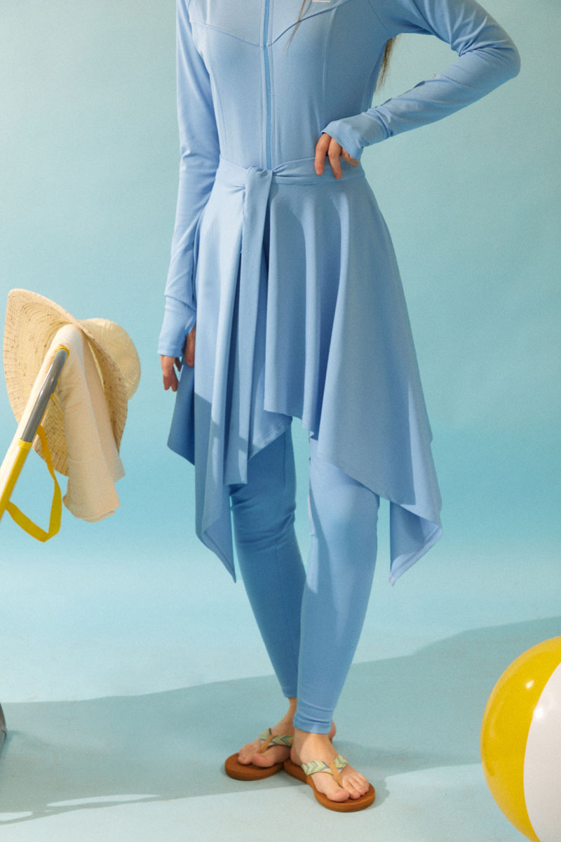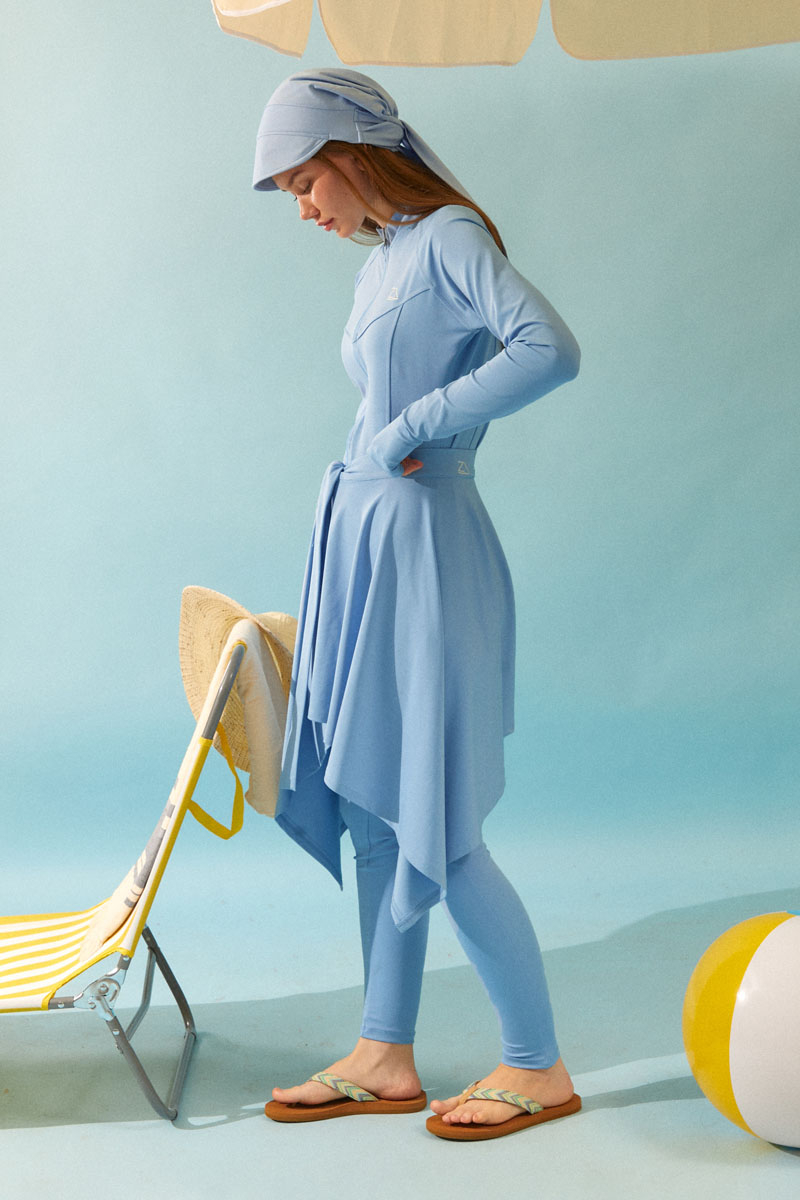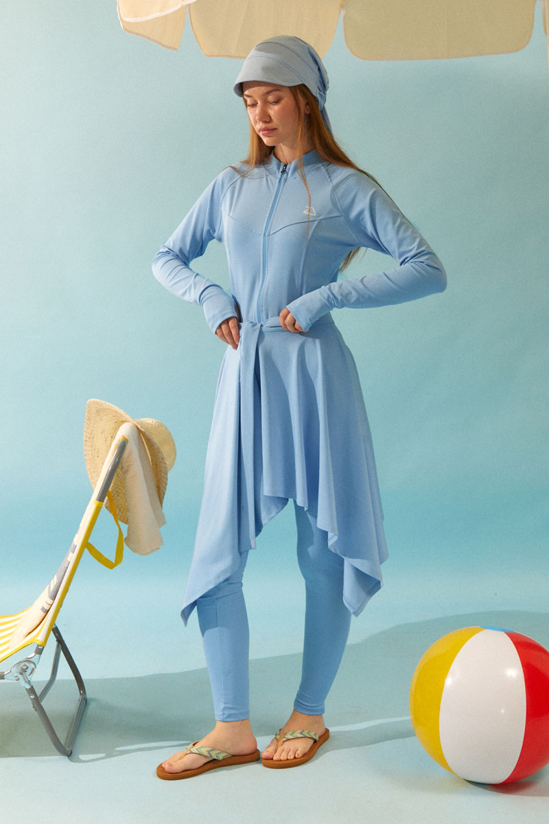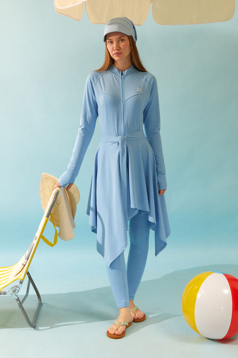 Bağlamalı Asimetrik Mayo Eteği Bebe Mavisi