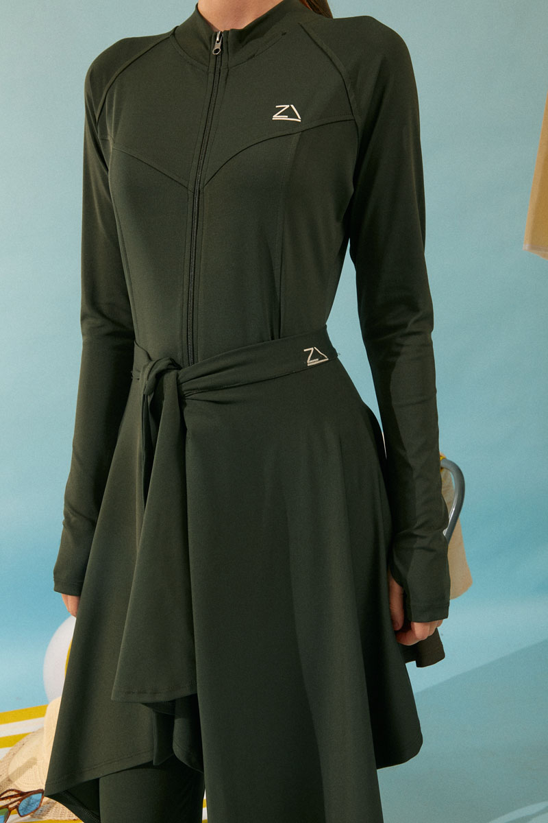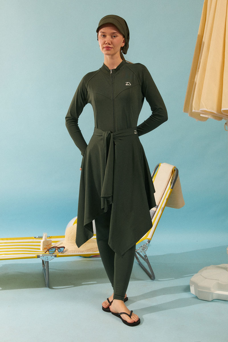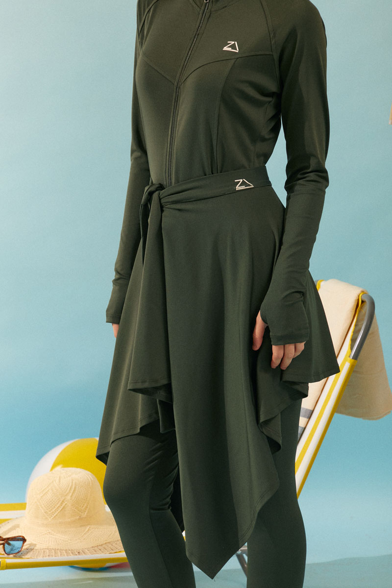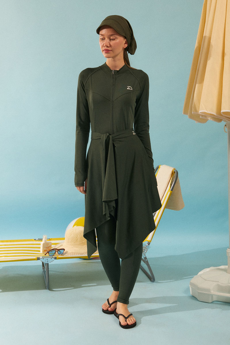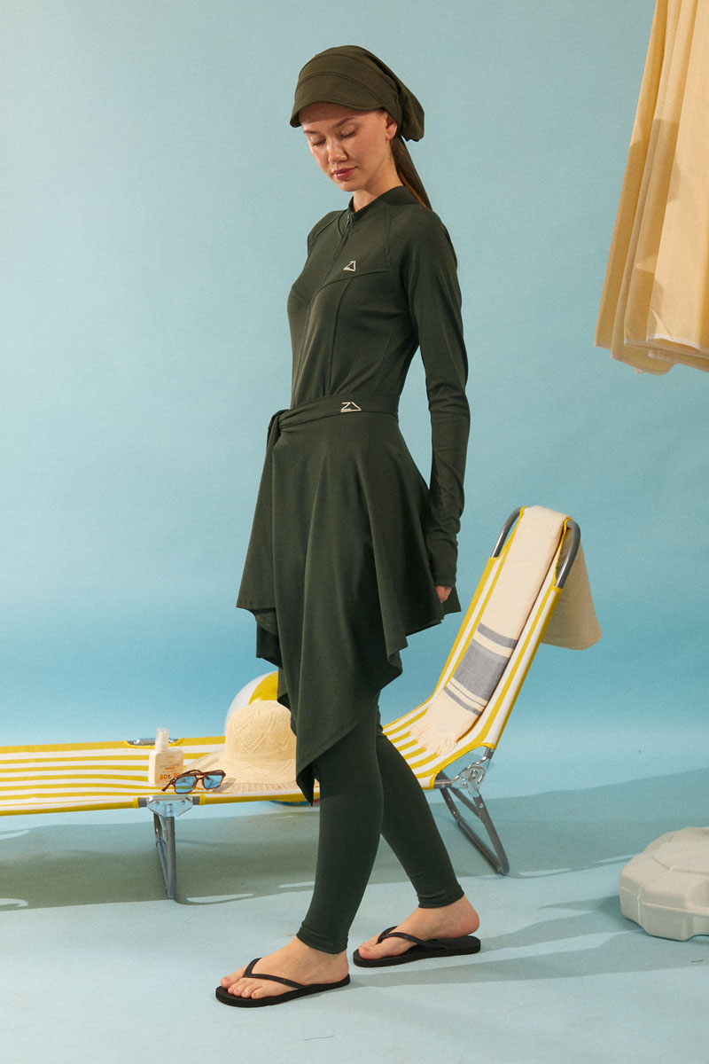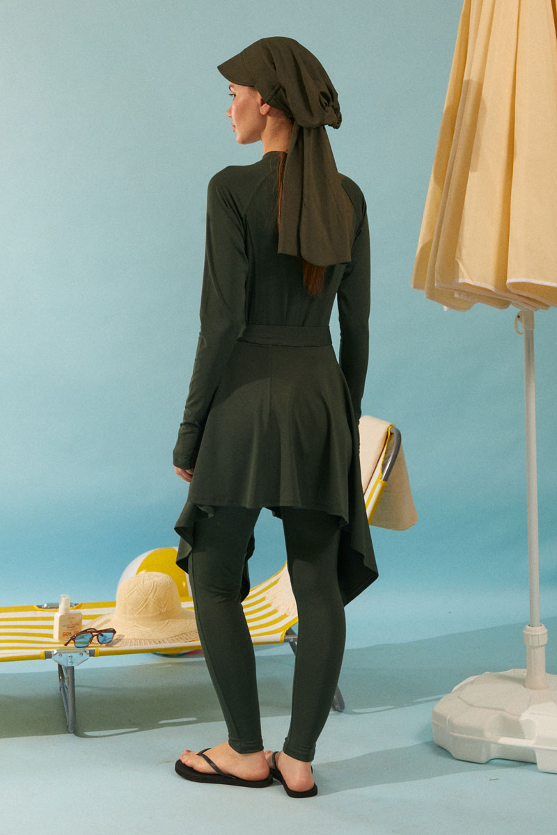 Bağlamalı Asimetrik Mayo Eteği Haki, Dinamik asimetrik kesimi ve bel kısmındaki ayarlanabilir bağlama detayı sayesinde kişisel stilinizi yansıtma özgürlüğü sunar. İster sade bir mayoyla, ister desenli bir bikini üstüyle kombinleyin, her parçayla mükemmel uyum sağlayarak plajda ve havuz başında benzersiz bir şıklık yaratır. Mütevazı giyim tarzını benimseyenlerden, aktif plaj yaşamını sevenlere kadar herkese hitap eden bu etekle, yazın ve tatilin tadını stilinizden ödün vermeden çıkarın."